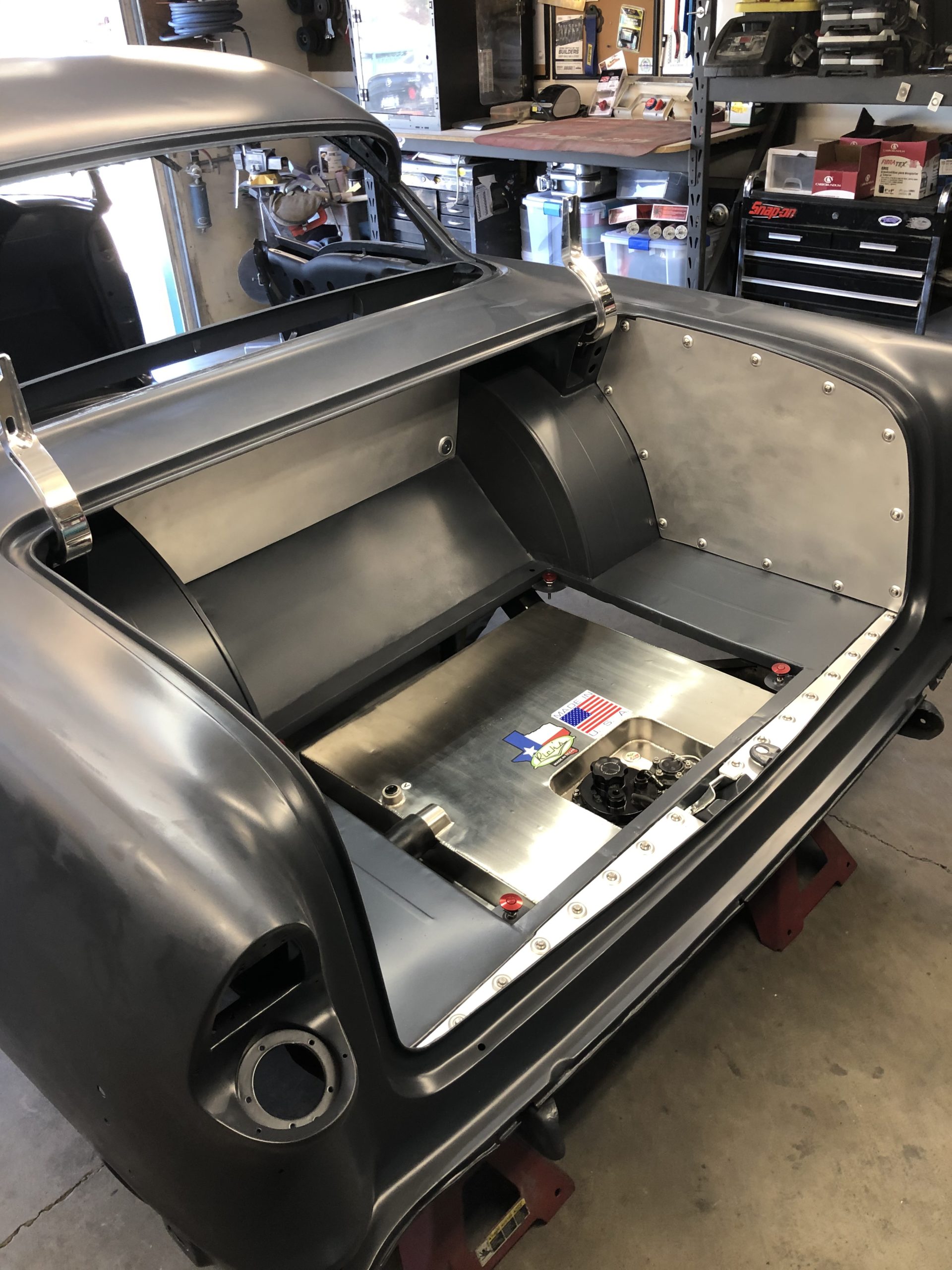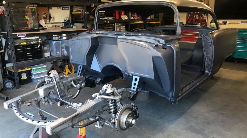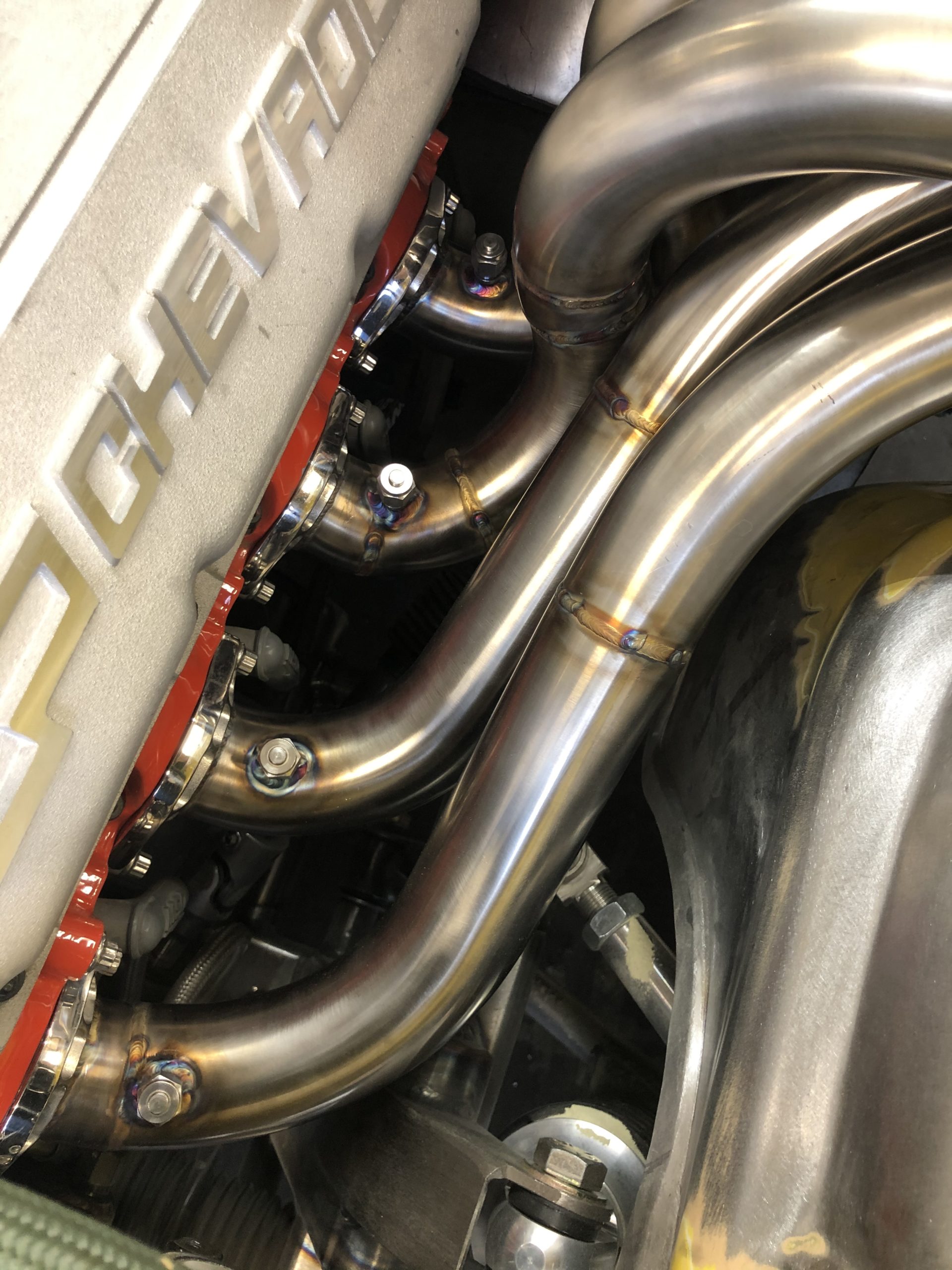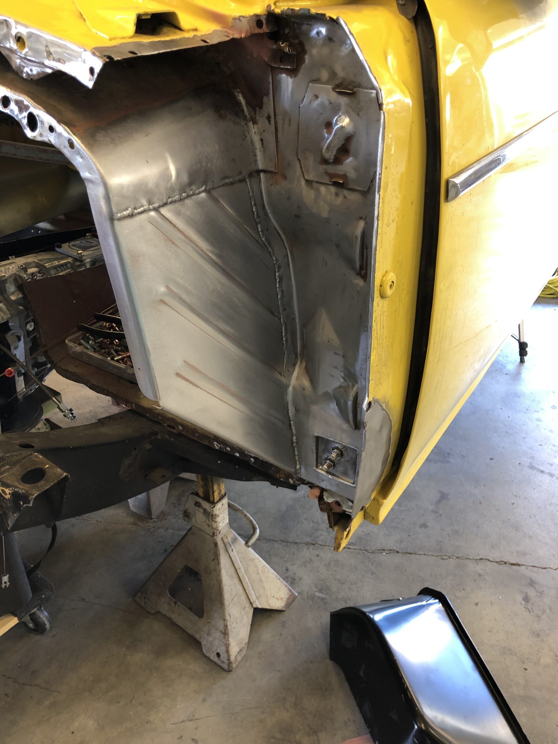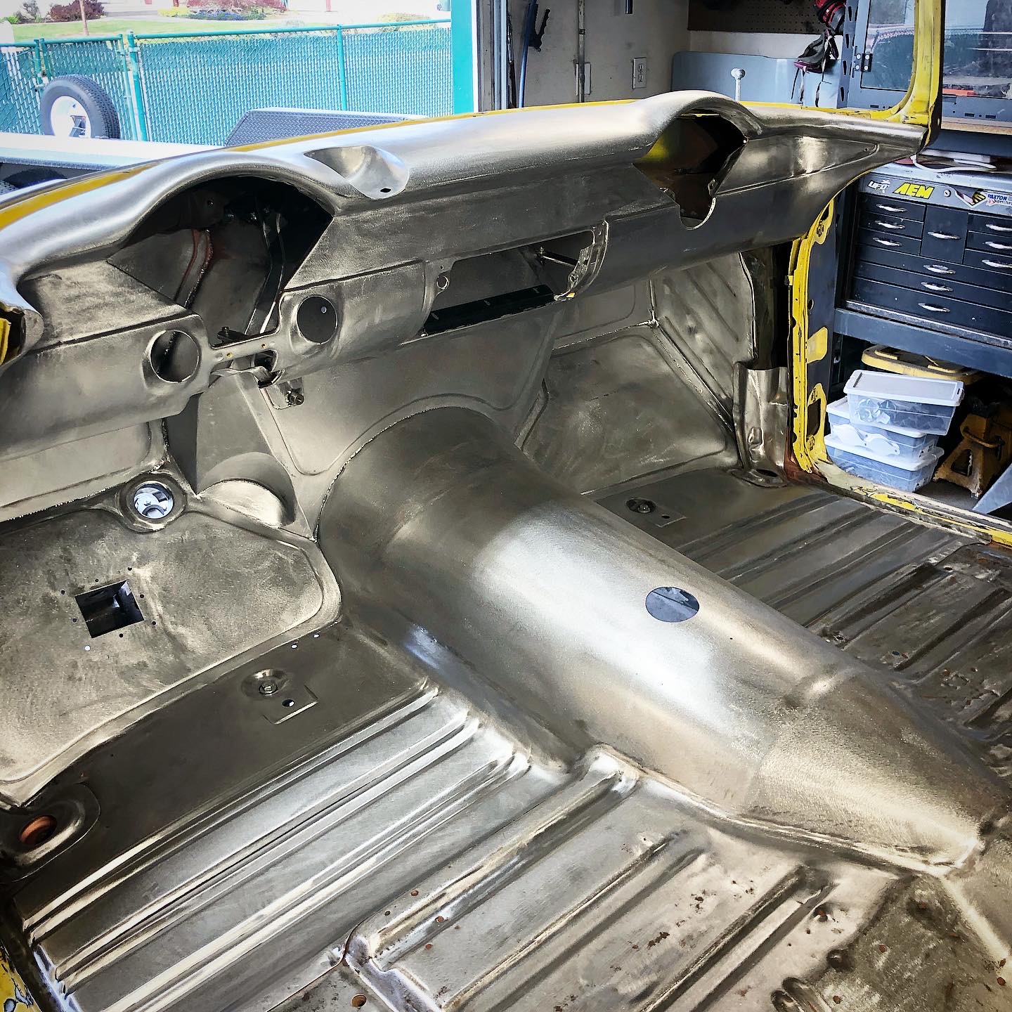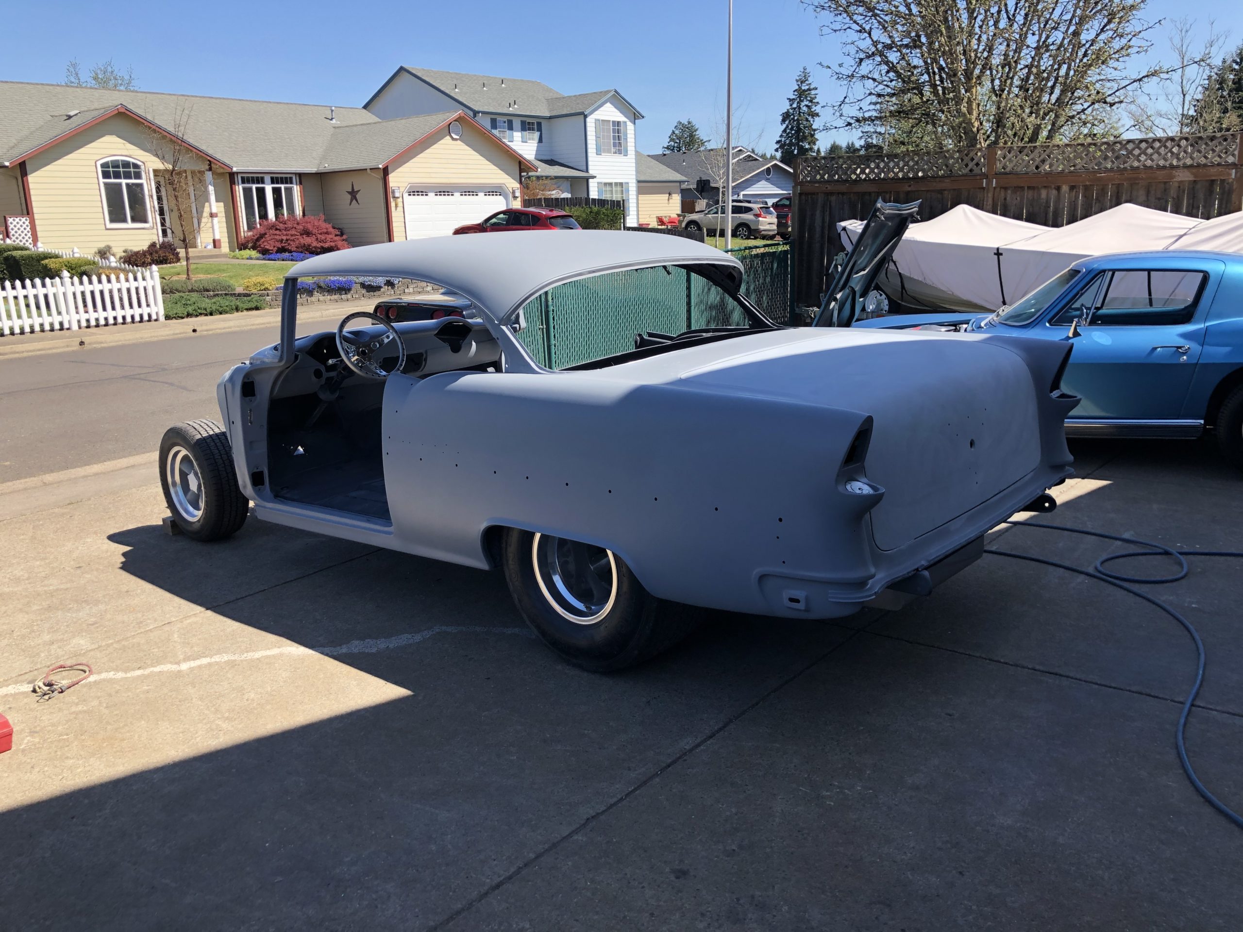The "Banana Boat" 55' Belair is a long term build coming full circle in 2025. Dr. Joe, my client (and former dentist of 25+ years), has owned and hot-rodded this heavy Chevy for decades now through various stages of build construction and life. Originally, this was a driver quality weekend warrior imported from So-Cal with Joe circa the early 90's. My Father, Cris, helped Joe install a back-half frame section 20+ years ago with wheel tubs, a Ford 9" rear, and custom 18" wide rear semi-slicks to go drag racing. After that performance upgrades the car went to a body shop on dental trade for the yellow-white two-tone paint and subsequently sat disassembled for 20 years afterwards due to a busy life schedule. Fast forward to present day and we are midway through the fabrication stage getting this ride back on track with some radical modifications. The vehicle features a Scott's Hotrods tri-five front clip, heavily customized for this application. A massive 468 cu.in. Big Block plant will motivate this behemoth with a big-bore 6-71 positive displacement blower and dual Holley EFI Terminator Stealth throttle bodies atop. The power finds the rear axle via a Bowler Performance Prepped Tremec T56 Super Magnum 6 speed manual trans, Tilton hydraulic throw out bearing, and Mcloud RST dual disc clutch. Cooling is handled by, possibly the largest ever fit, C&R Custom spec crossflow radiator with dual 11" SPAL brushless fans, and a custom external oil cooler. Fuel is supplied from the custom spec stainless ricks tank,massive Holley EFI Pump, and a full sweep of XRP Race-Crimp plumbing. From the Fully de-cast and smoothed block and heads to the Cnc billet-tig welded-nostalgia hilborn injection scoop mashup, and everything between the bumpers this classic is sure to turn heads and features all the micro-details you can expect from a Kyle Kuhnhausen build. All I know is it's sure to cause a spectacle ripping through six gears to 7,000rpm with that big blower whining, and those 18" wide tires torturing the pavement to submission, I can't wait.
