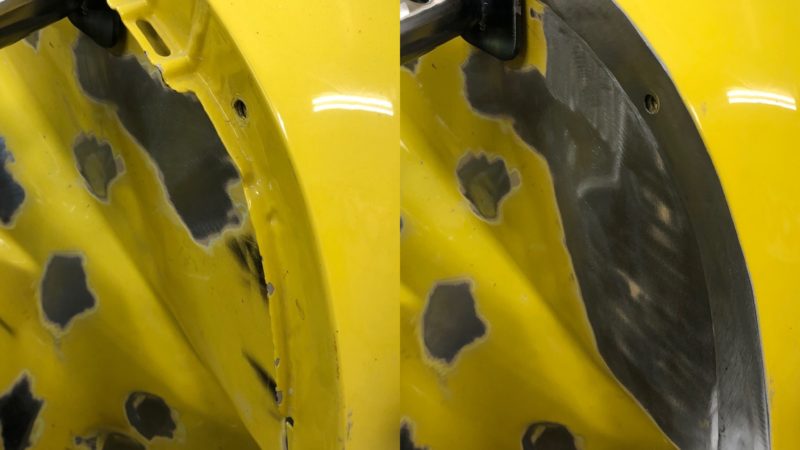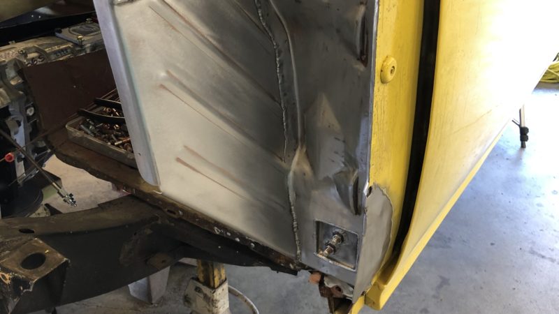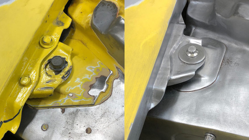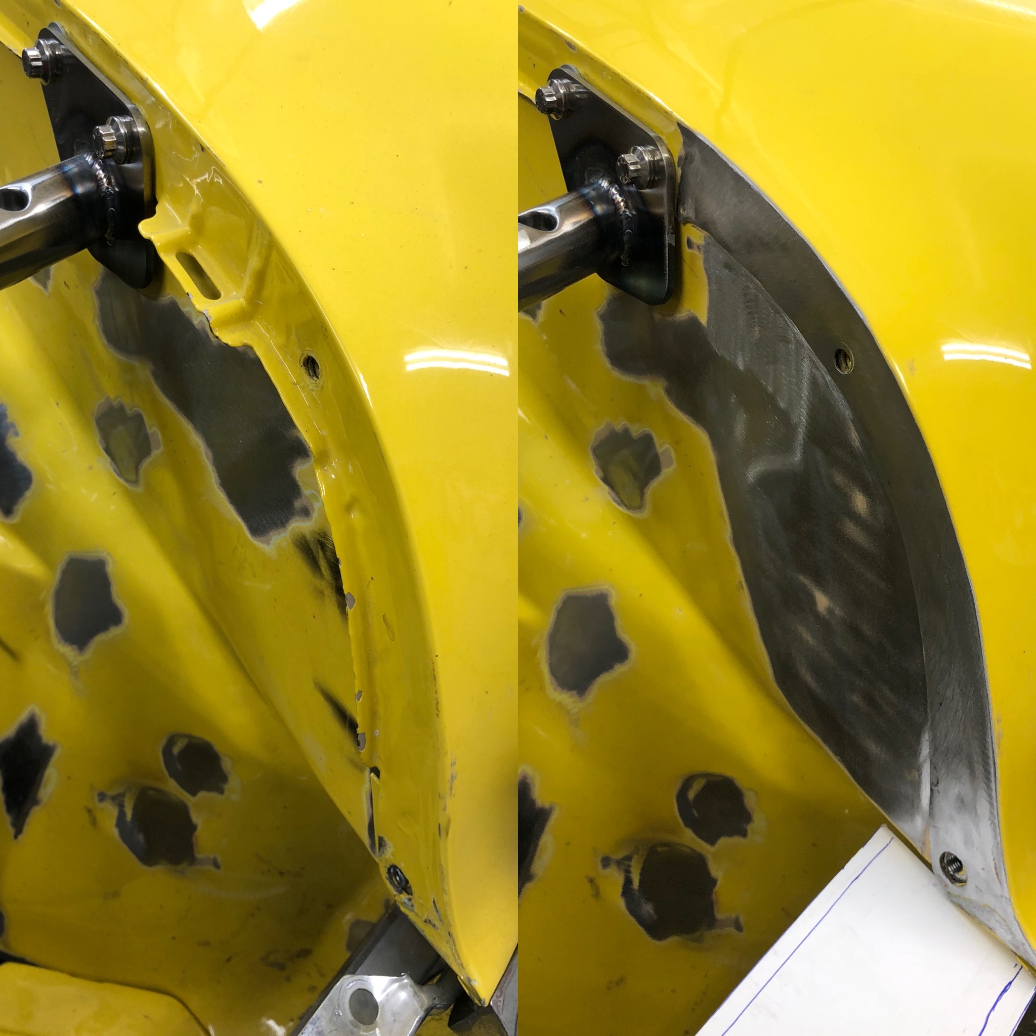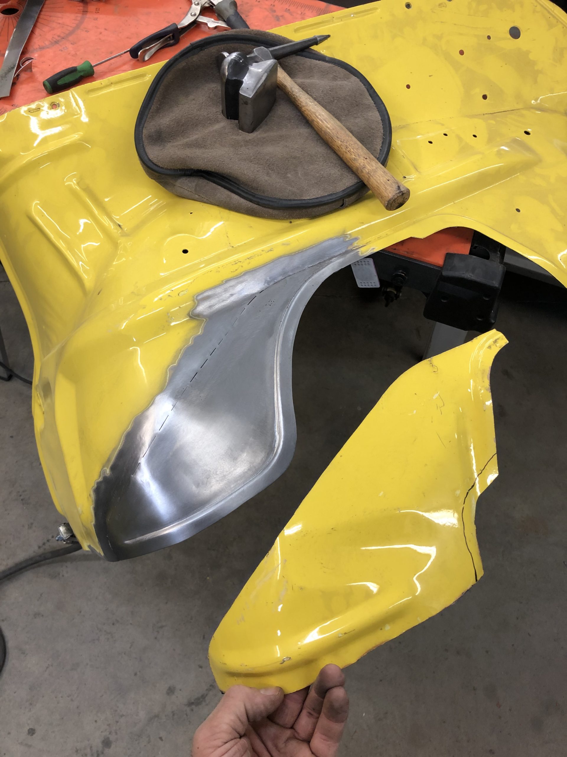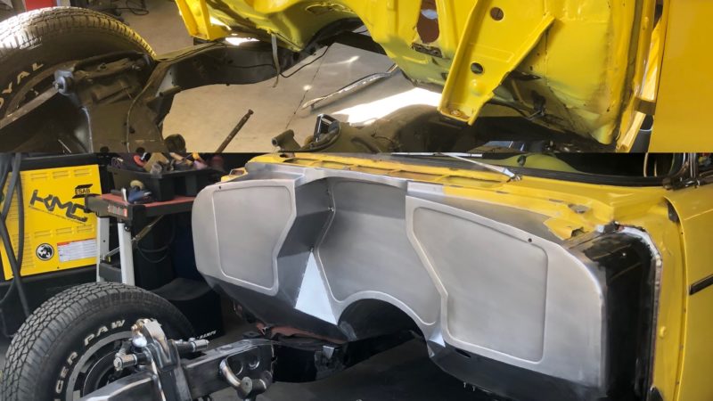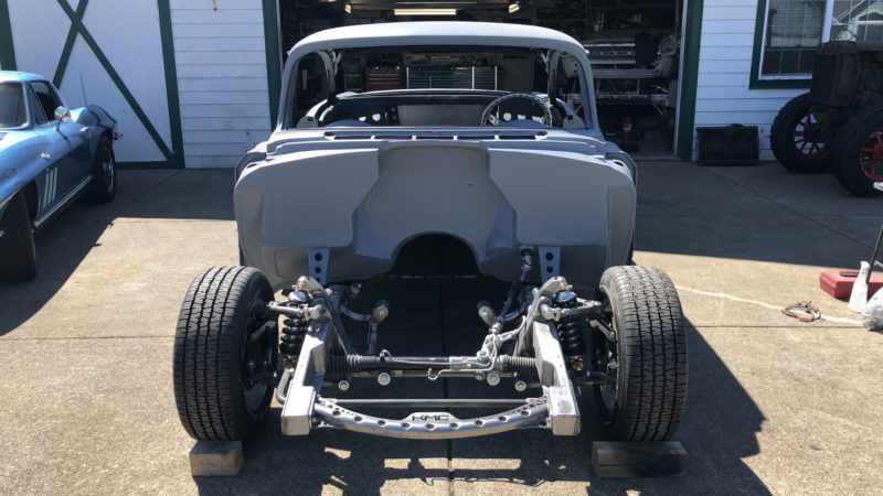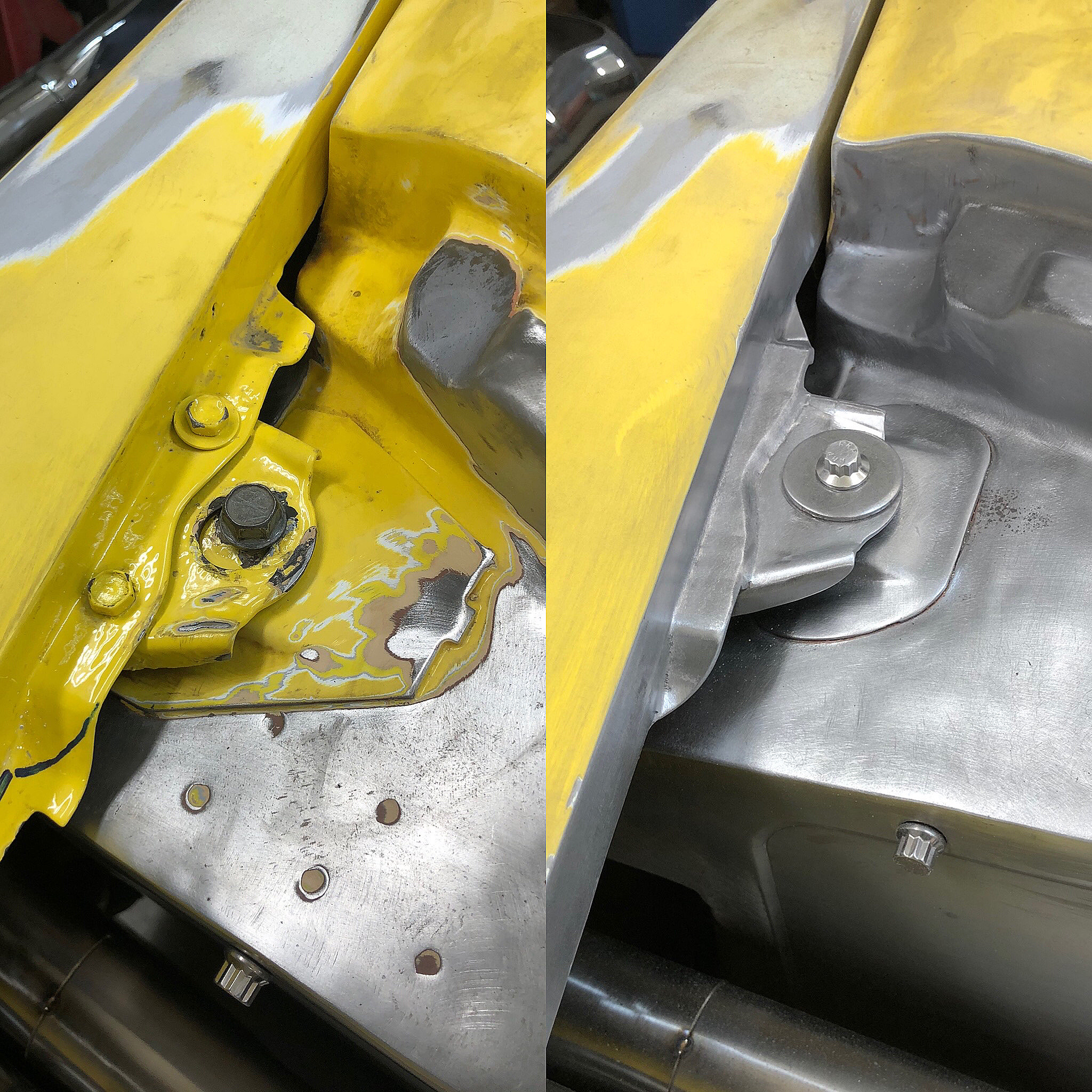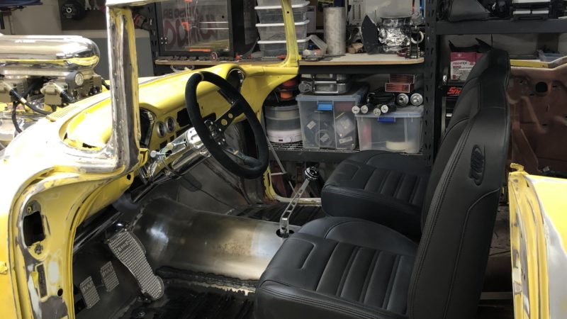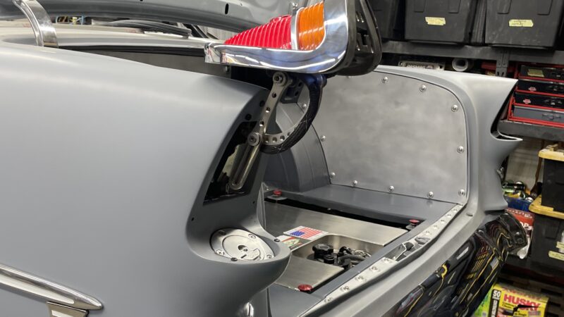 The "Banana Boat" 55' Belair is a long term build coming full circle in 2025. Dr. Joe, my client (and former dentist of 25+ years), has owned and hot-rodded this heavy Chevy for decades now through various stages of build construction and life. Originally, this was a driver quality weekend warrior imported from So-Cal with Joe circa the early 90's. My Father, Cris, helped Joe install a back-half frame section 20+ years ago with wheel tubs, a Ford 9" rear, and custom 18" wide rear semi-slicks to go drag racing. After that performance upgrades the car went to a body shop on dental trade for the yellow-white two-tone paint and subsequently sat disassembled for 20 years afterwards due to a busy life schedule. Fast forward to present day and we are midway through the fabrication stage getting this ride back on track with some radical modifications. The vehicle features a Scott's Hotrods tri-five front clip, heavily customized for this application. A massive 468 cu.in. Big Block plant will motivate this behemoth with a big-bore 6-71 positive displacement blower and dual Holley EFI Terminator Stealth throttle bodies atop. The power finds the rear axle via a Bowler Performance Prepped Tremec T56 Super Magnum 6 speed manual trans, Tilton hydraulic throw out bearing, and Mcloud RST dual disc clutch. Cooling is handled by, possibly the largest ever fit, C&R Custom spec crossflow radiator with dual 11" SPAL brushless fans, and a custom external oil cooler. Fuel is supplied from the custom spec stainless ricks tank,massive Holley EFI Pump, and a full sweep of XRP Race-Crimp plumbing. From the Fully de-cast and smoothed block and heads to the Cnc billet-tig welded-nostalgia hilborn injection scoop mashup, and everything between the bumpers this classic is sure to turn heads and features all the micro-details you can expect from a Kyle Kuhnhausen build. All I know is it's sure to cause a spectacle ripping through six gears to 7,000rpm with that big blower whining, and those 18" wide tires torturing the pavement to submission, I can't wait.