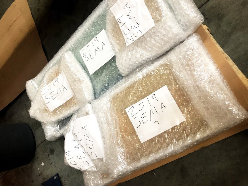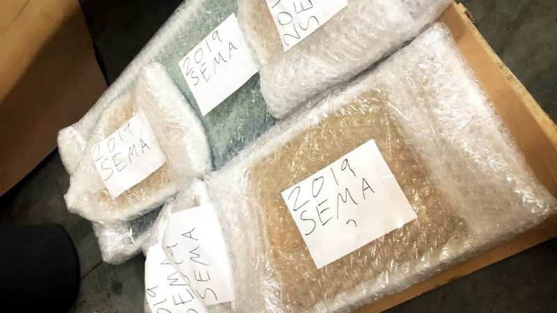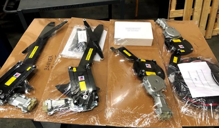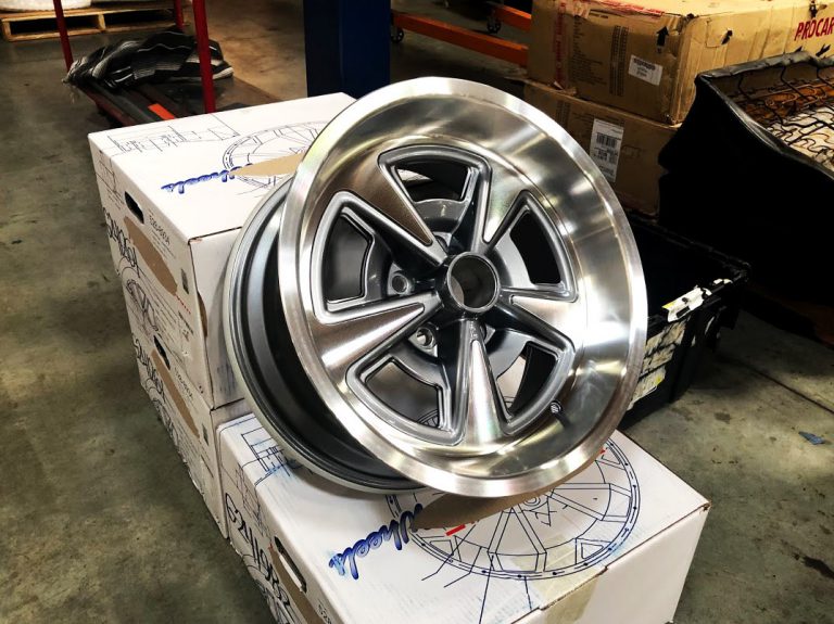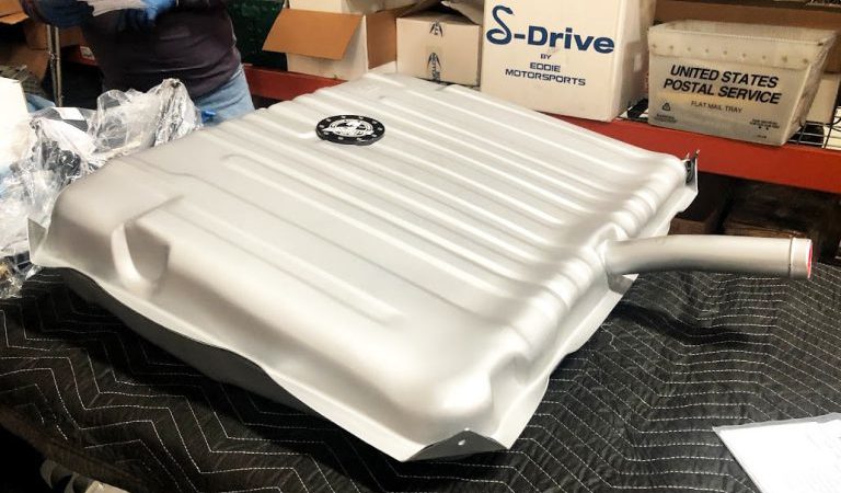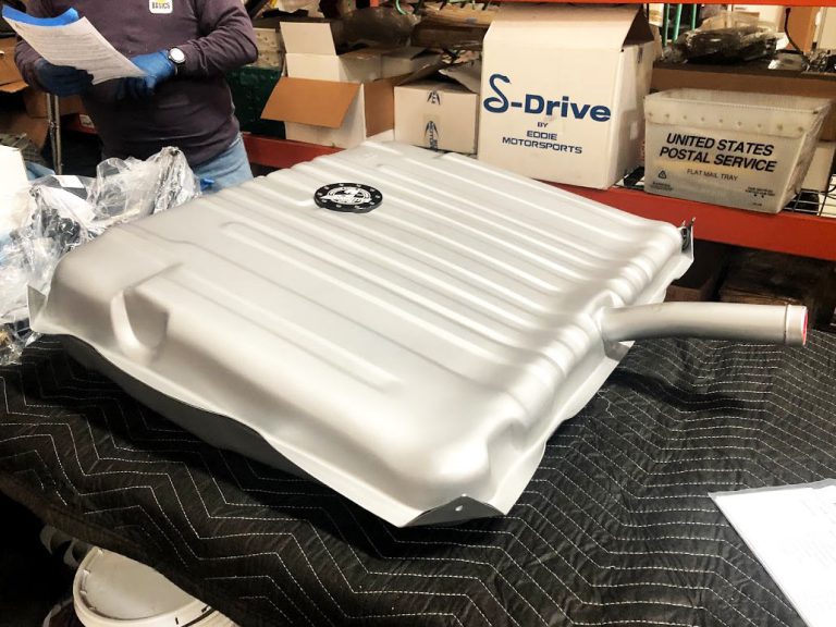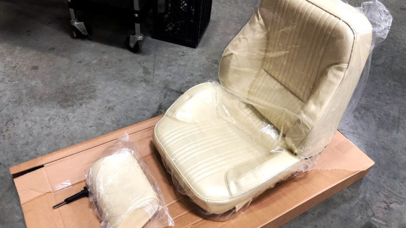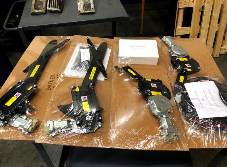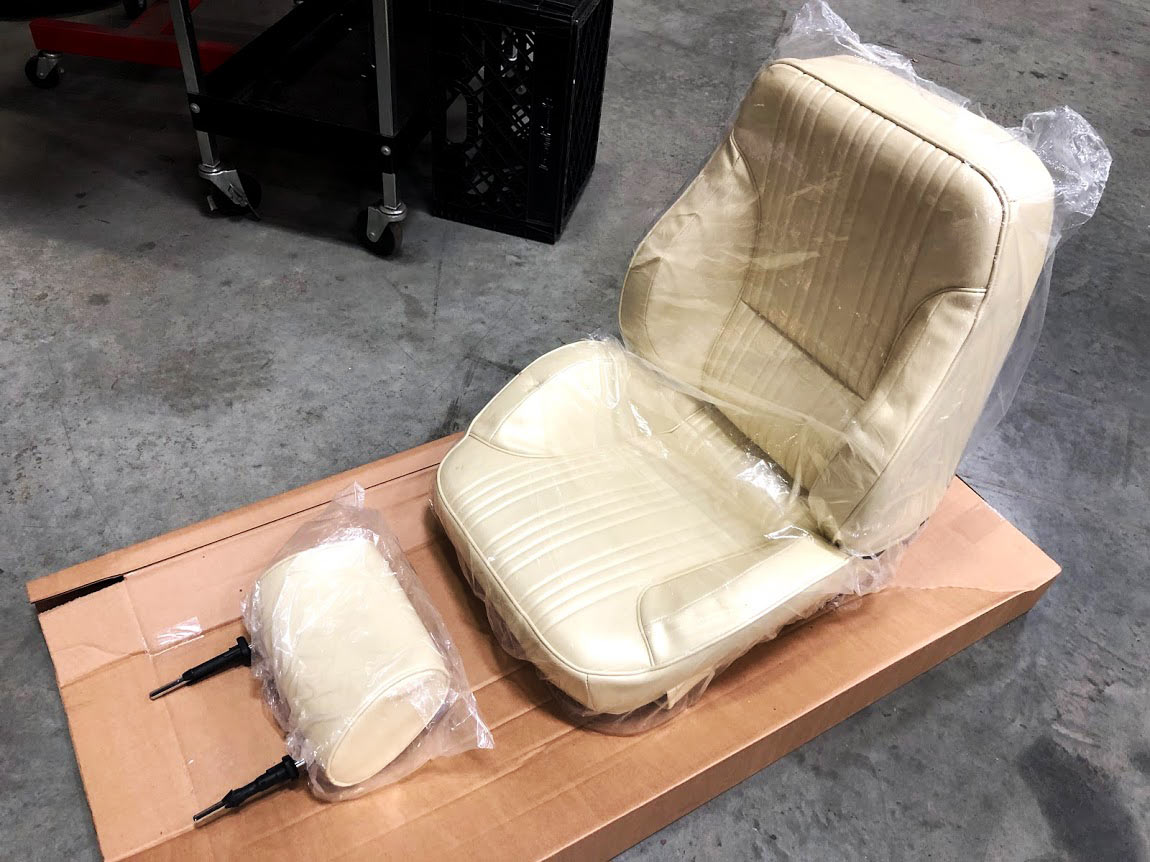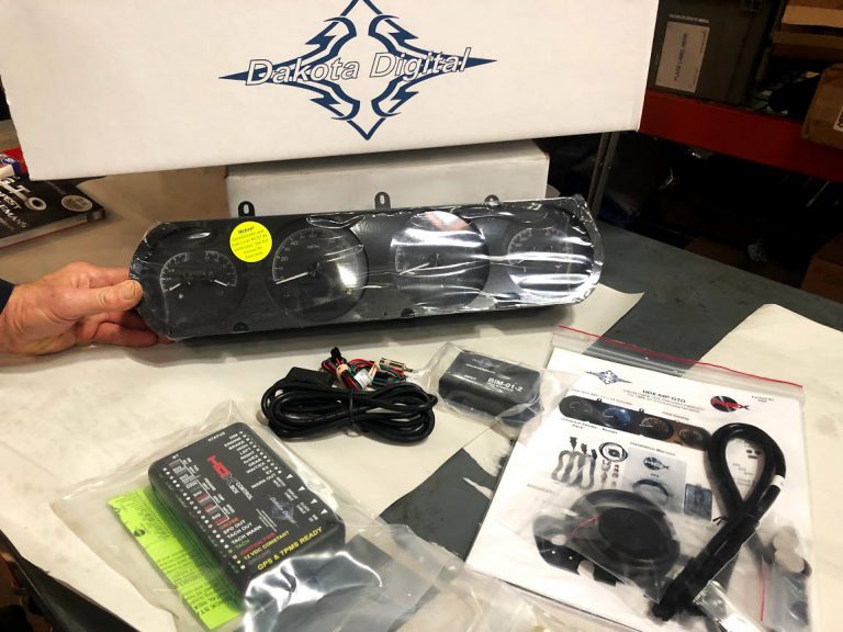 Hotchkis came through with a complete TVS suspension package including upper and lower control arms, heavy-duty tie-rod sleeves, front and rear sway bars, lowering springs, shocks, trailing arms and all braces. This package will ensure smooth handling and performance for our modern classic. Wilwood Engineering sent over a front and rear brake system with master cylinder and lines included. The Wilwood parts are shown packaged below next to the complete differential assembly from Moser Engineering. The OPGI build team attached the trailing arms from Hotchkis as well. Classic Performance Parts (CPP) provided us with a LS engine install kit along with ceramic coated headers and steering gearbox. The kit should make for an easy engine install for the OPGI build team. Headers, transmission cross-member, and exhaust manifolds with head pipe adapters coming soon to OPGI. Engine mounts are FitRite. Magnaflow provided the Street Series cross-member back exhaust system shown below. The stainless steel mufflers and pipes are sure to provide optimal horsepower and torque and will be available for purchase on OPGI.com soon. Cold Case supplied a super duty 1.25″ aluminum performance radiator. The radiator is TIG welded 100% aluminum with 2 rows with dual 12-inch electric fans and aluminum shrouds. American Autowire supplied the wiring system with their Classic Update Kit. This kit includes everything the OPGI build team will need to complete the GTO’s wiring. Taylor sent over the aluminum battery box in order to keep the battery in the GTO secure. The battery box meets all NHRA rules and comes with all necessary mounting hardware. The black alloy HDX gauge cluster below was provided by Dakota Digital. The system includes all the sensors, hardware and wiring needed for quick installation. Detroit Speed provided a custom electric wiper motor kit that will cleanly mount into the GTO. Flaming River took care of the steering column and install accessories all shown still in the packaging below to ensure a quiet ride Flatline Barriers provided the insulation kit. The pre-cut deadener is cut to fit perfectly in our Tribute GTO. Nu-Relics provided a power window conversion kit that will bolt right into the original mounting holes. These are made in a 1018 cold-roll steel with a bronze oilite thrust bearing and treated metal. The Stealth Generation II fuel tank assembly was sent over from Aeromotive, along with the fuel pump and regulator. The tank assembly will enable a high-flow EFI pump and baffle to maintain an ample supply around the inlet of the pump and ensure a consistent fuel delivery. Lokar sent us their Midnight Series flexible braided stainless transmission dipstick featuring a flexible, heat-resistant PTFE rod with a black braided stainless steel cover along with the oil dipstick for LS series engines. The shifter assembly kit was provided by Shiftworks. The assembly includes an adjustable 30″ shifter cable, transmission cable bracket and shift lever, neutral safety/back up light switch, console indicator and all necessary mounting hardware. These lightweight wheels are designed to replicate the original Rally II and were provided courtesy of US Wheels. They are professionally cast and feature a durable powder coated finish for superior looks and performance. Front wheels are 17″ x 8″ and the rear are 17″x 9″. Thanks, to Distinctive Industries we have the complete interior along with Touring II Custom bucket seats in parchment.