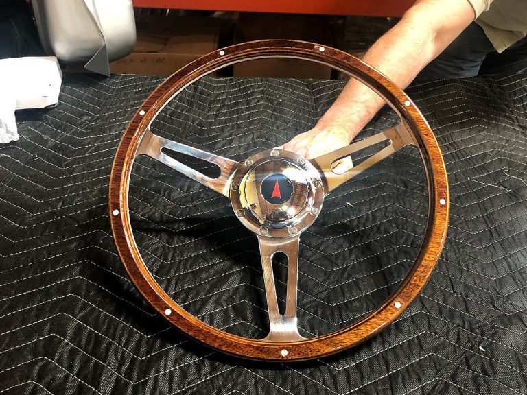 JRD International provided a full set of glass for the entire vehicle including the windshield, door glass, vent glass, and quarter glass. Custom Autosound sent over a modern stereo with OEM style push buttons and knobs along with “The System” speaker and amplifier set. A car wouldn’t be complete without a nice steering wheel! Thanks to GT Performance the GTO will be stocked with this slick GT9 retro wood wheel with Pontiac crest horn button.