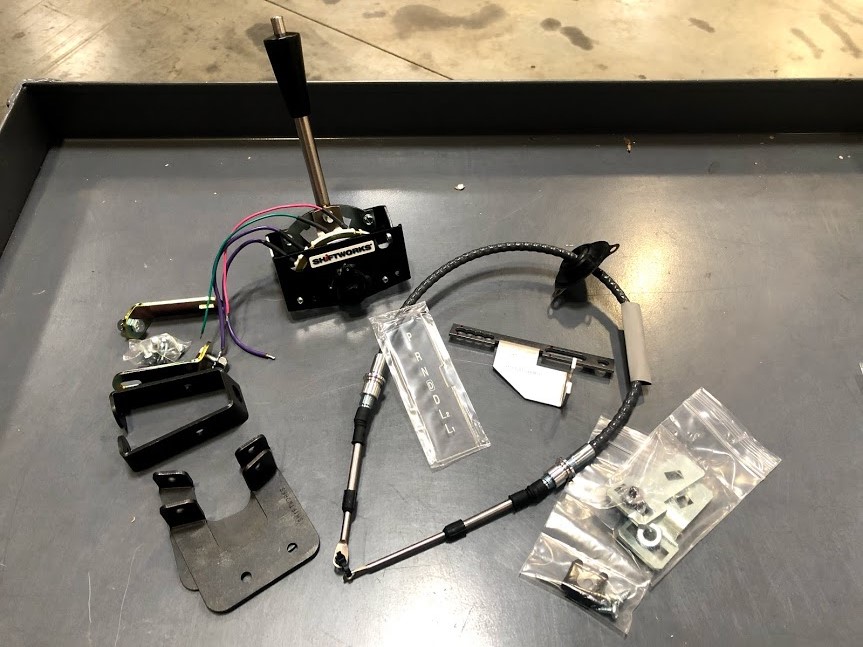 - Shiftworks - Shifter Assembly Kit. The Assembly Includes an adjustable 30" Shifter Cable, Transmission Cable Braket and Shift Lever, Neutral Safety/Back-up Light Switch, Console Indicator and all Necessary Mounting Hardware