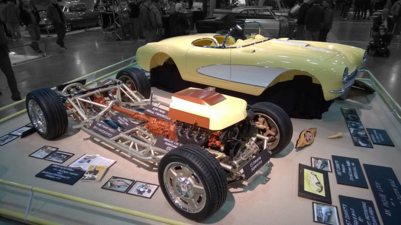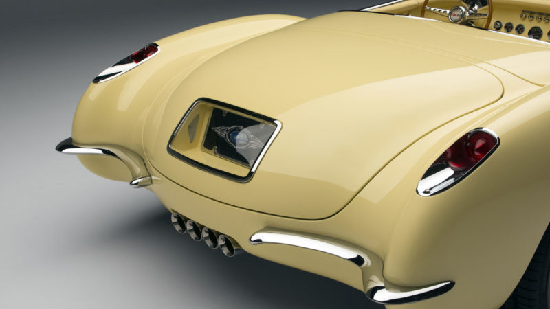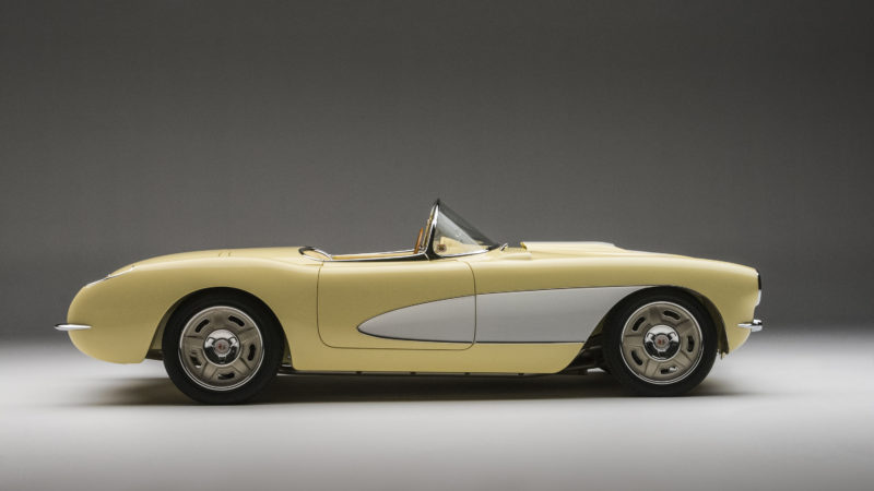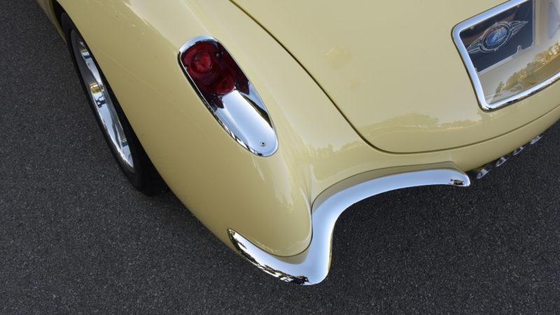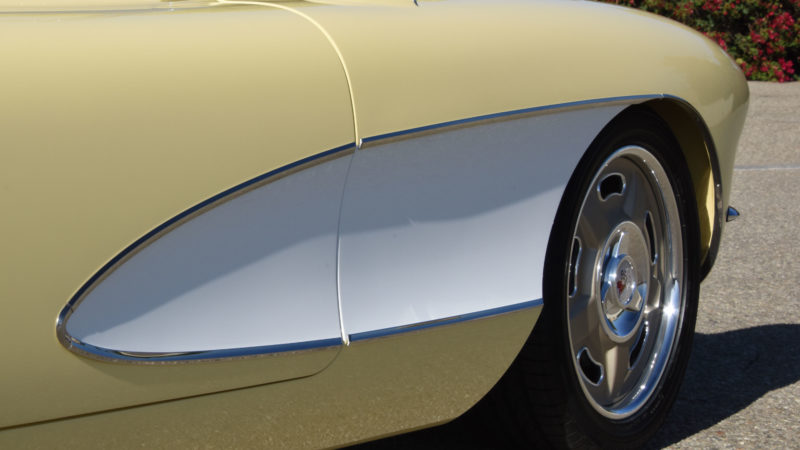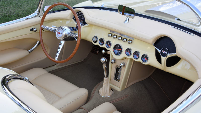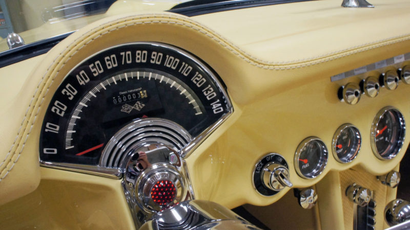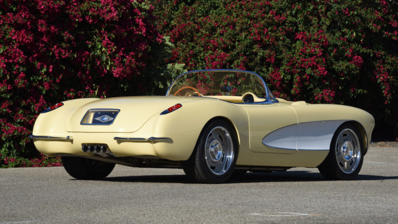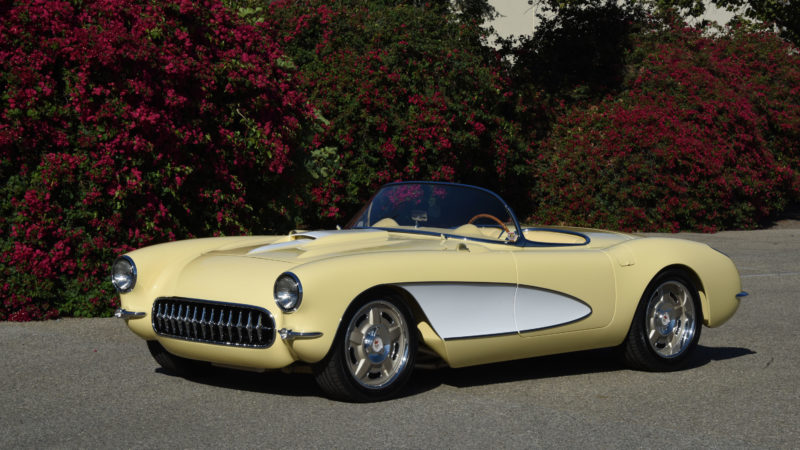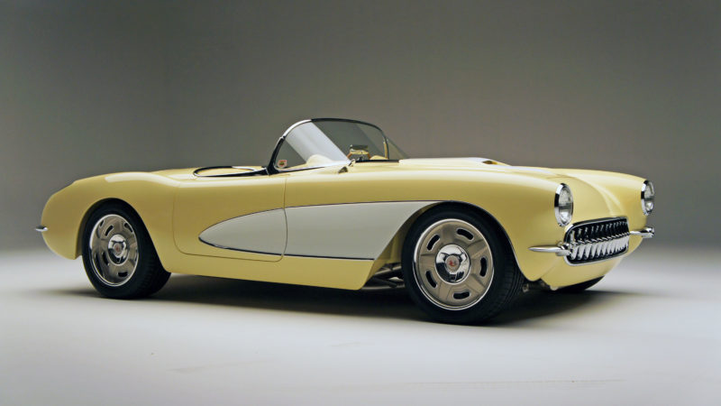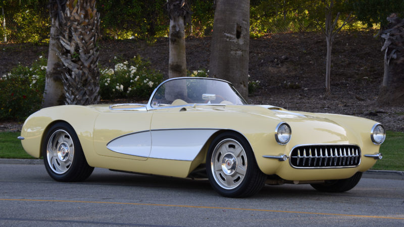 This 1957 Corvette had seen better days, but thanks to the crew at Steve’s Auto Restorations it now has an exciting new lease on life. A ’53 windshield was used to give the ’57 a more streamlined appearance, thus the doors were then capped with a custom fabricated trim piece making this a true roadster. An entire new front clip was installed with a one-off hood incorporating a stinger style scoop, the only visual hint of the supercharged Cadillac LSA V8 lurking below. The whole package rides on a round tube chassis using C4 and C5 suspension. Custom one-off wheels connect everything to the pavement. Now bathed in a pearlized version of Panama Yellow, this ’57 can enjoy being America’s favorite sports car once again.