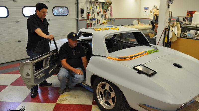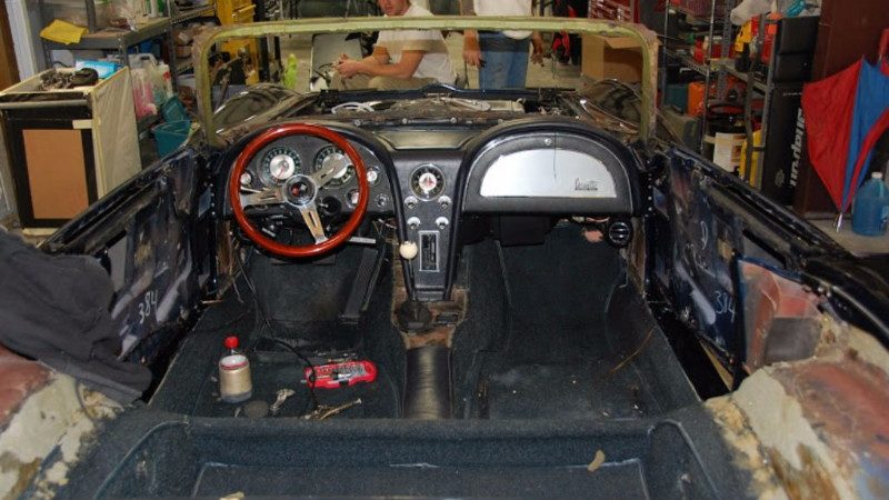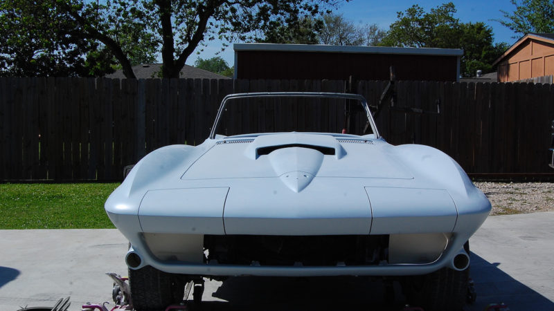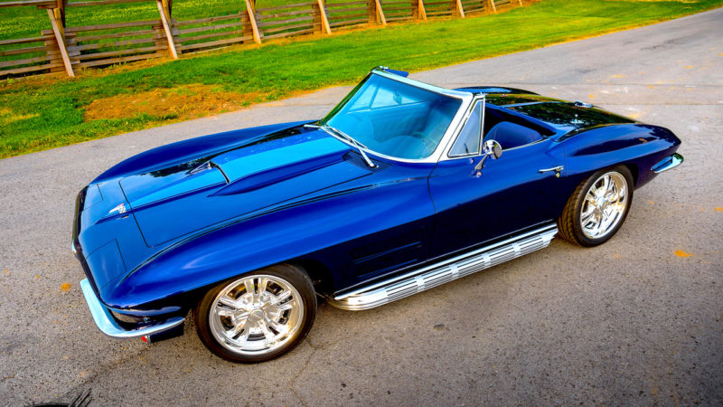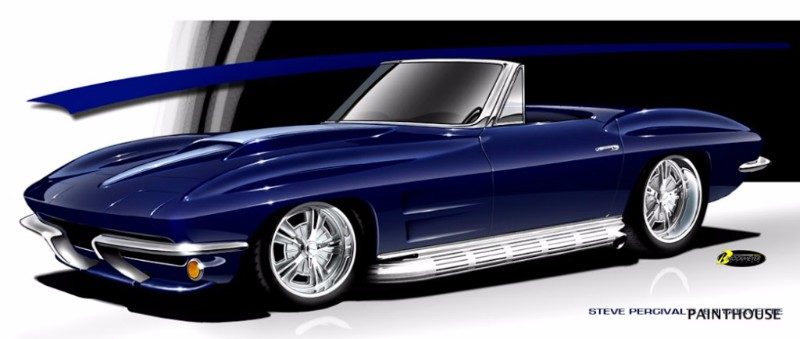 This is a 1963 Corvette Roadster. In addition to this car, owner Steve Percival also has a couple Ferrari’s and a newer Corvette. The idea behind the car is a subtle blending of traditional and modern Corvette with Vintage Ferrari, with a classic road racing undertone swirling around the edges.