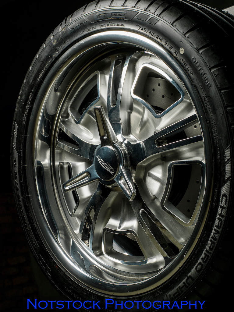 The wheels are called “Modsport”; made by Schott Wheels - 17x8” front and 18x8.5” rear. The Yokohama S-drive tires have had the sidewalls smoothed of all lettering. The tire sizes are not huge as the wheel wells were not modified in the original body, per Steve’s request.