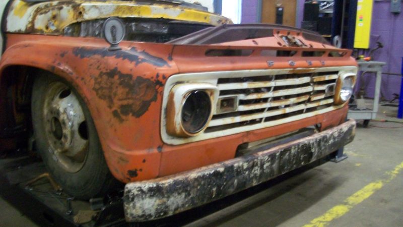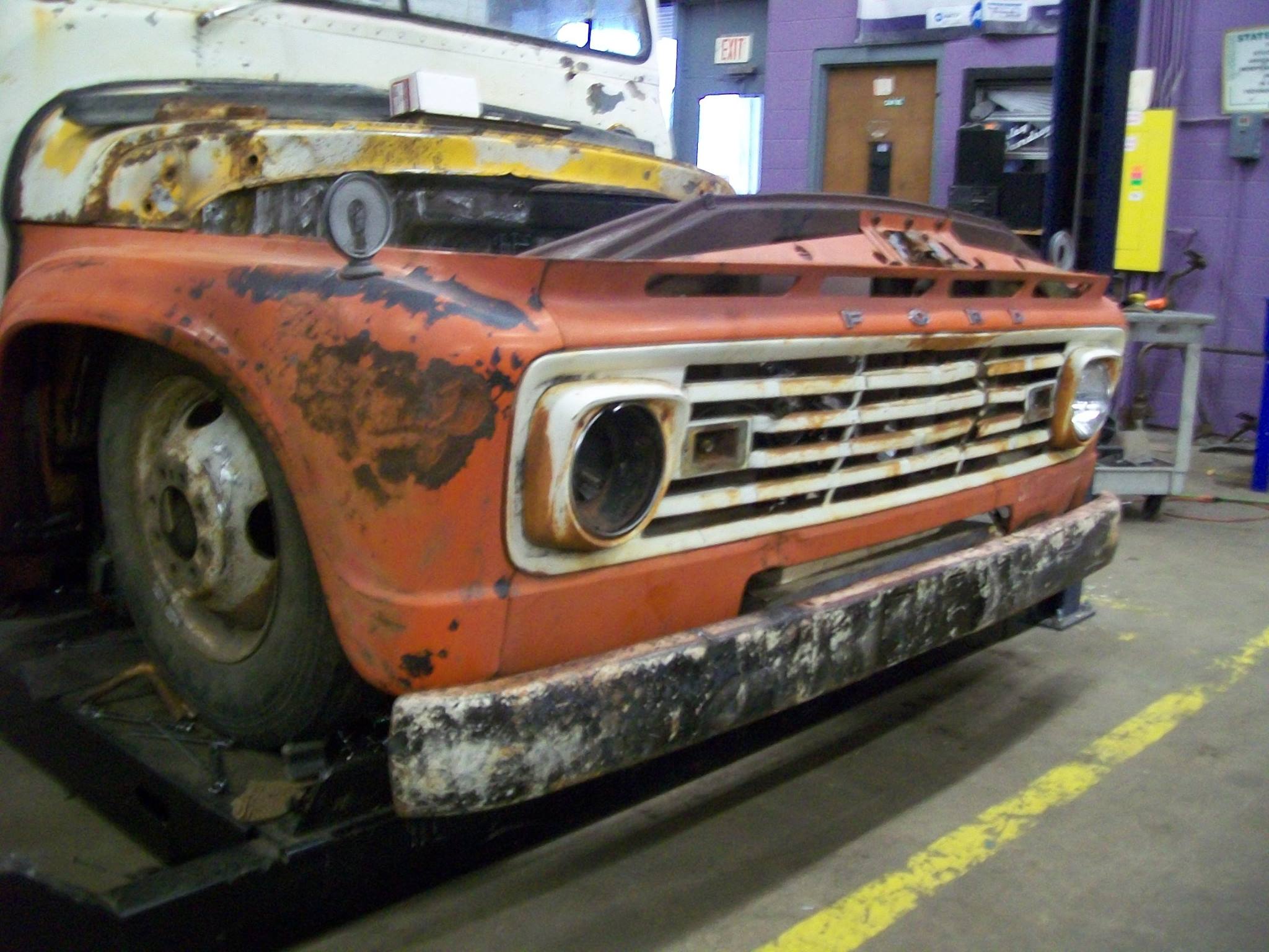 This 1963 short bus was built by high school students at the Walker County Center of Technology. It was a joint project between our collision and automotive classes with help from our welding and machine classes. We shortened it 82 inches and dropped it over 14. We Zd a P30 clip 4 inches and added BellTech drop spindles. The rear is a Dana 70 HD flipped on F450 springs and hangers. Power is provided by a 0.60 over 350 with 327 double hump heads. A Rochester 4jet is mounted to an Edelbrock intake with a modified original breather. A th400 was used with a shifter made from the original E-brake handle. GM hydroboost brakes do the stopping.