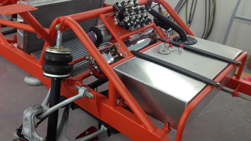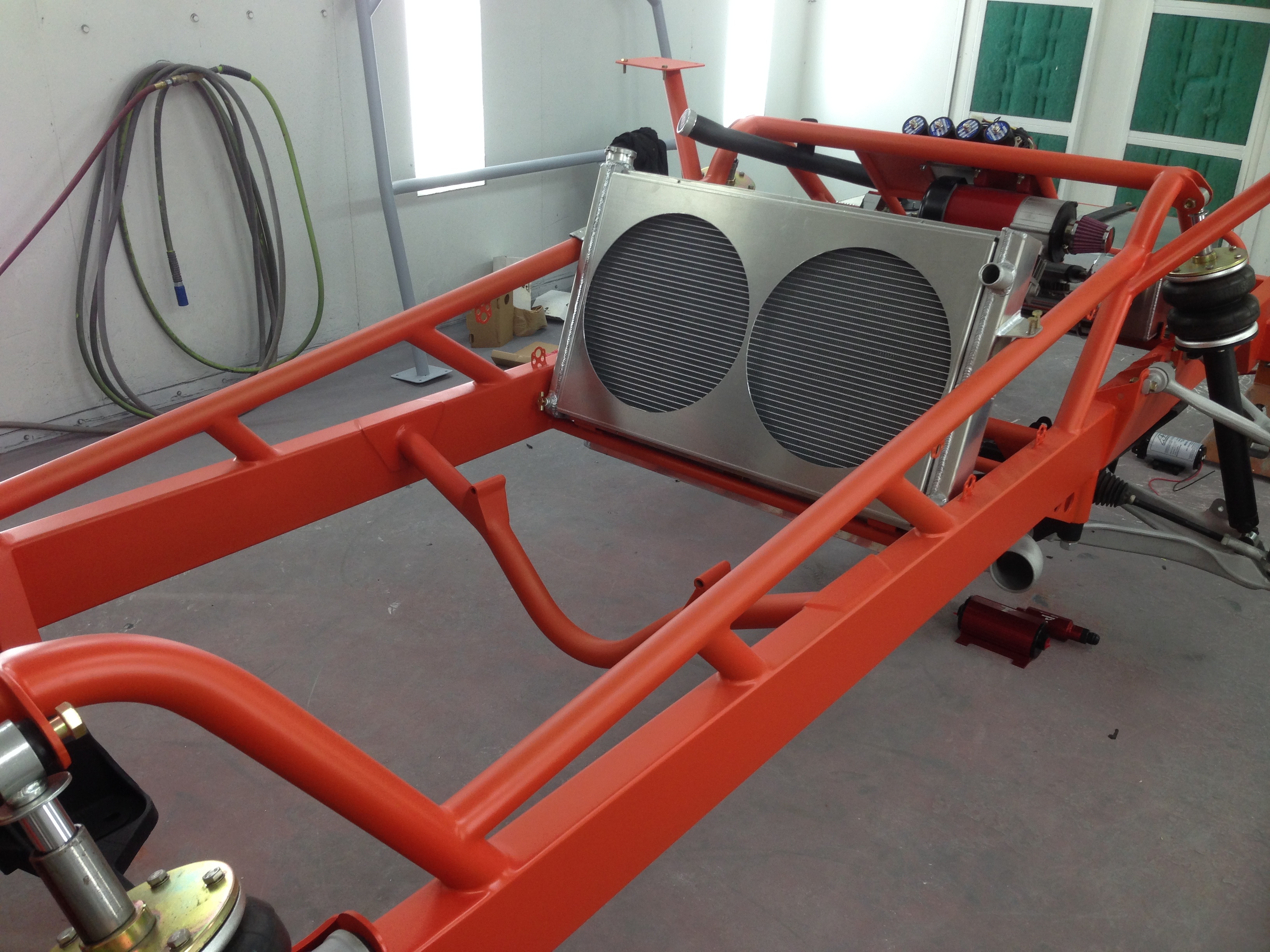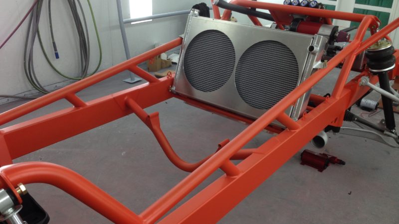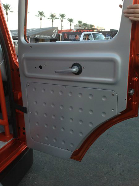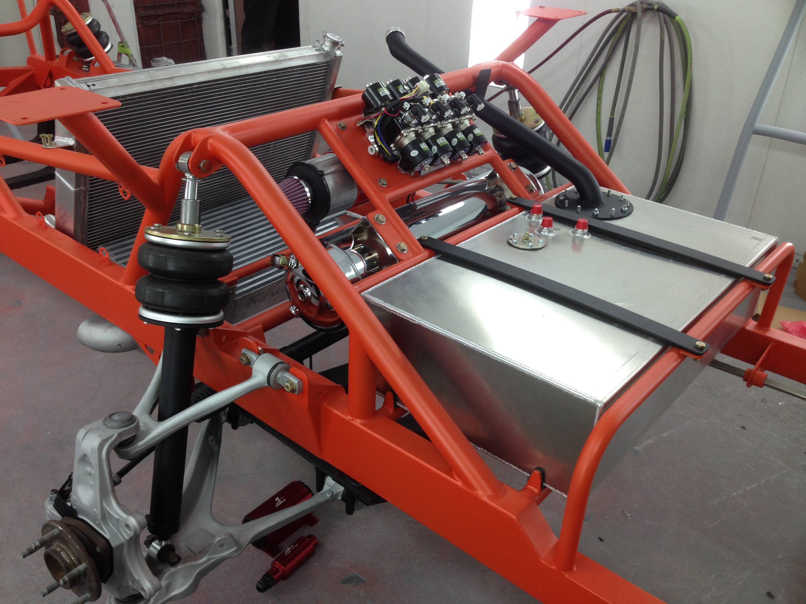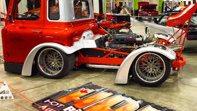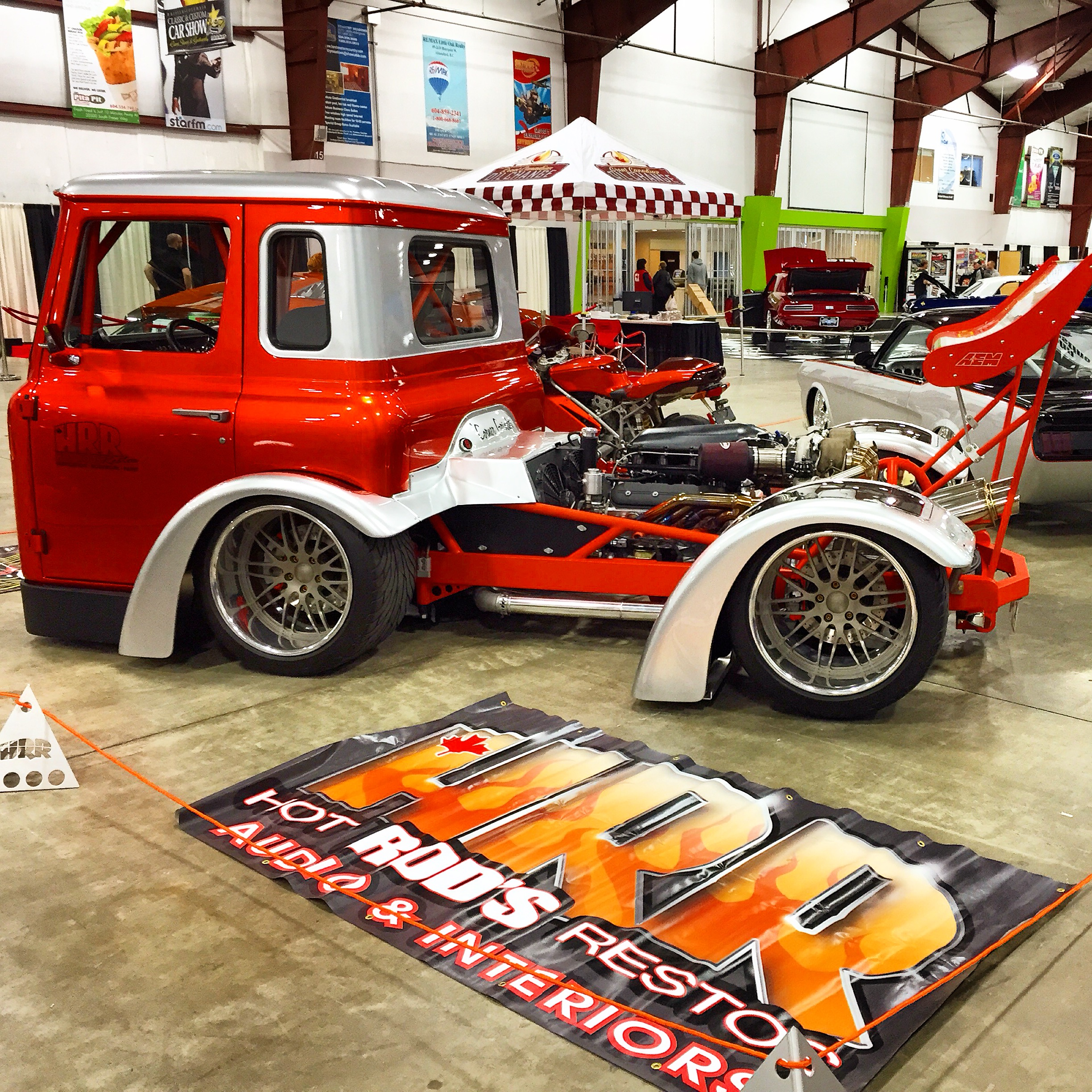 Had been searching for years for a quality cab to build this project. We found one 53 days before SEMA 2014 had the truck shipped and in 47 days built the truck from scratch and delivered it to SEMA. We had a lot of help from a lot of great companies to make this happen. It has C6 suspension front and rear on air ride. Massive Boyd wheels with Mickey Thompson tires. It has our offset drive modified C6 transaxle mated to the back of a 6.0 ltr Ls motor via our components.it is like nothing else out there and feels very odd to roll down the road in!