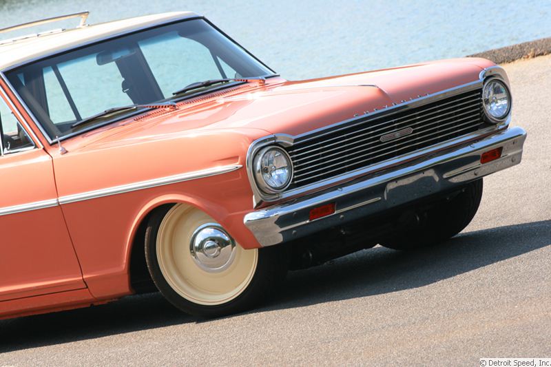 The Project: Bridget brought us this car for a few upgrades. Detroit Speed disassembled the Chevy II to bolt-on our Chevy II Front Frame, add our Deep Tubs and our Chevy II QUADRALink™ rear suspension.