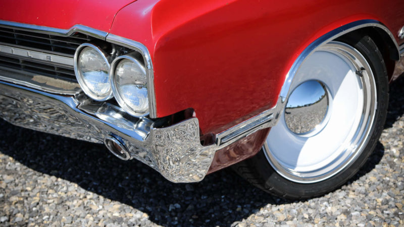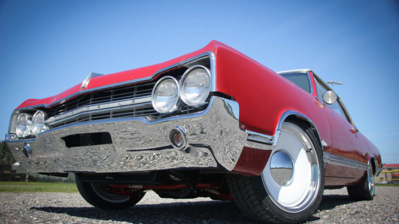 Enter this clean, mildly modified 1965 Cutlass F85, an intermediate-sized Oldsmobile that shares the same A-body platform as Chevy’s Chevelle. The UMI crew fondly refers to this particular Olds as their “Shop Rag,” a company project car dedicated to showcasing UMI’s latest suspension and chassis components for the street. UMI President Ryan Kirkwood said that they picked this particular Cutlass because of its original condition, low mileage, and it seemed to be the perfect candidate for what they planned to do. It was a solid car that didn’t require a full restoration and wouldn’t break the bank to turn it into a proper long-haul cruising machine.