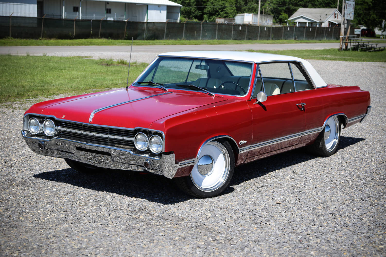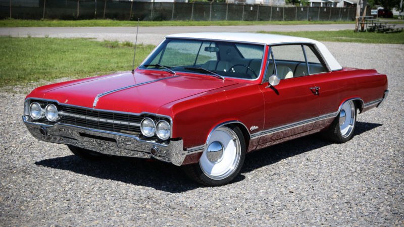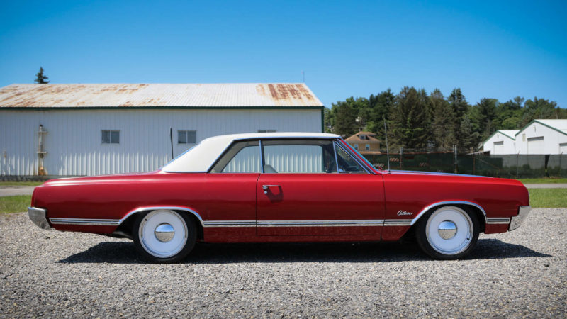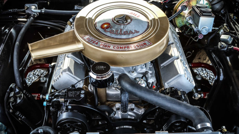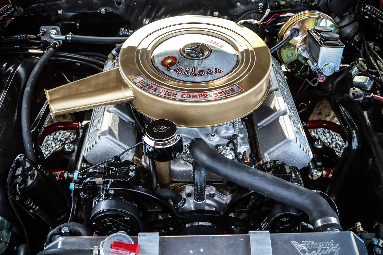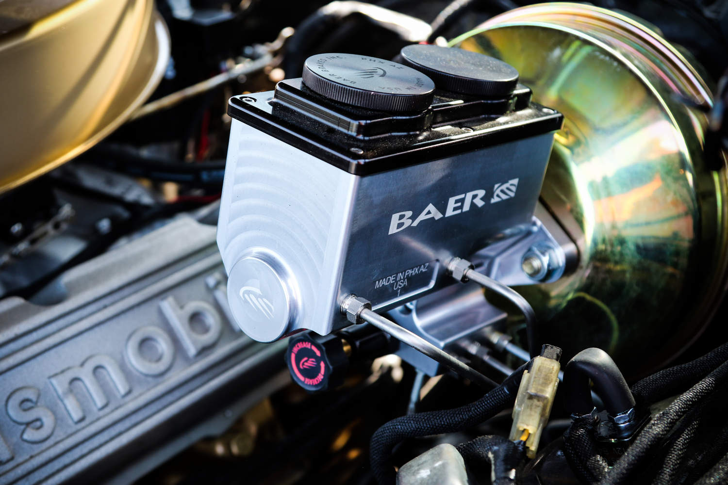 The 54-year-old Cutlass body remains stock with the exception of the white-painted roof to compliment the 18-inch Detroit Steel wheels. Changes in direction are handled by a Turn One steering box, while stopping power is enhanced by a new Baer brake system.
