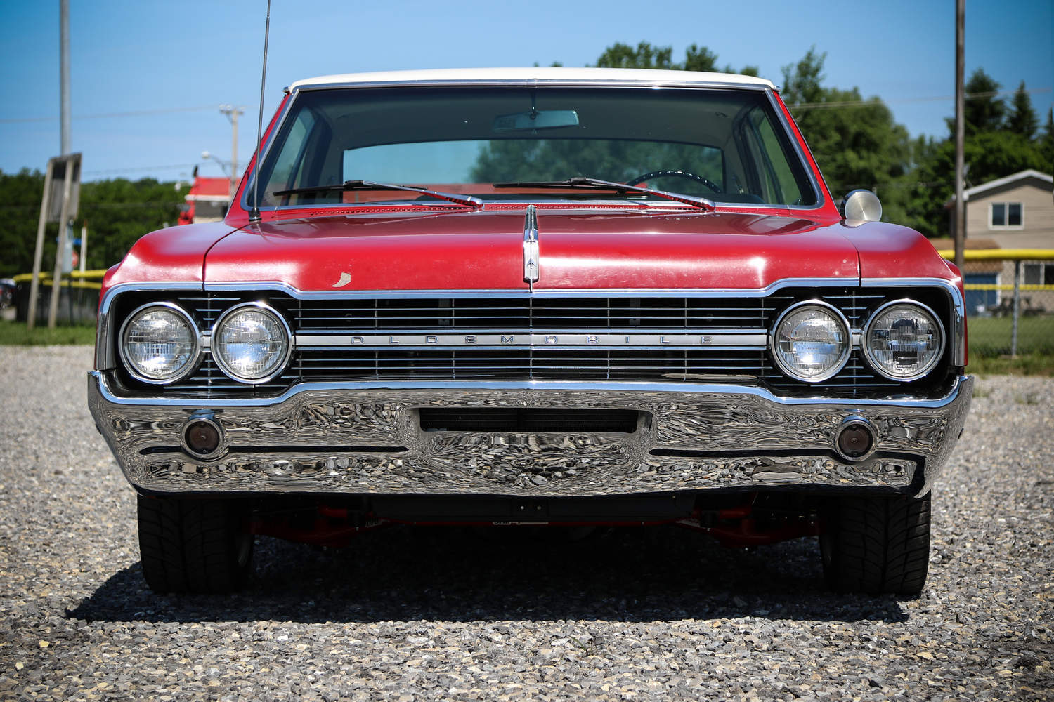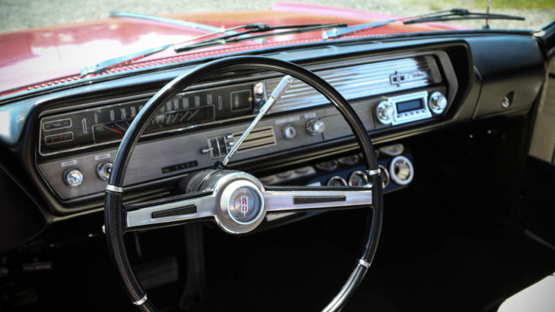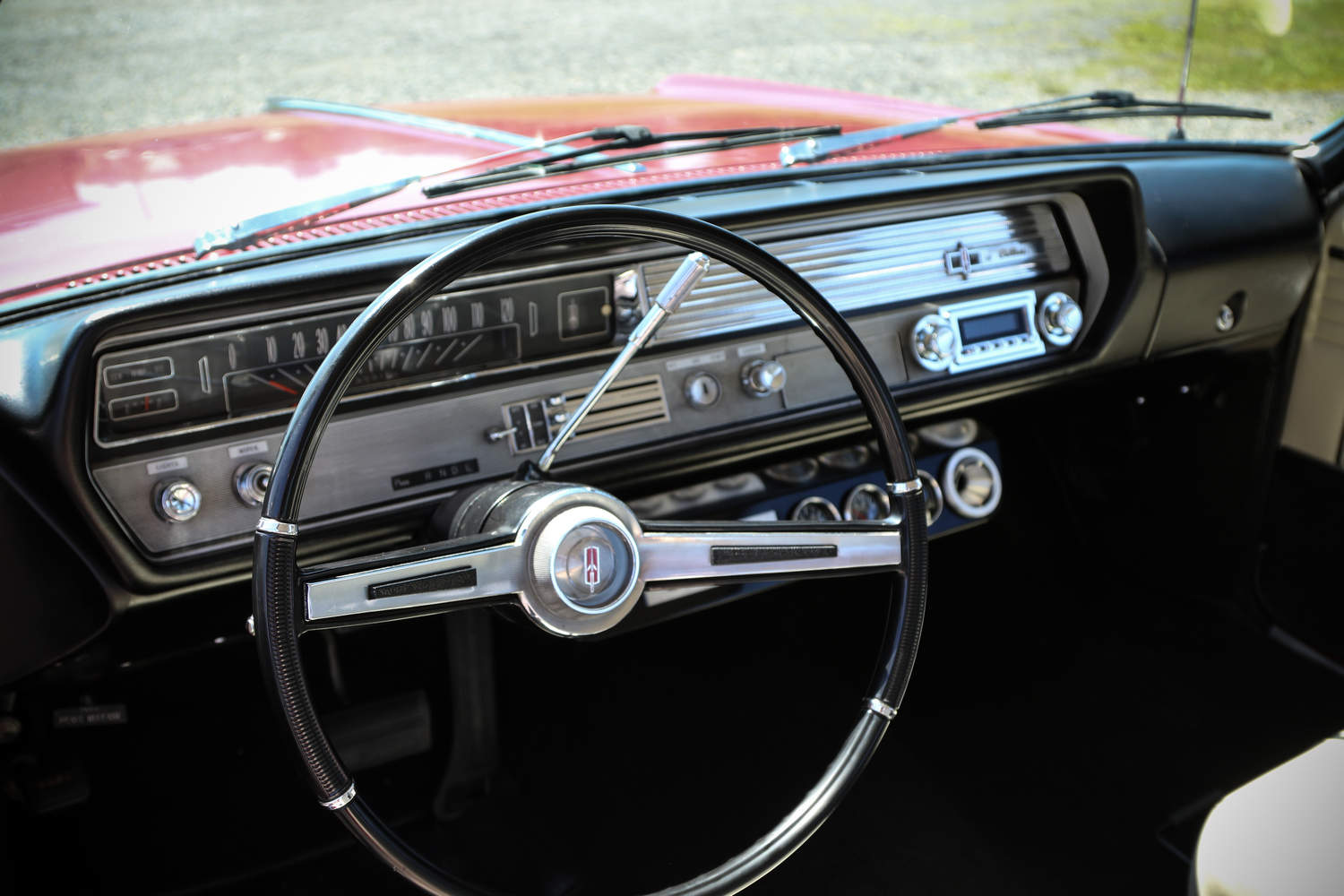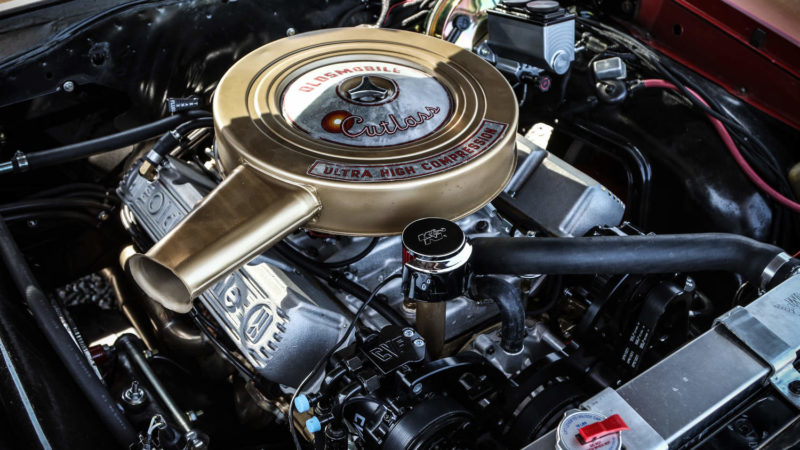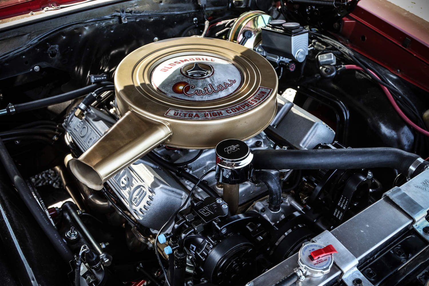 The 54-year-old Cutlass body remains stock with the exception of the white-painted roof to compliment the 18-inch Detroit Steel wheels. Changes in direction are handled by a Turn One steering box, while stopping power is enhanced by a new Baer brake system.