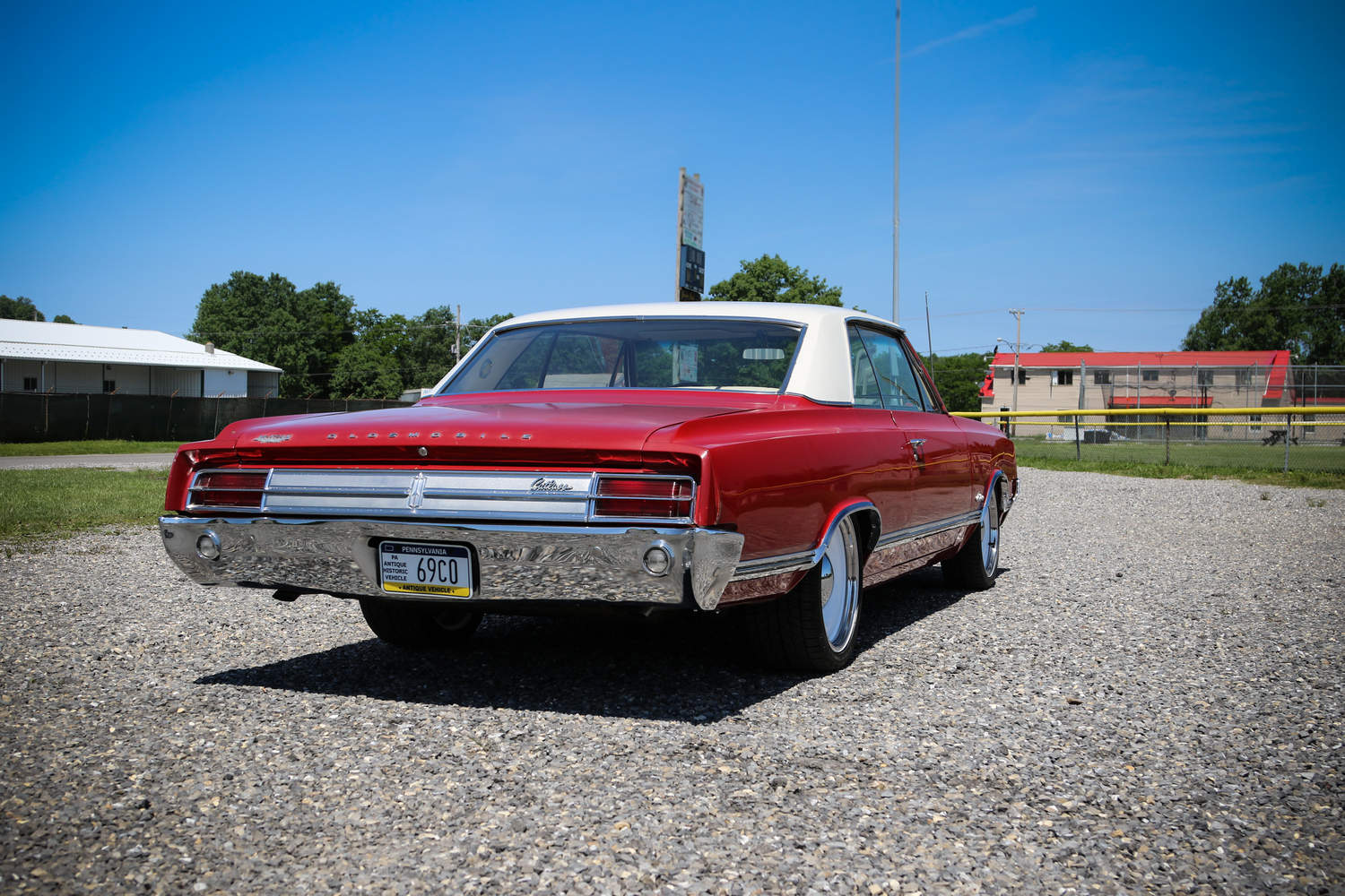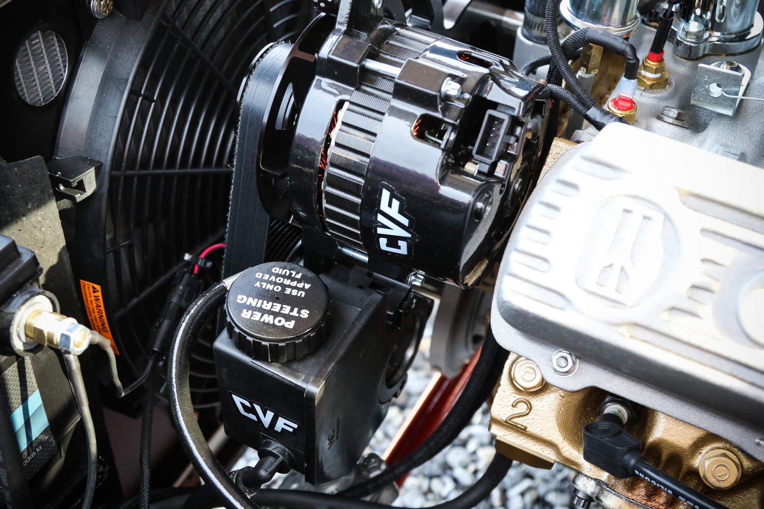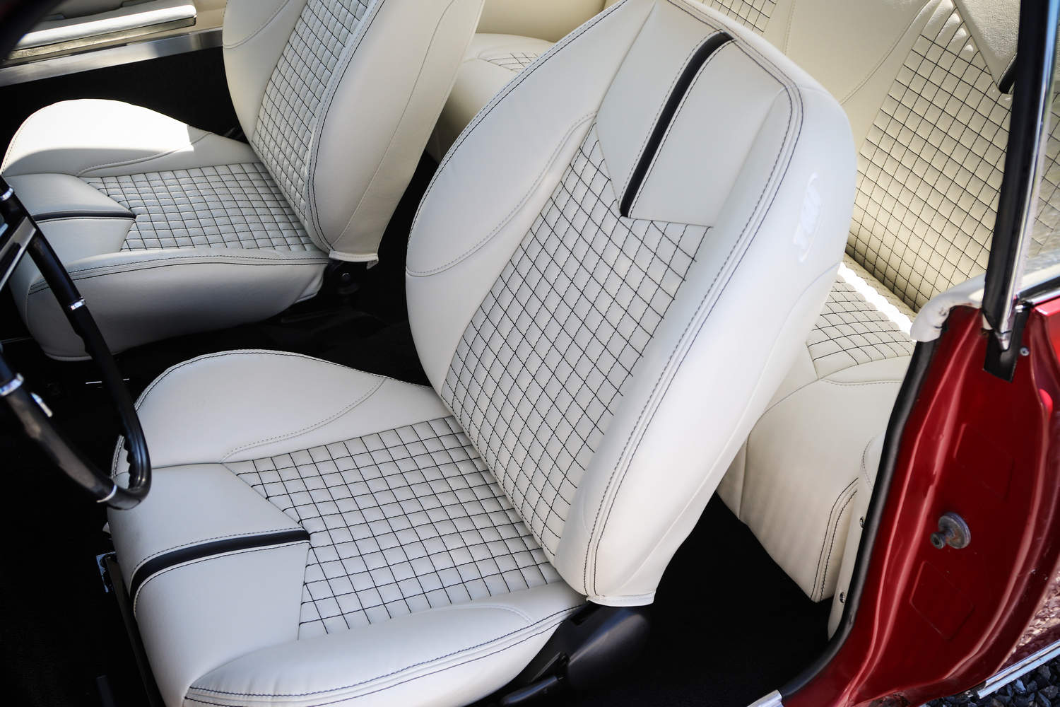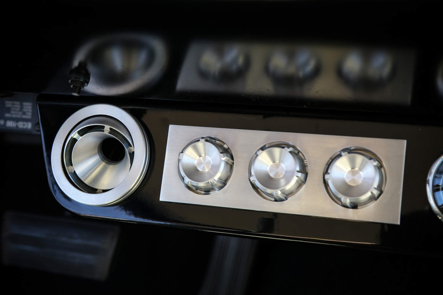 The engine is the original 330 CID V8 that has been completely rebuilt by Redline Performance & Machine in Brookville, PA, using a combination of parts from Edelbrock, Comp Cams, Manley, Hastings, Cloyes and Pertronix to bring the horsepower output up to 320 at 5,200 RPM. A Wizard radiator keeps the 330 cool while American Racing Headers and Flowmaster mufflers vent the exhaust gases. The stock two-speed transmission has been tossed in favor of a Bowler 4L60E overdrive, and the rear end has been fitted with an Auburn Posi unit with a 3.55:1 gearset.