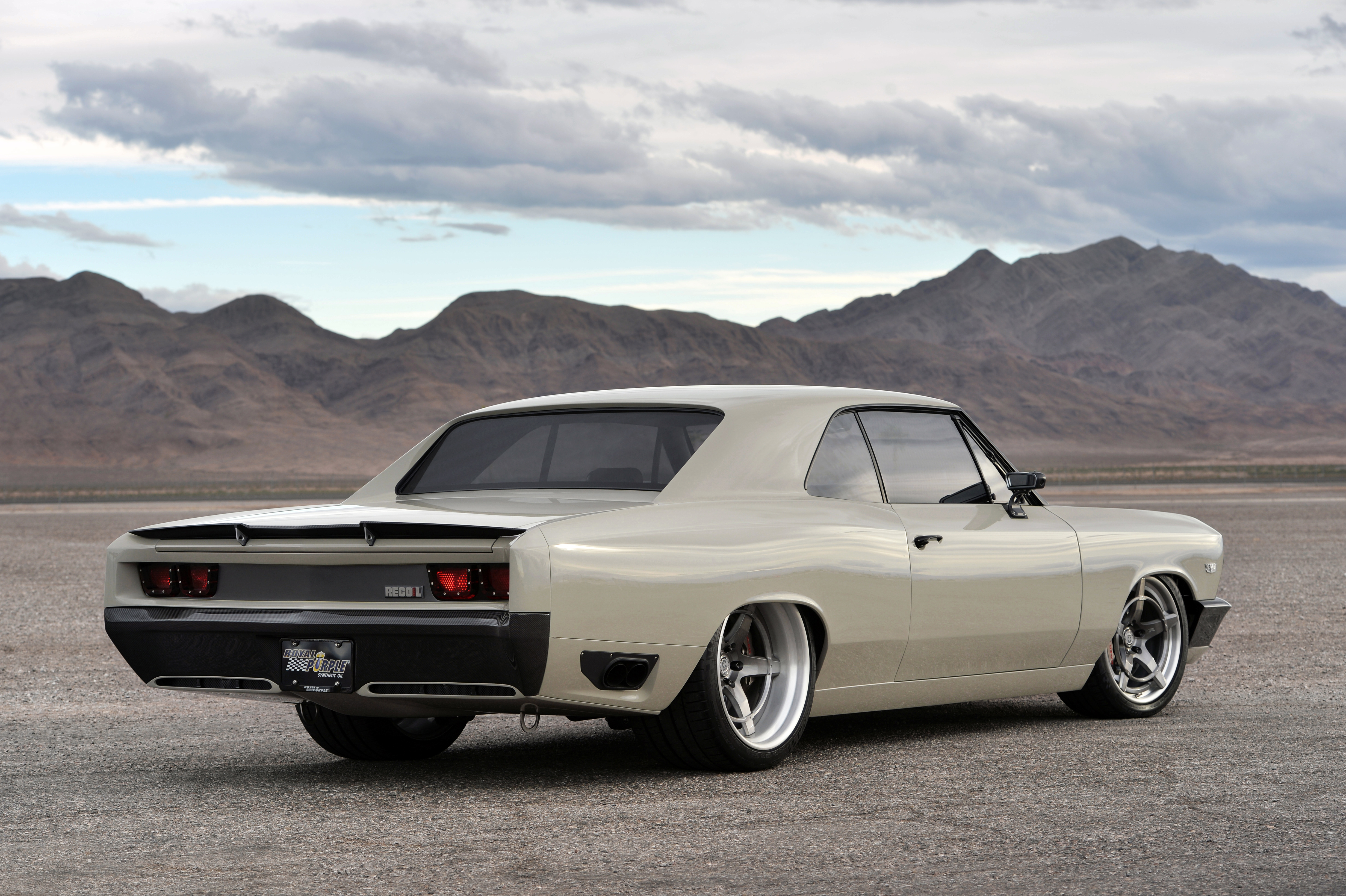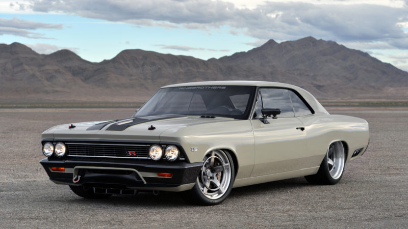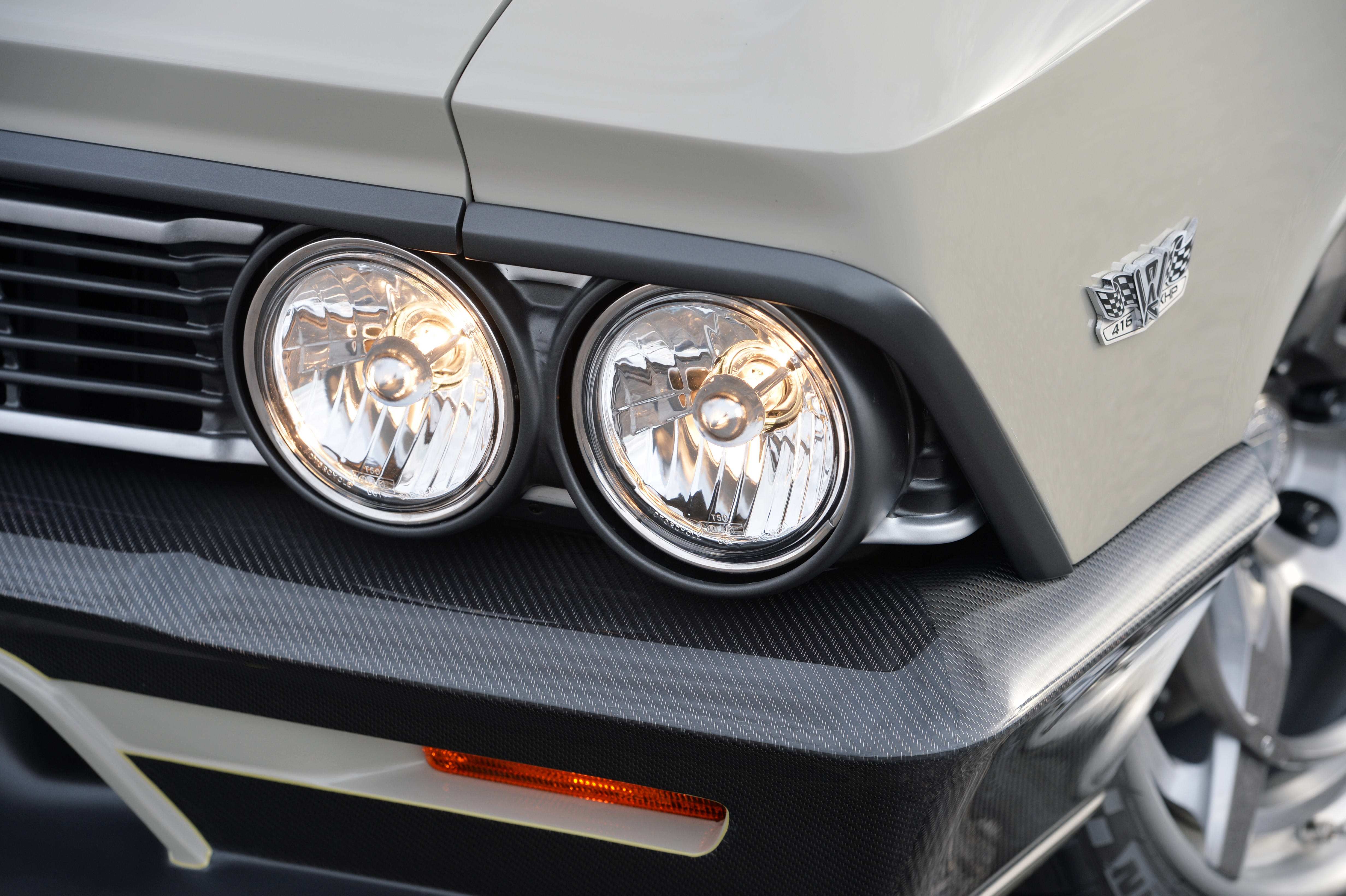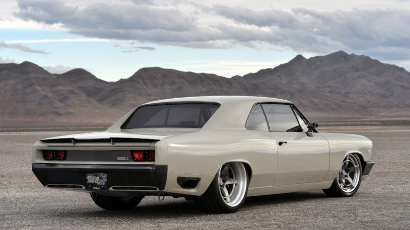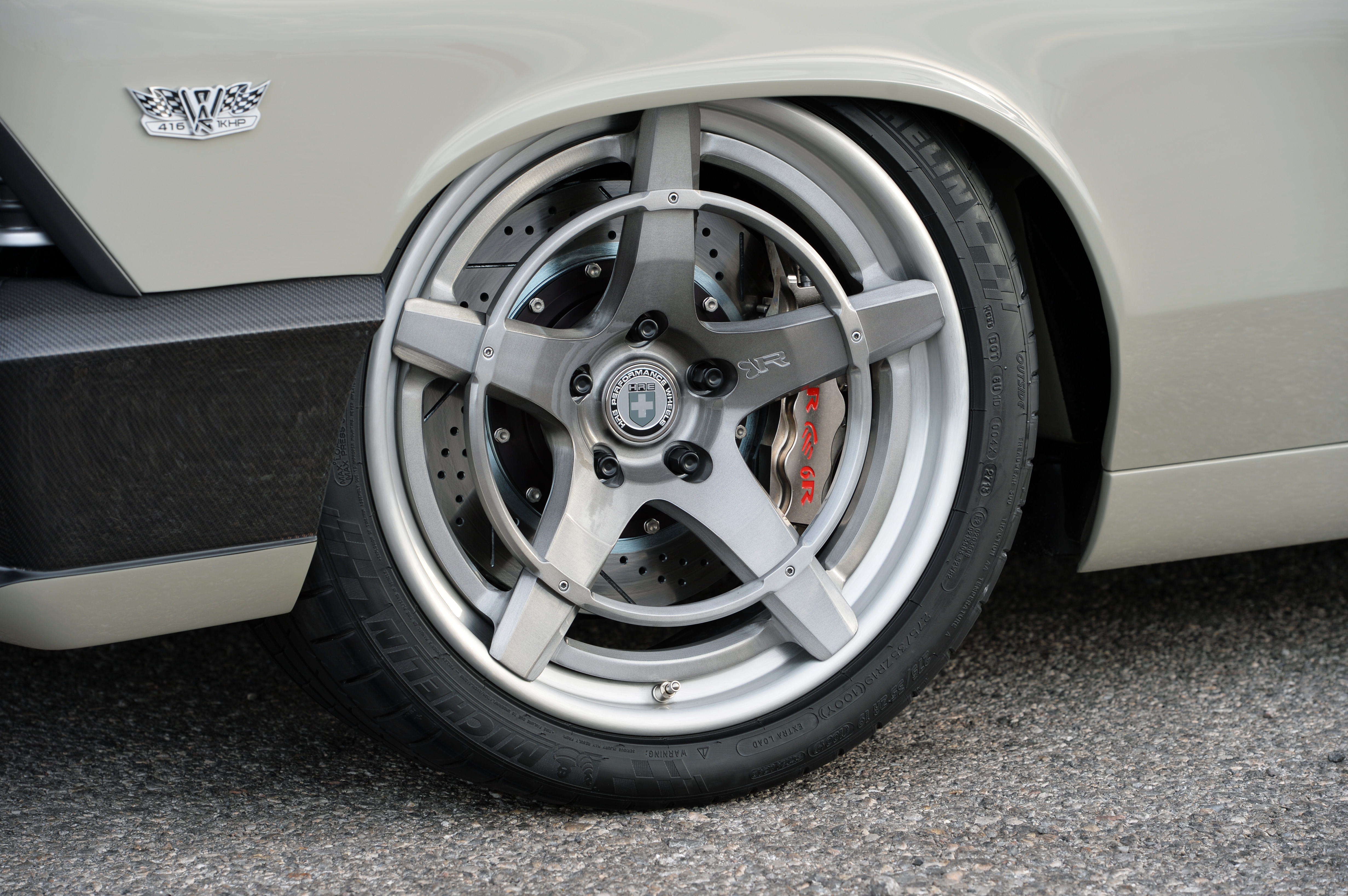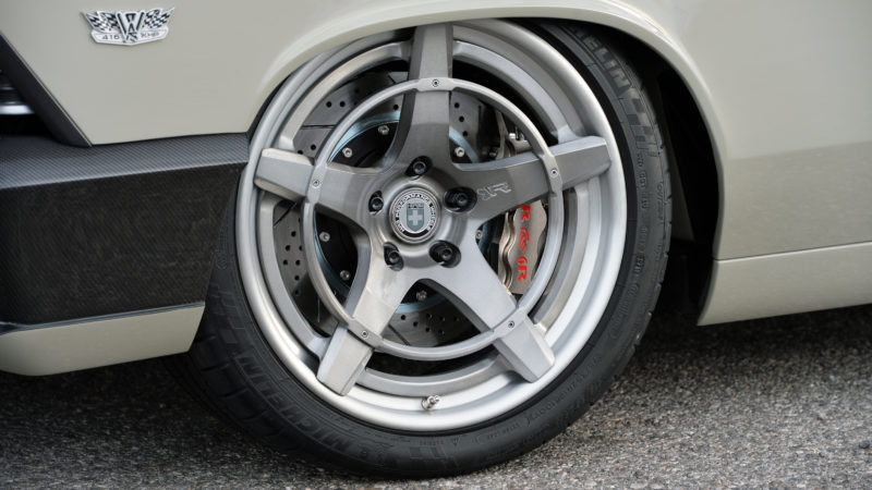 Getting the Chevelle in motion are the brand new three-piece forged wheels called “Recoil,” a new model in the Ringbrothers wheel series from HRE that also made their debut at the SEMA Show. Measuring 19x9 and 20x13, these custom rollers and are shod with 275/35/19 tires up front and massive 345/30/20 tires in the back.