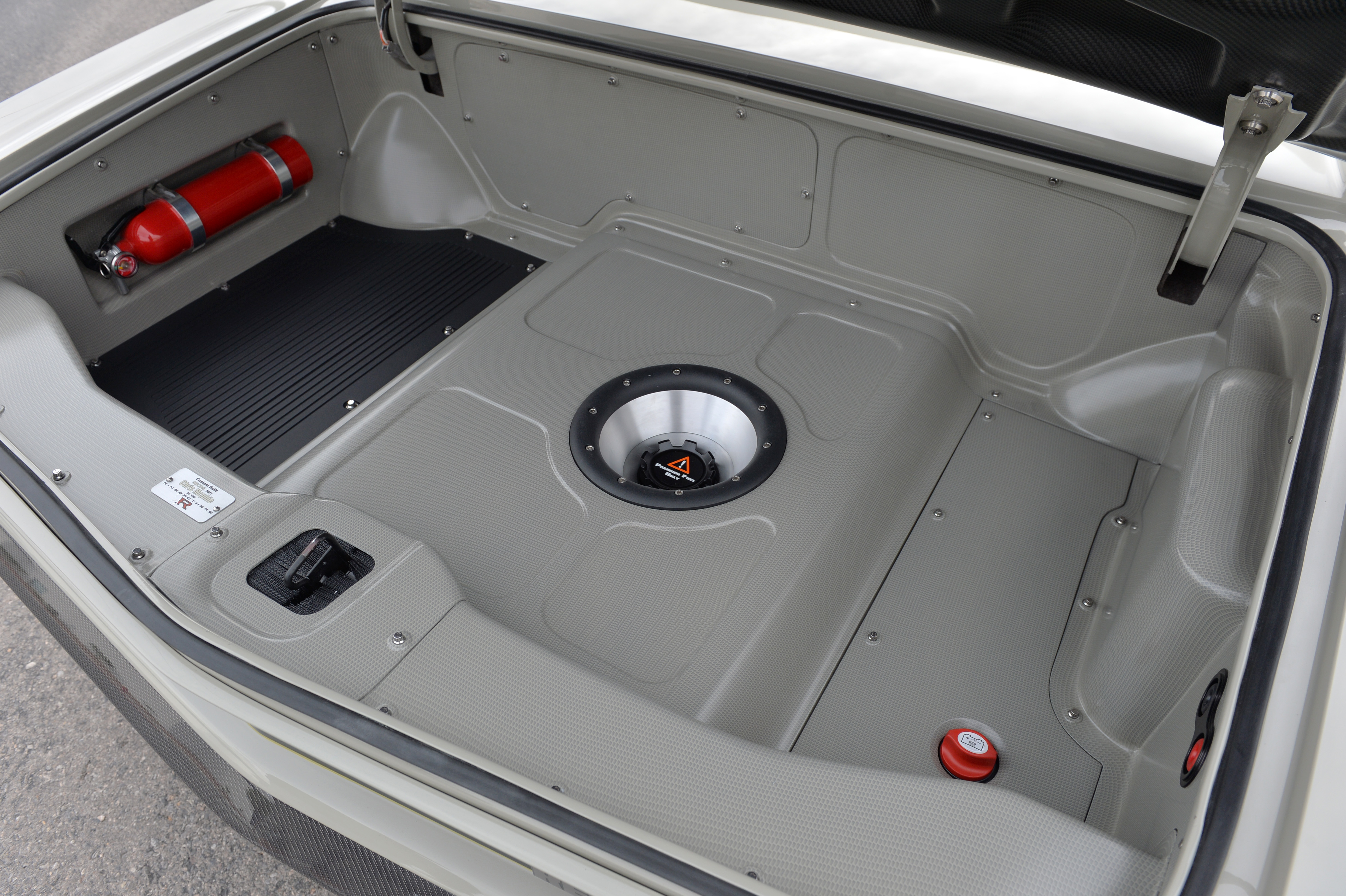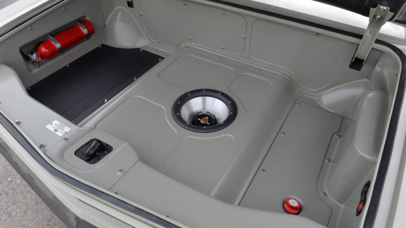“Recoil” gets its muscle from a Whipple-supercharged Wegner Motorsports LS7 engine that outputs an astounding 980 horsepower. Special one-off fuel rail covers were precisely constructed for the Whipple supercharger to exactly match the design of the blower’s case. A Holley Fuel Injection System with an Aeromotive fuel cell and pump were installed to keep the 91 Octane fuel feeding monster powerplant. Flowmaster mufflers enhance the roar of the engine while Royal Purple XPR Extreme Performance Racing Oil keeps the engine running at its maximum potential.