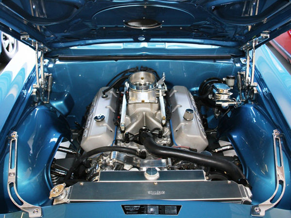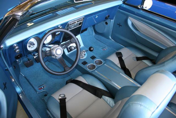 The full custom interior is very tasteful; dare I say that, if you didn’t know better, this office could be mistaken for original equipment in 1967. Upon further scrutiny, the custom console holding billet cup holders, power window switches and a JVC/ Boston Acoustics sound system and bowing to the shifter, you’d know you were looking at an expertly built interior.