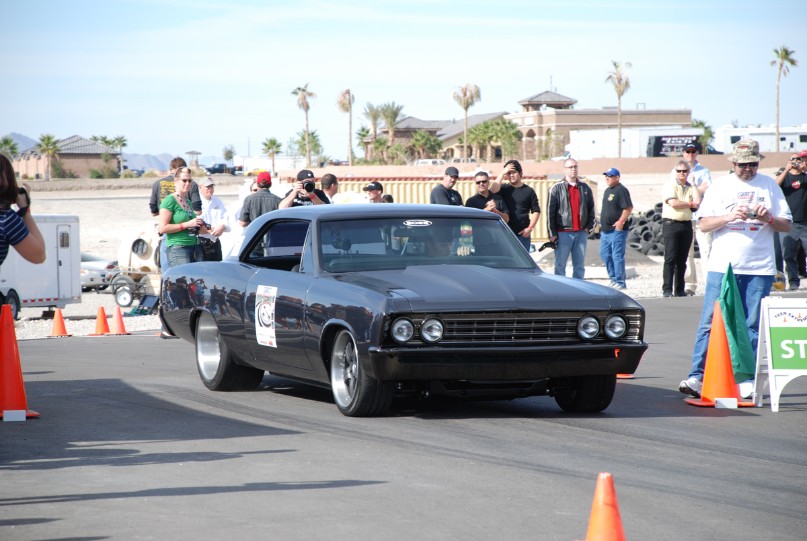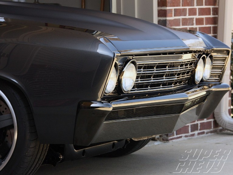 Mr. Shores brought us his Chevelle with a few simple goals in mind…to win Top 25 at the Shades of the Past show, be in a few magazines, and take it to SEMA and hope to get an invite to the Optima Ultimate Street Car Invitational…and he would like for it to be charcoal and him be able to drive it hard. For everything else he told us to use our creative minds and surprise him. We are proud to say all those goals were accomplished along with being invited at SEMA to the first ever HOT ROD Power tour challenge in which the guys from the shop and Mr. Shores drove the car from Newton, Iowa to Mobile, Al. and competed in several different events along the way and were even chosen the winners of the event.