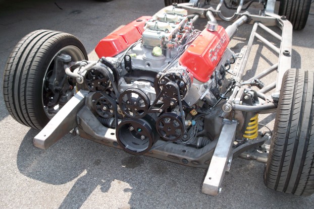 This car is a blast to drive thanks in part to the Roadster Shop chassis, Wilwood brakes, and zz502 crate motor with Barry Grant six shooter intake and carbs. The big block 502 sounds unbelievable thanks to Walker Morgan at Morgan Performance Fabrication for doing the custom 3″ stainless exhaust with outstanding quality in both looks and function. The Tremec TKO performs flawlessly hooked to the Strange 9″ rear end and puts the power to the ground thanks to the BOZE forged 18″ and 20″ wheels wrapped in Michelin Rubber.
