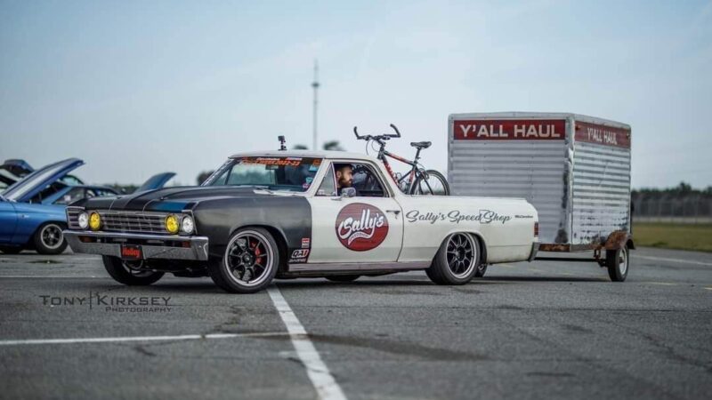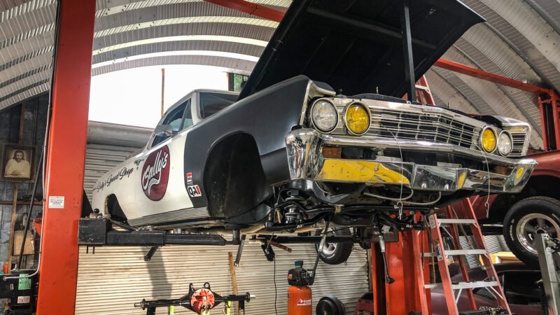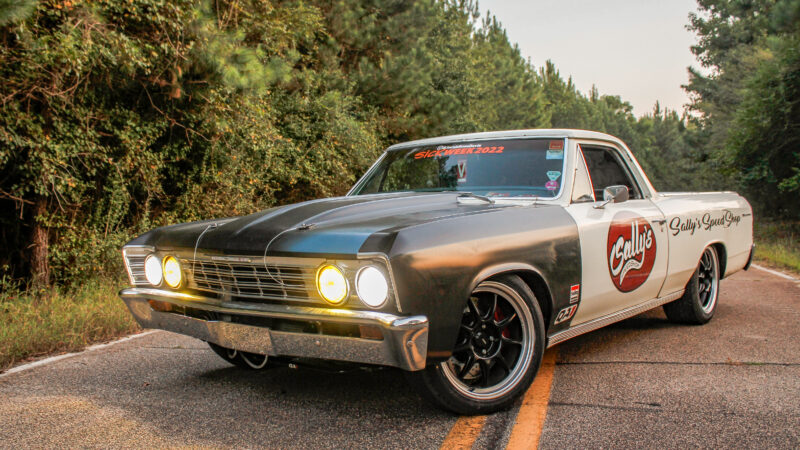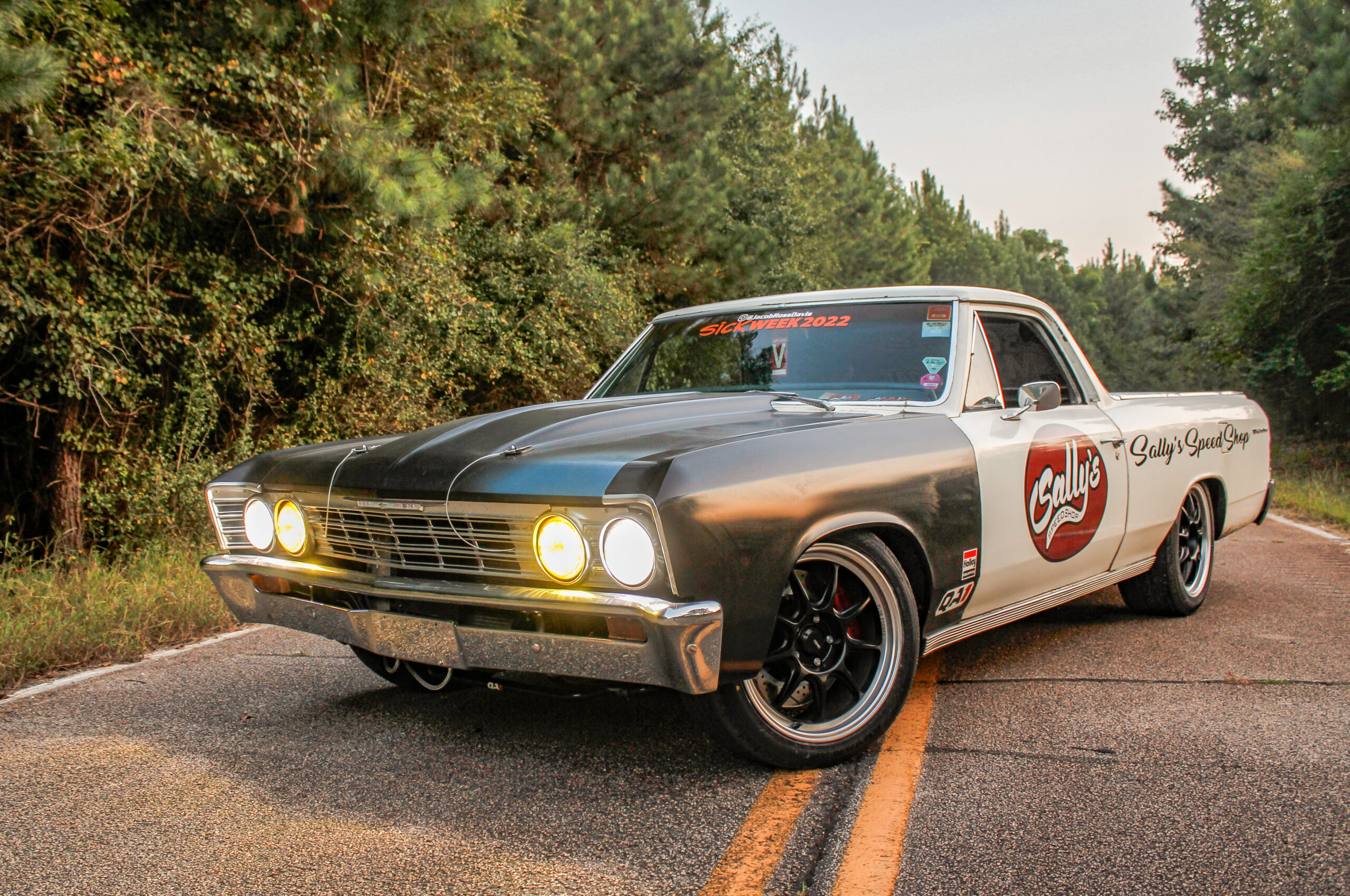 This 1967 El Camino was owned by my good friend Aaron Sellars, owner of Pacific Fabrication (PAC FAB) in San Francisco, who unfortunately passed away in an off road accident. I was able to purchase the car from his family back in 2019 and have made it my goal to keep his memory alive with this vehicle and do all of the things he wanted with it. It was a street/strip style car when I got it powered by a warmed over 283 small block Cehvy, but I have slowly changed it over to a pretty capable pro-touring build that is essentially daily driven. It now has a 500hp 6.0L LQ4 running on Holley Terminator X, a TCI Streetfighter TH350 with a Gear Vendor Overdrive mated to the back of it, full level 3 QA1 suspension with double adjustable coilovers on all four corners, Baer Brakes 6 piston brakes all the way around, 18" Konig Wheels, and a full floater 9" rear end with 3.89 gears and a PowerTrax differential.