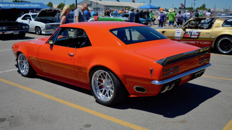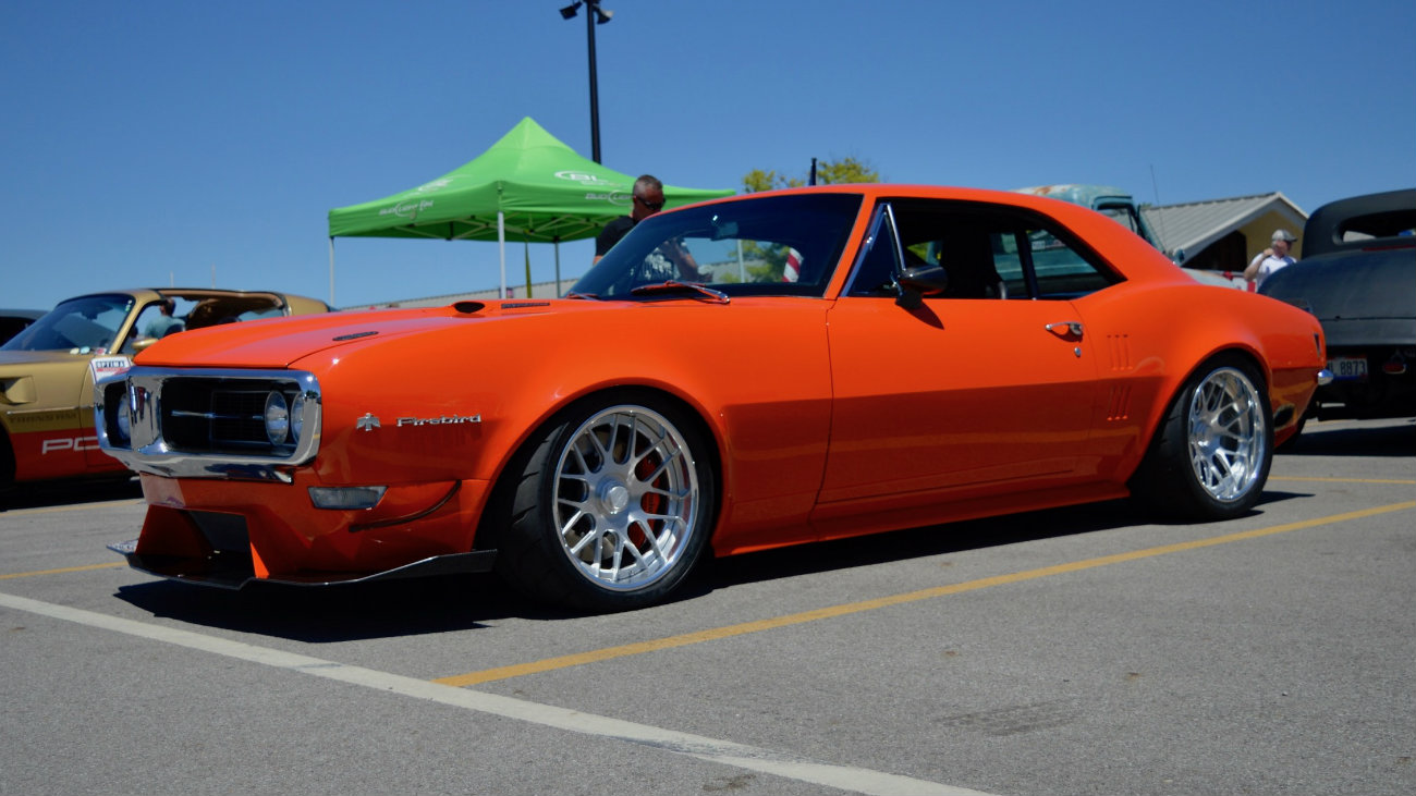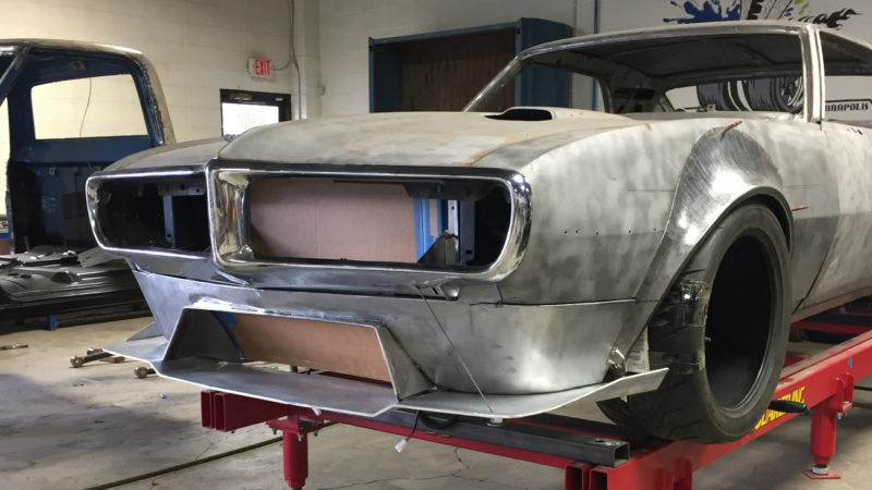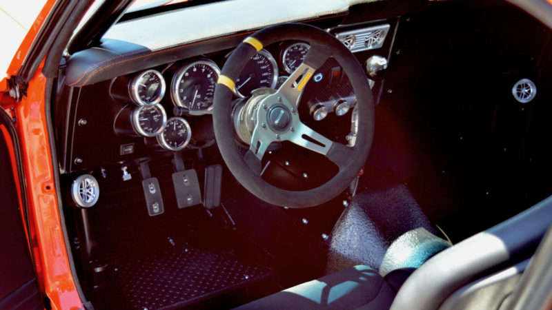 This as a 1967 Firebird body that sits on a Roadstershop Fast Track chassis with cantilever independent rear suspension. Its powered by a Lingenfelter built GM LSA with a Kenne Bell supercharger that produces 901HP and 867 Ft/LBS of torque. The power is transmitted through an EMCO DV46 sequential 6-speed gearbox and has manual shift without lift for wide open shifting. Power gets to the ground through Forgeline DE3C wheels and Toyo R888 tires. The car is brought to a rapid halt by Baer 6 piston Extreme+ brakes front and rear with r-spec rotors.