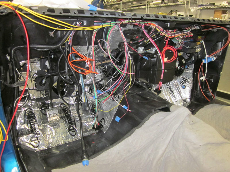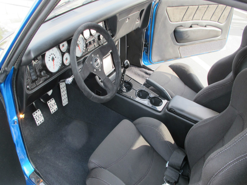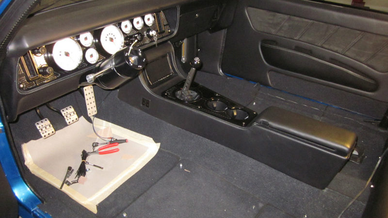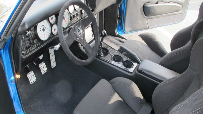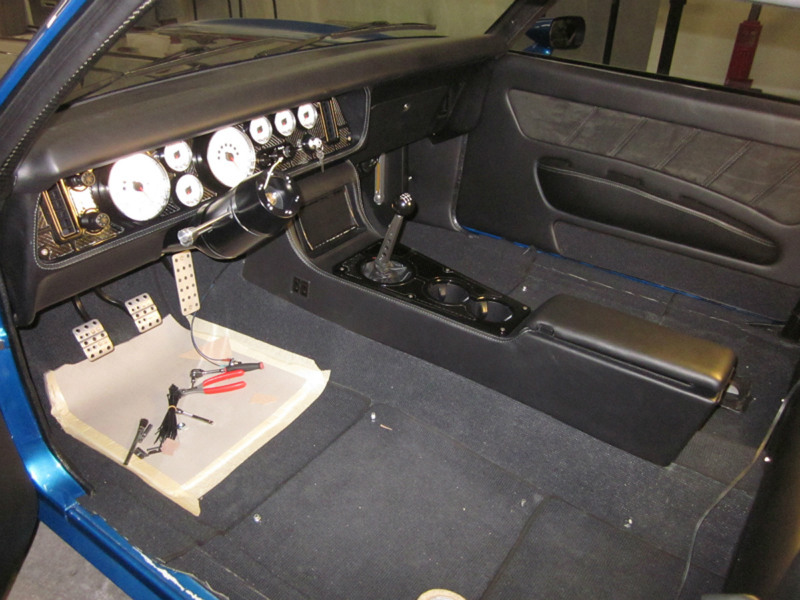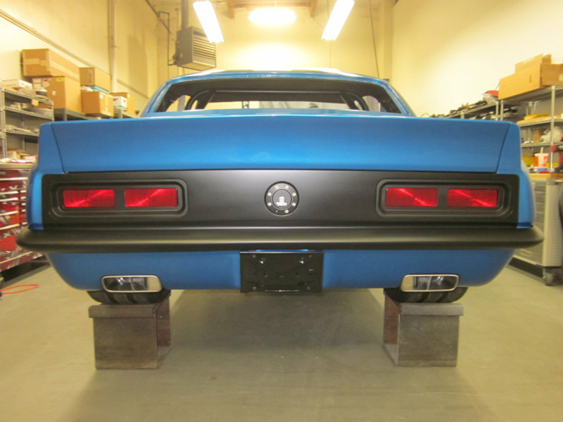 Overall views of the Camaro aptly illustrate the benefits of being fat. Cris’s superbly hogged-out wheelwells are perfectly aligned and arched and lend immediacy and vibrancy to the overall silhouette. Aside from the considerable work to build the fat fenders, JCG smoothed out the sheet metal, removed the front bumper and got down with the D-rings, the carbon-fiber spoiler, understated JCG grille, and the featherweight Anvil carbon-fiber hood. They also erased the side marker lights, flushed-mounted the taillights, integrated one of their rolled pans and worked the rear bumper accordingly. Pacific Coast Powder Coating in Palmdale, California, surely did its best to produce contrast where it was needed. Finally, they finished the exterior off with PPG Corvette Jet Stream Blue. And any male knows what the name implies and how one arrives at that often-painful state. Steven Rupp put the two together—the frustration from waiting with the blue Camaro—and the name was born.