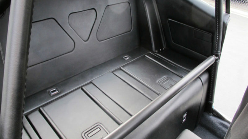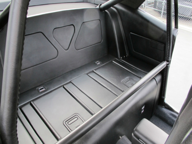 Moving into the comfort zone, we find black subdue, the work of Eric Thorsen who works out of nearby Agoura Hills, California. Thorsen leathered-up the door and side panels and finished off the storage compartment and the access lids where the rear seat once squatted. Aside from air conditioning, the only other blatant creature comfort is the Kenwood head (with DVD player), the Focal 5½-inch front and 6 x 9 rear speakers. Sparco seats stand tall, accompanied by four-point Sparco belts. JCG built a custom dash panel with a second-gen Trans Am flavor to it, and the billet dash insert holds a complement of ProParts Spek gauges. JCG finished the tableau with a custom billet center console. The big round thing on the adjustable steering column is a Sparco item; the shifter is part of the Tremec conversion.