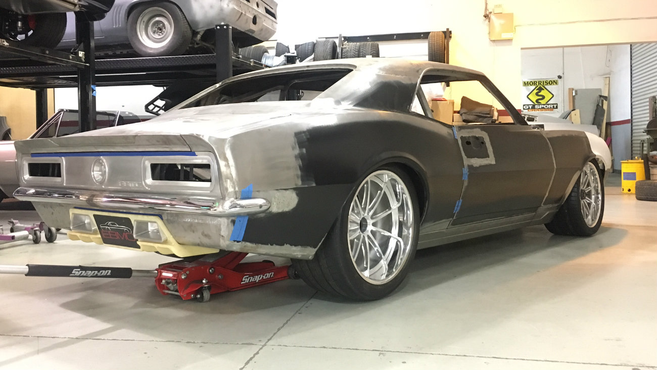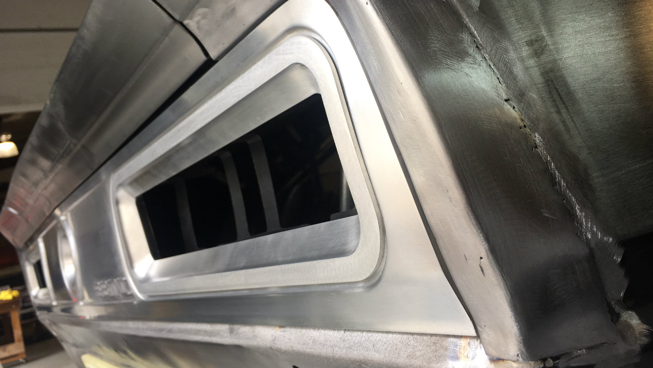 - East Bay Muscle Cars | EBMC - Builder, Whole car has been widened an average of 5”, Recontoured rocker panels and quarter panels, Custom cowl, a pillars and countered drip rails, Custom hood design and heat extractor, Lengthened and recontoured header panel, Designed all Billet grill assembly with linear actuated headlight door, Custom lower valance with 3D printed grills and 3D printed lower spoilers, Flush mount glass, All billet tail lamp panel, Rear diffuser machined from ABS, Integrated rear spoiler