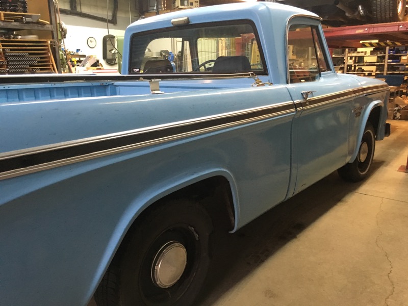 I'd be exaggerating if I said I asked him about it every appointment, but it was probably close! I gave it a break recently (for a few visits anyways), and then out of the blue he asked if I was still interested! I'd been asking for so long that I wasn't sure if he was joking, but he had recently sold his farm and didn't have the same amount of space to store stuff like pickup trucks. A few nights later, I went down to have a look. I had a few items on my mental checklist... good interior, decent body, good frame. I didn't want to do any interior work, zero body/paint work, and the frame had to be good because I was going to be installing our chassis parts and I needed a good foundation. A bonus was that someone had installed a 318 at some point, and once it had a bit of gas in the tank it fired up and ran great.