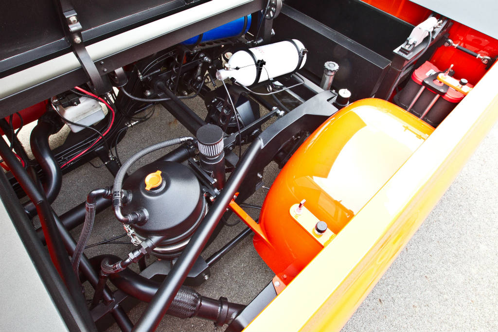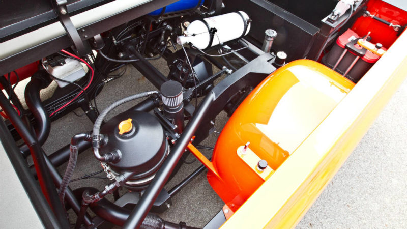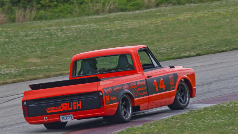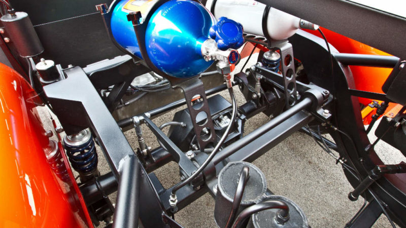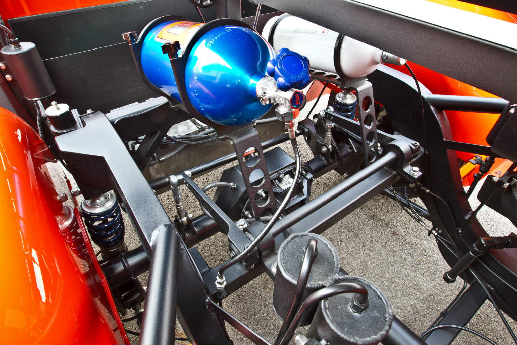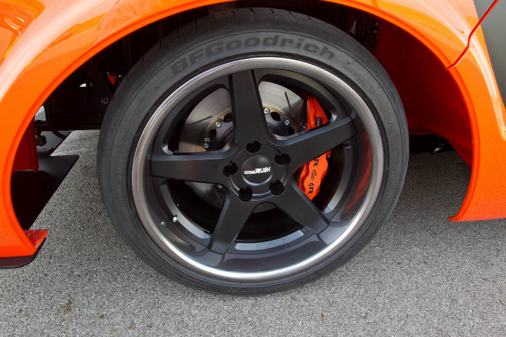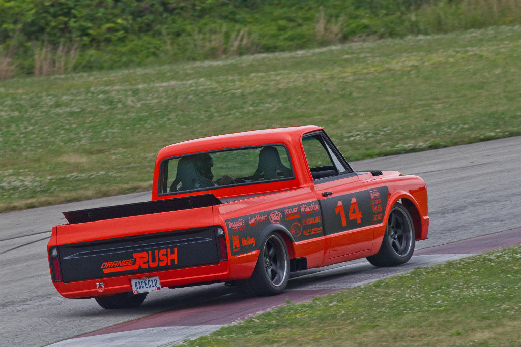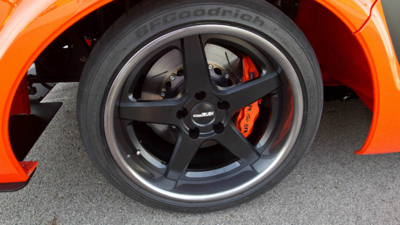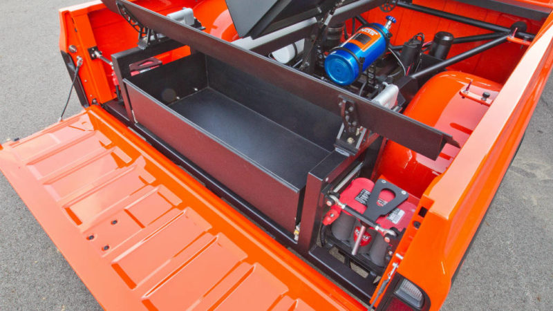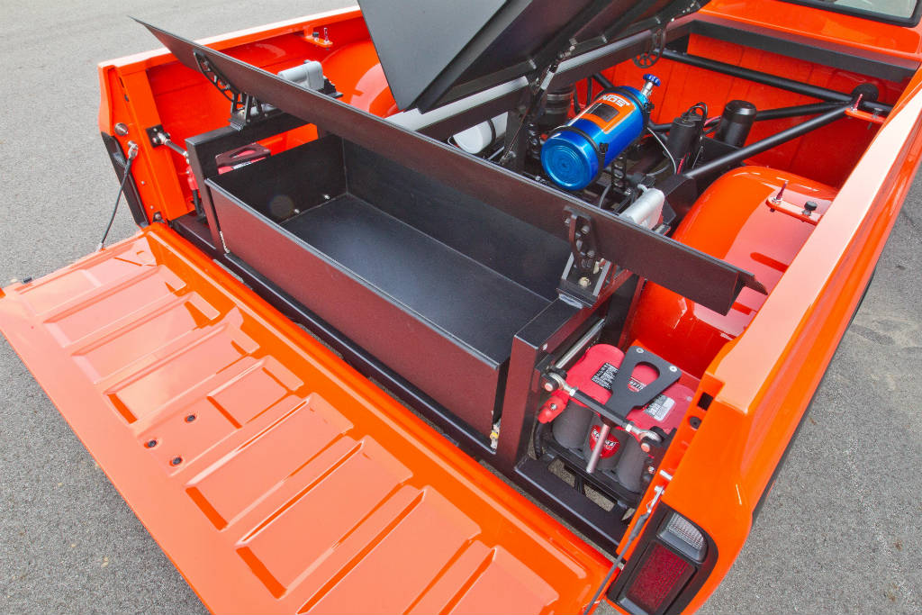 Bob's '69 Chevy C10 pickup is known as "Orange Rush". It's powered by a 648HP 427ci LS7 built by Kurt Urban Performance with a Bowler-prepped Tremec T56 Magnum transmission. It rides on a complete Detroit Speed suspension (including their X595 cross member, control arms & spindles) in the front and Detroit Speed Quadra Link in the rear. His JRi coilovers feature their hydraulic lift function (which allows the static ride height to be adjusted at the touch of a button for easier trailer loading or jack/lift access). His Baer brakes consist of Baer's 6-piston 6R calipers and 14-inch rotors. And his Falken Azenis tires (315/30R18) are wrapped around 18x11 and 18x12.5 Forgeline CF3C wheels finished with Satin Black centers and Transparent Smoke outers.
