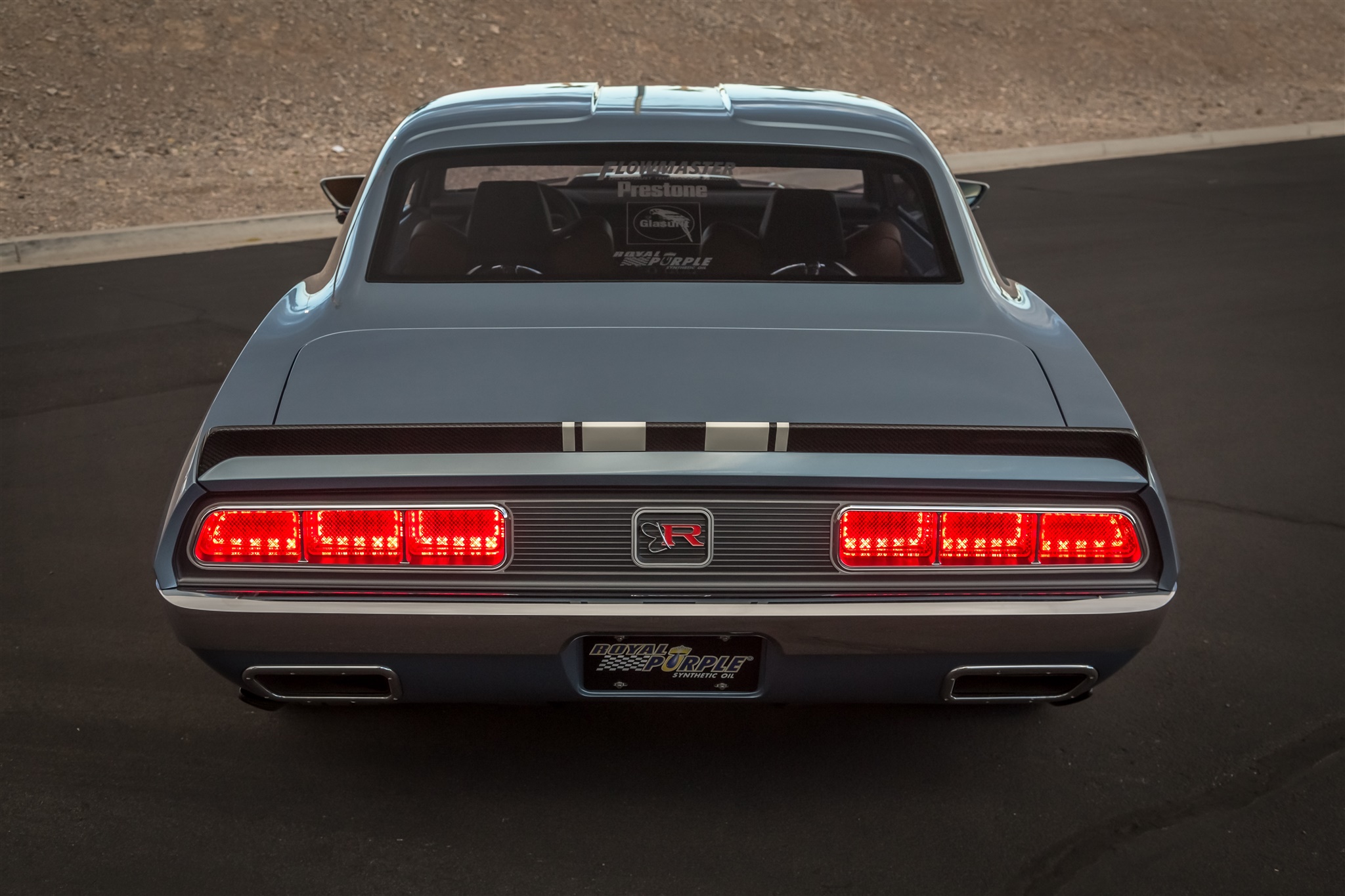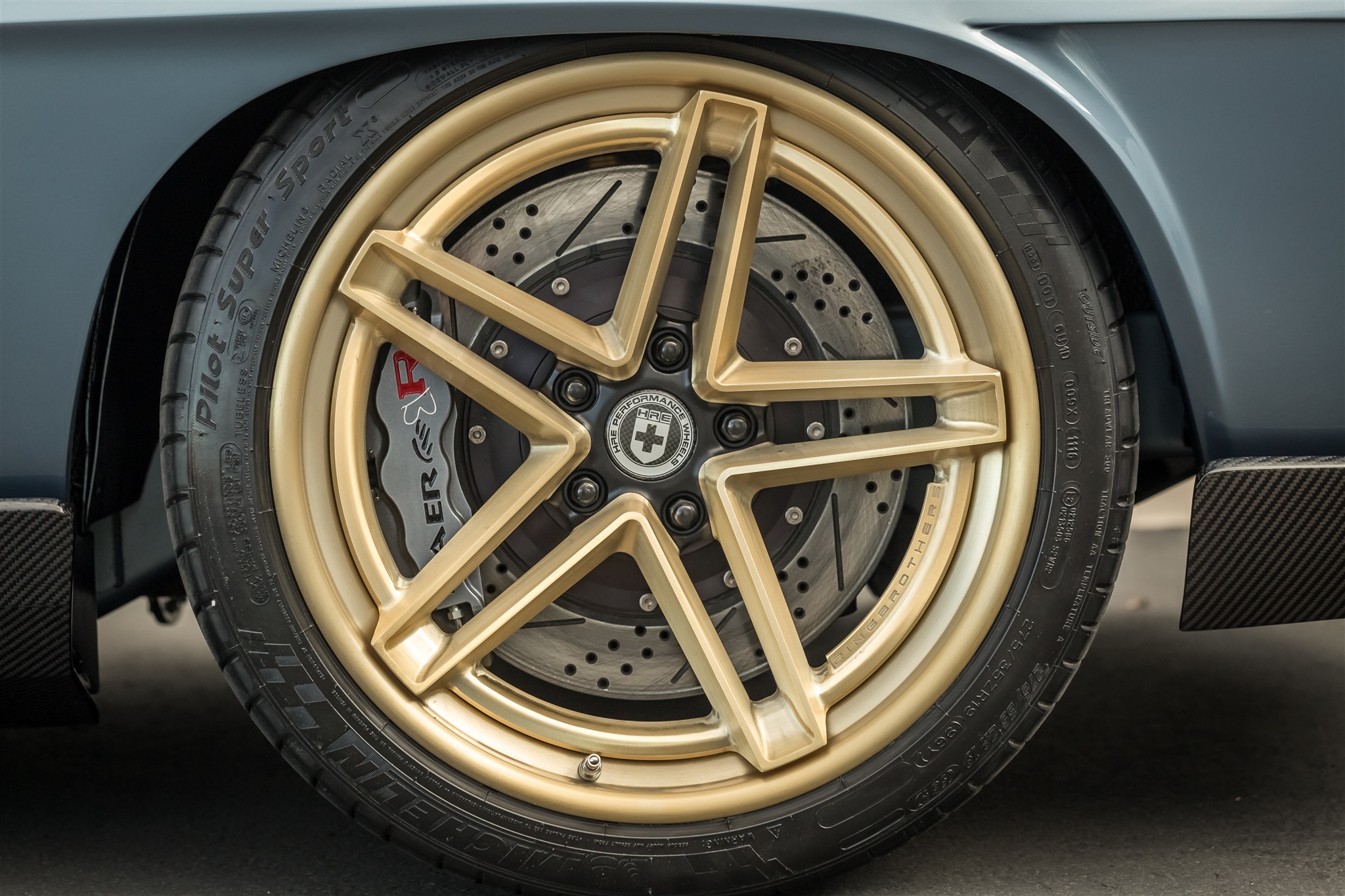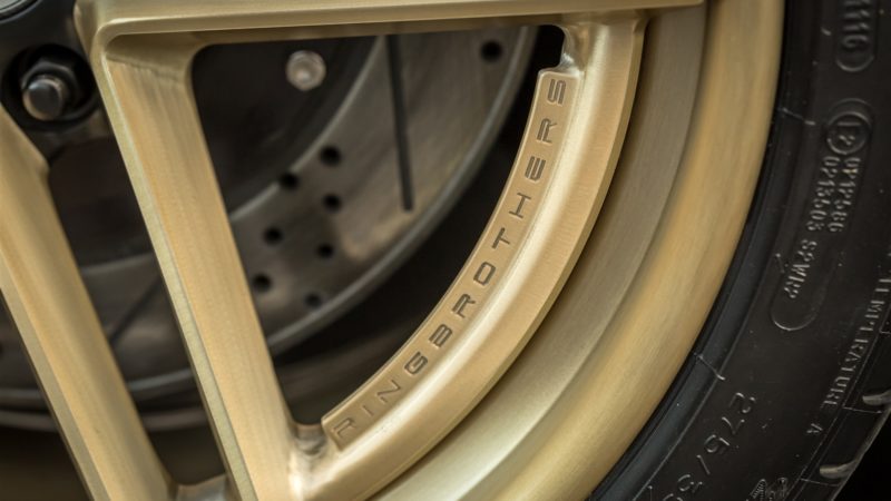 But “G-Code” isn’t all about straight-line speed. To make sure the car was equally as adept at going around a corner, Mike and Jim Ring used a Detroit Speed full suspension setup including a Hydro Form front clip and Quadra-Link rear with AFCO shocks on all four corners. To bring “G-Code” down from triple-digit speeds, massive Baer Brakes six-pot calipers were installed at all four corners with 15-inch rotors in the front and 14-inch rotors in the rear. The Rings worked with the folks at HRE Performance Wheels in California to design a custom set of forged wheels sized at 19x10 in the front an 20x13 at the rear, inspired by the IROC-Z Camaro wheels of the ‘80's and wrapped them in Michelin Pilot Super Sport tires measuring 275/35/19 up front and 335/30/20 out back.