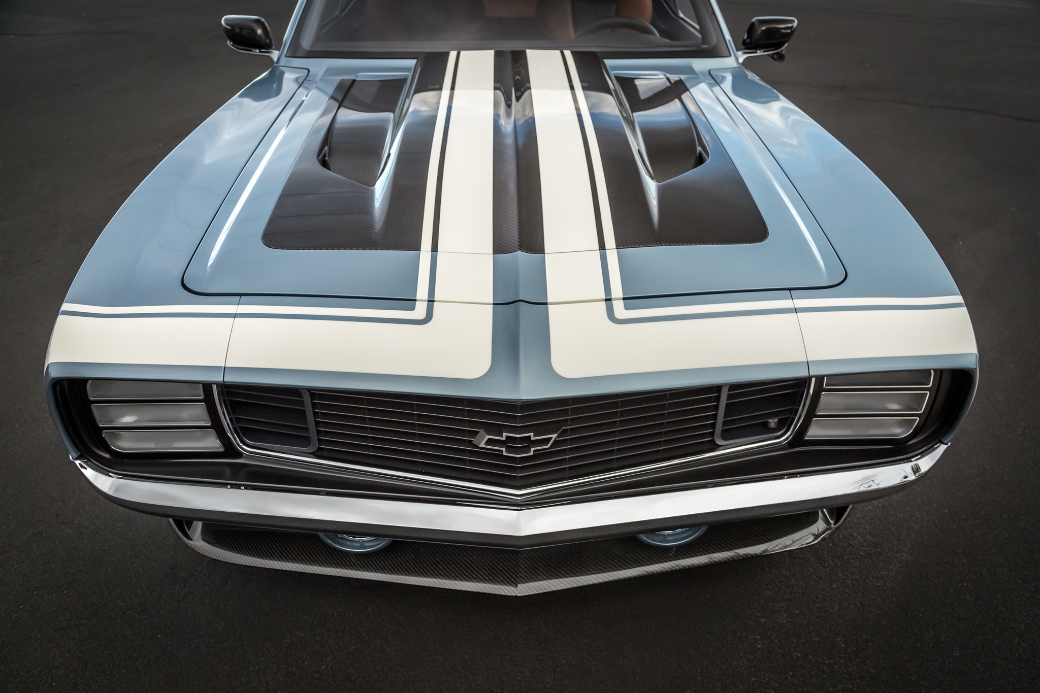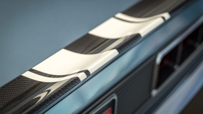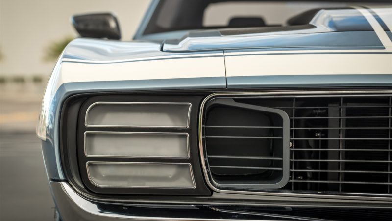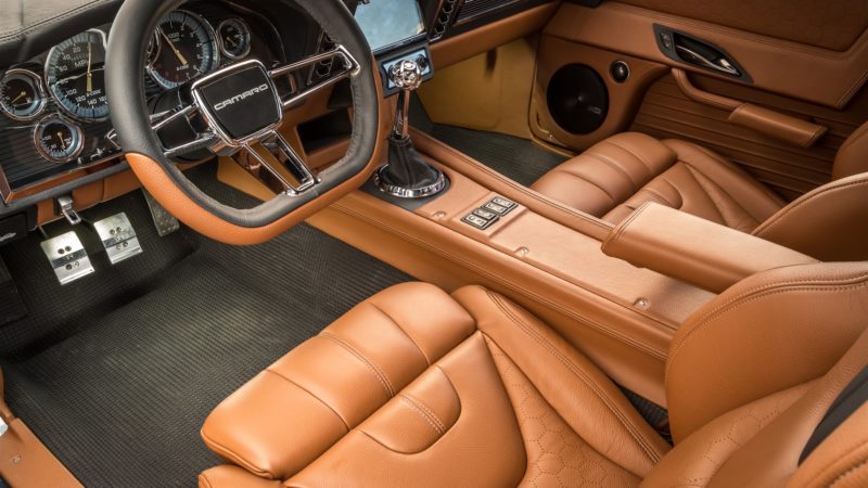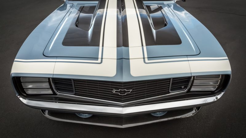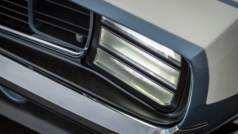 Ringbrothers walked a tight rope with the body of the “G-Code” Camaro. Mike and Jim Ring wanted to stay within the confines of what makes a ’69 Camaro a ’69 Camaro, but also wanted to push the boundaries of style to make the car stand apart. Every part of the car was customized including the bumpers and the grille, while the hood was crafted using hand-laid carbon fiber. To highlight the body work, “G-Code” was coated in a custom BASF Glasurit hue named “Blue Print.”