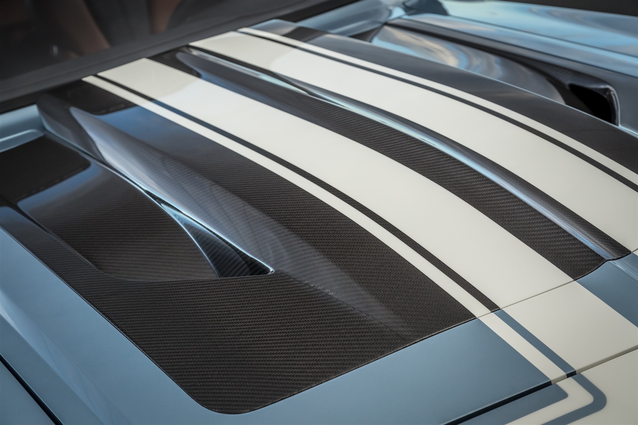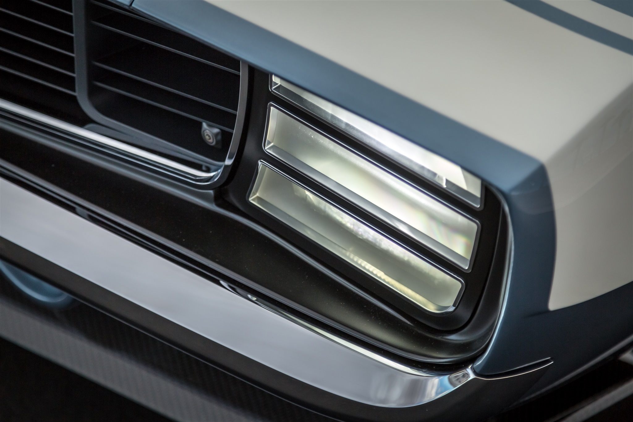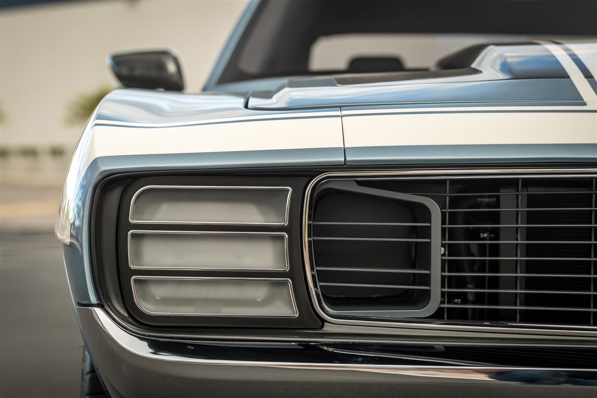 Ringbrothers walked a tight rope with the body of the “G-Code” Camaro. Mike and Jim Ring wanted to stay within the confines of what makes a ’69 Camaro a ’69 Camaro, but also wanted to push the boundaries of style to make the car stand apart. Every part of the car was customized including the bumpers and the grille, while the hood was crafted using hand-laid carbon fiber. To highlight the body work, “G-Code” was coated in a custom BASF Glasurit hue named “Blue Print.”