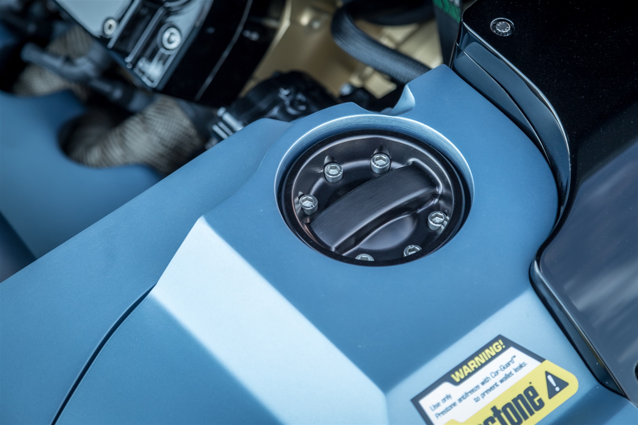 “G-Code’s” transformation began with the power plant – an LS3 motor from Chevrolet. Wegner Automotive beefed up the horsepower with a Whipper Supercharger and an increase in displacement to 416 cubic inches, bringing the output up to nearly 1,000 hp. All those ponies are then sent through a Bowler-built Tremec six-speed transmission and a Centerforce Clutch. The engine is kept cool with help from Prestone coolant and everything from the motor to the transmission are running at peak condition thanks to lubricants from Royal Purple. Exhaust is expelled though a set of custom headers designed by Ringbrothers and then into the custom Flowmaster stainless steel exhaust system.
