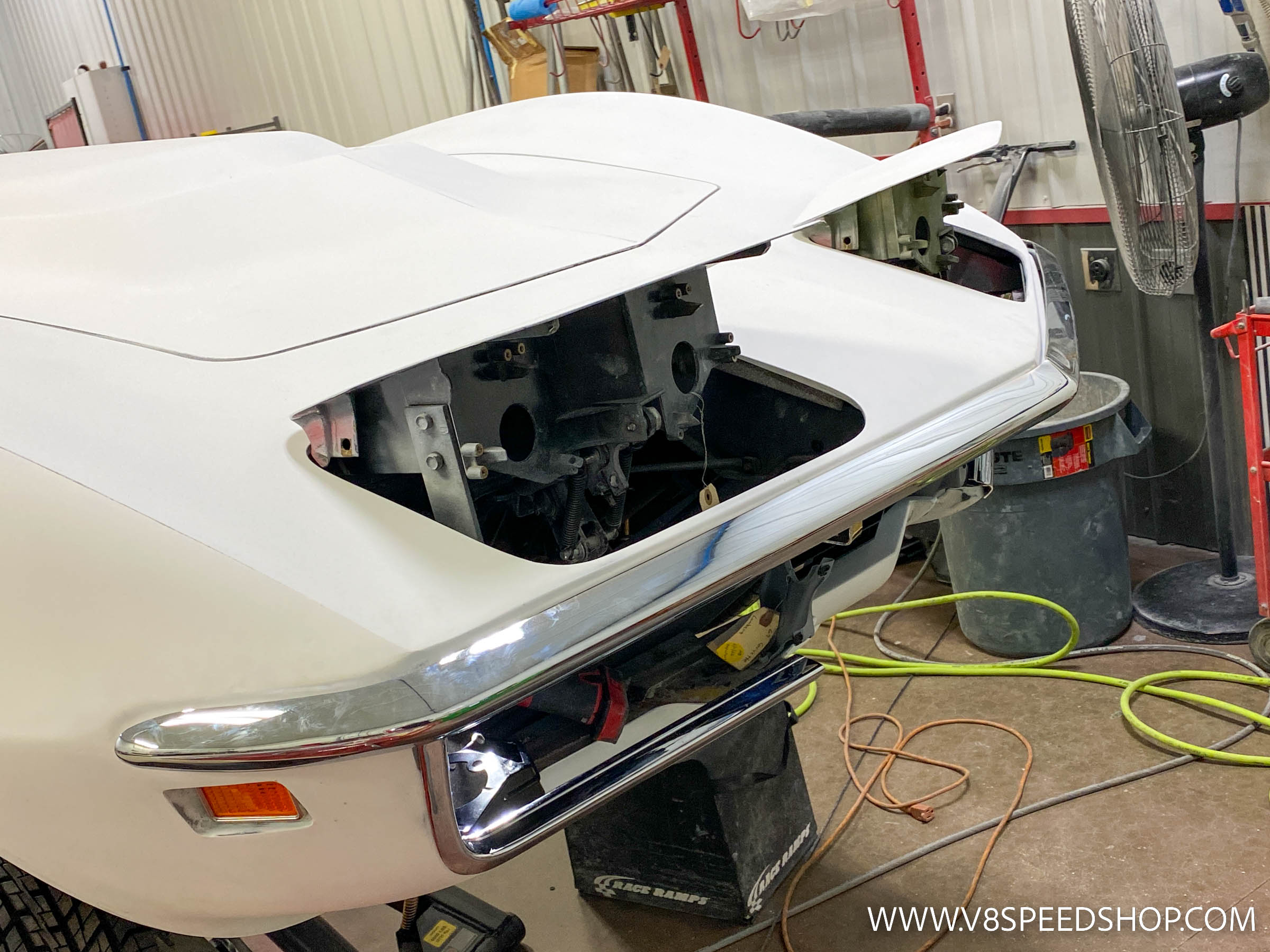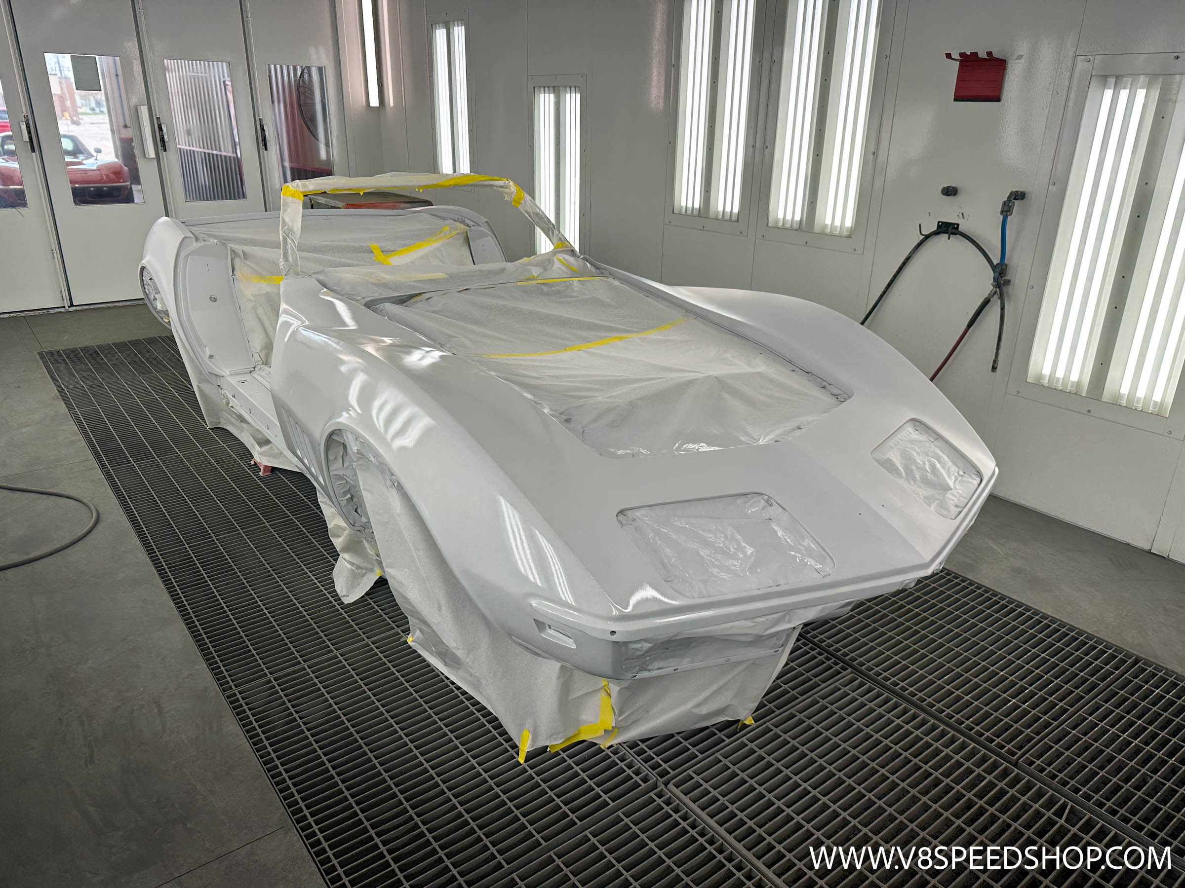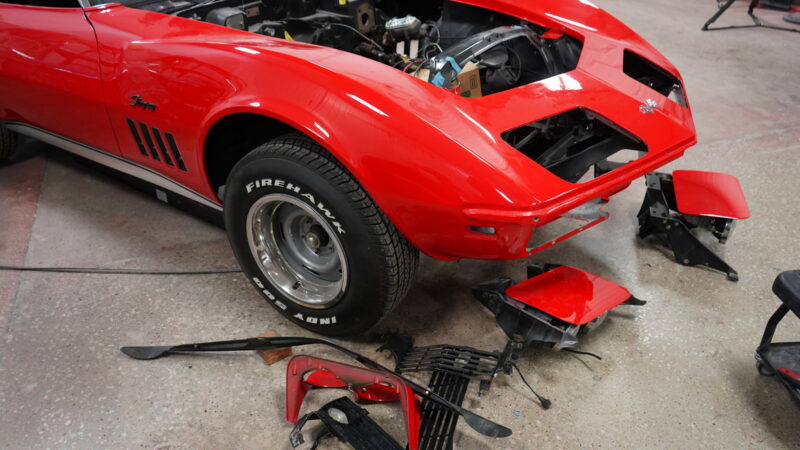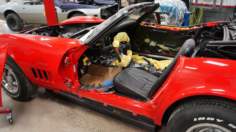 - Arrow-Straight Bodywork: The Corvette’s fiberglass body construction requires special techniques to repair and refinish, and the V8 Speed and Resto Shop performed extensive repairs and refinements to the body to improve fit and finish.