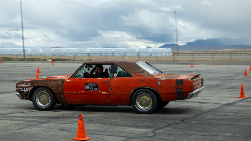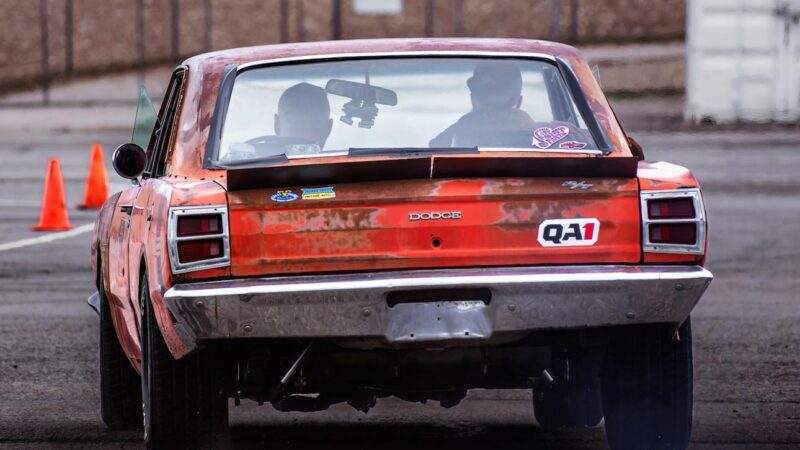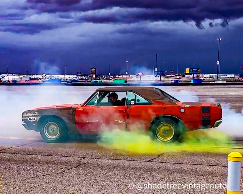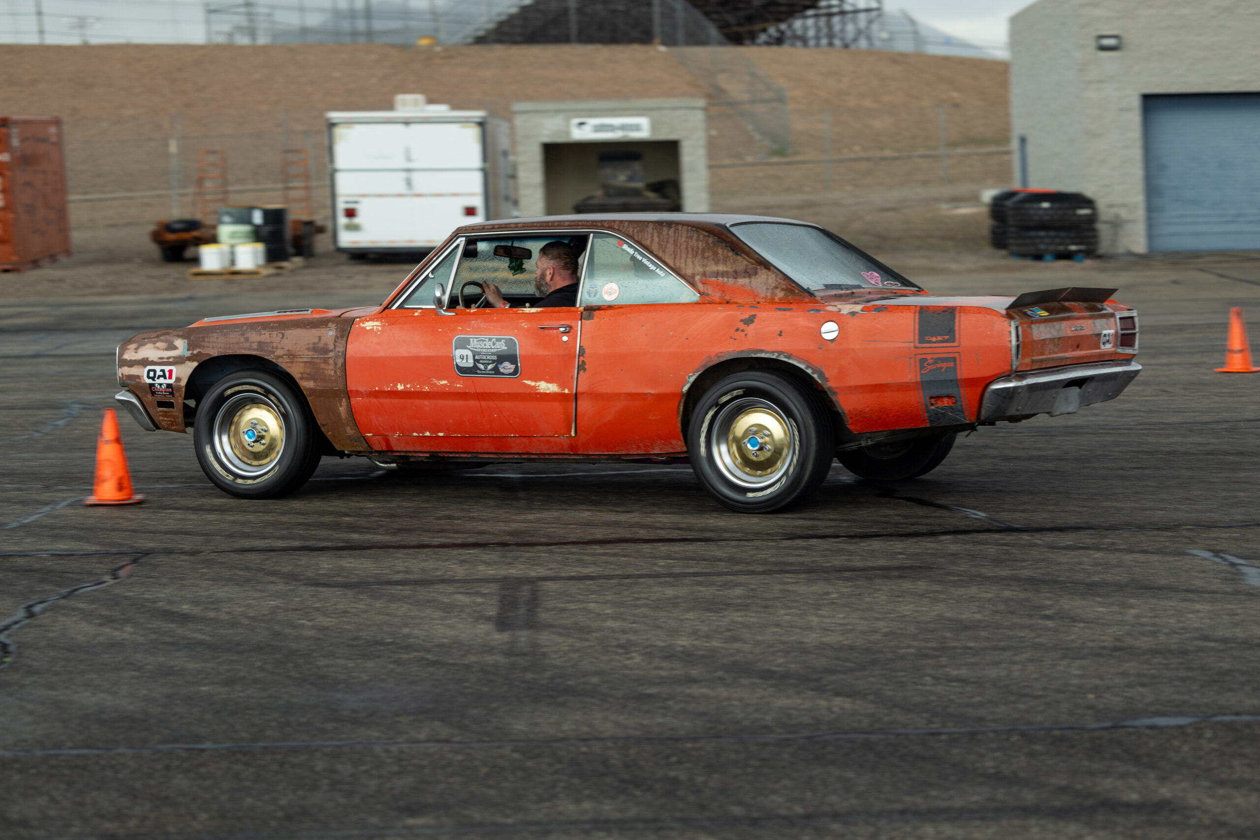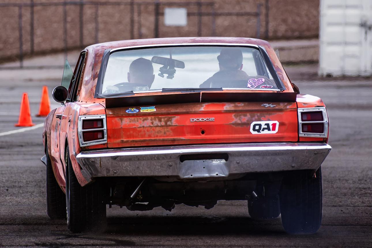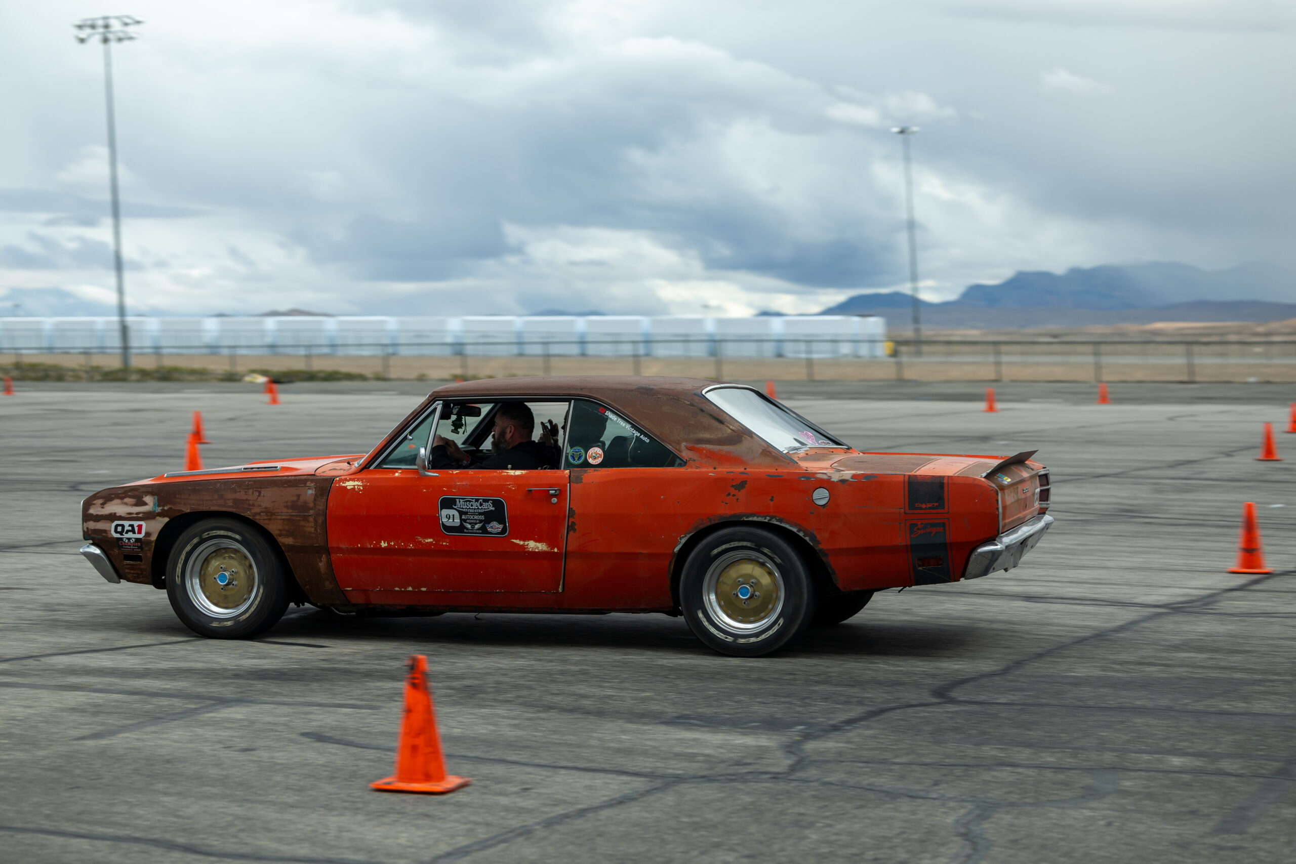 This is the #ducttapedart 2.0. It is a junk yard found 1969 Dodge Dart Swinger 340 that was equipped with a 4spd. We threw this car together in less than three months to compete in an Jalopy Auto Cross event at MuscleCars At The Strip in Las Vegas. The car had a 340 and a 4spd that remained relatively stock for the event, but now things are changing and it is getting a new 340 with a six pack and a fully rebuilt 4spd. It has QA1 upper and lower control arms, QA1 adjustable Shocks, Hotchkis rear leafs, Addco sway bars, and all new brakes. The car is built to handle around the track and will be soon getting Borgsan Power Steering.