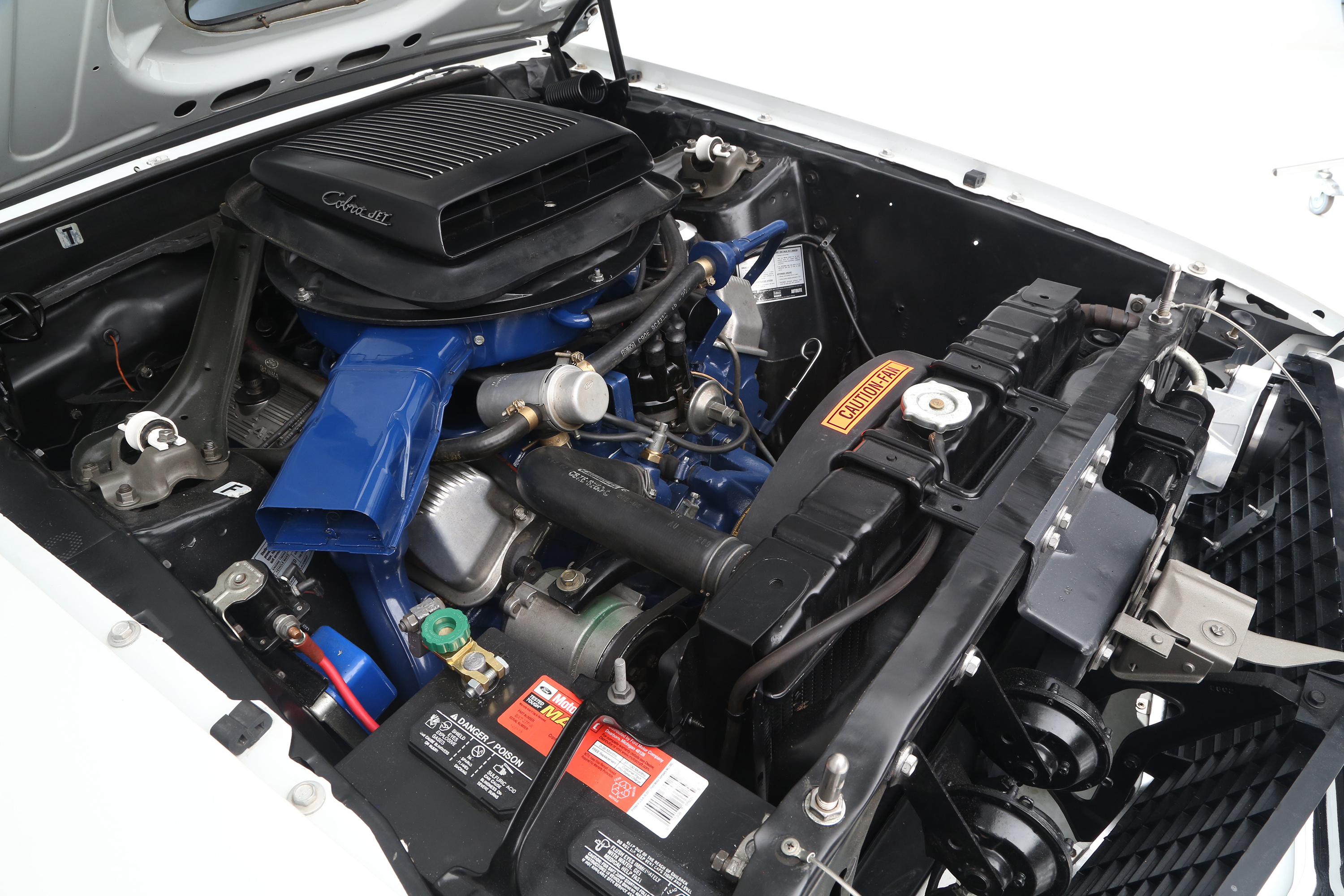 The 428 Cobrajet “Ram-Air” Engine was a highly competitive performance option, including a “Ram-Air” induction system, dual exhausts, competition suspension, performance gear ratio, extra cooling package and engine dress up including cast aluminum rocker covers and Cobra Jet hood identification.