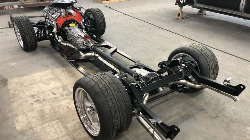We wanted to completely redesign every aspect of the car that wasn’t up to 2019 standards but keep the look of the car on the exterior, interior and even the engine compartment looking factory stock. We started with the chassis. The 1969 Camaro was a unibody subframe design with much to be desired in handling and ride quality. We teamed up with the Roadster Shop in Mundelein, IL and used one of their full SPEC Chassis. This gave the car a full bolt on chassis with modern drivetrain mounts, big 14” six piston Baer brakes, stainless brake and fuel lines, rack and pinion steering, sway bars etc. in order to make the 1969 car ride like 2019.