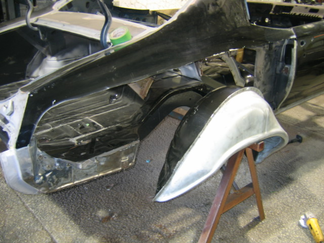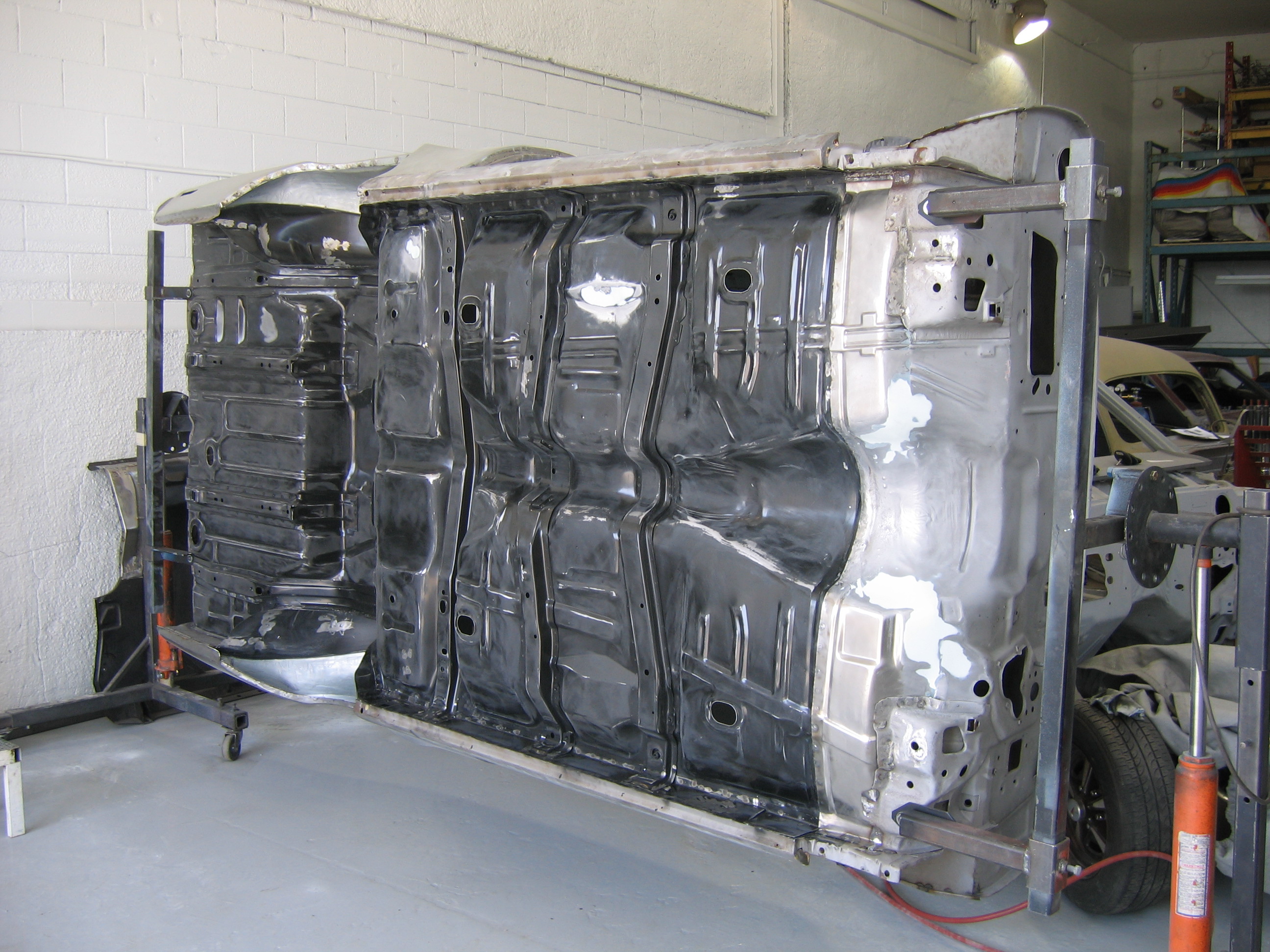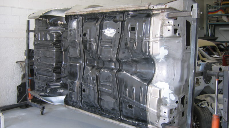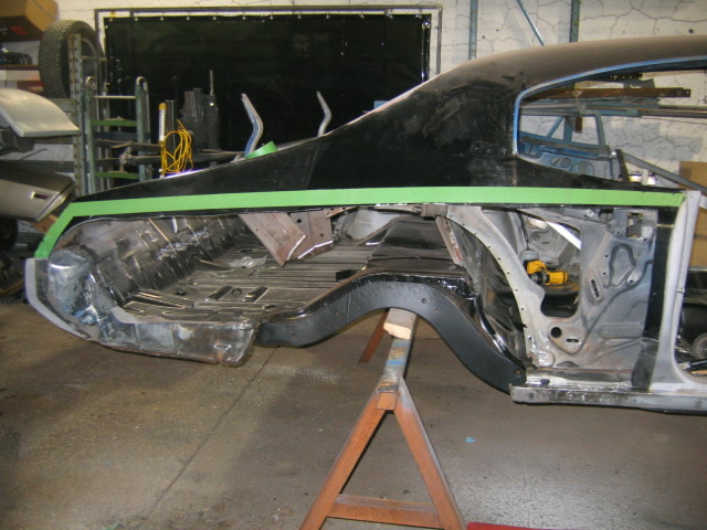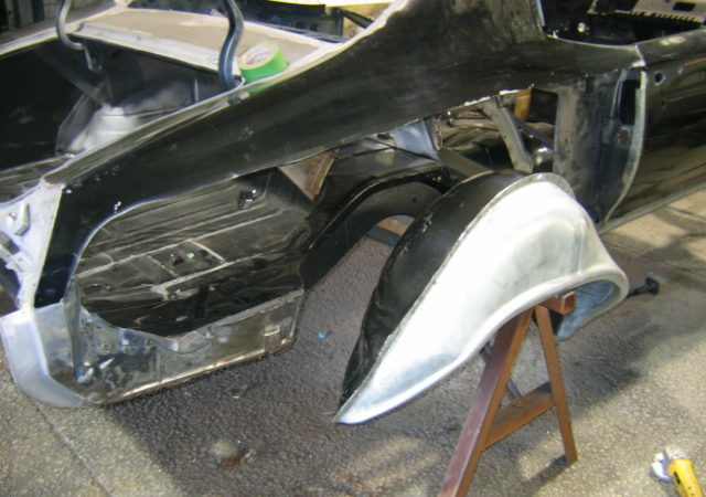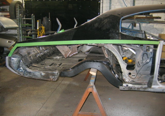 All of the sheet metal for this car needed an incredible amount of attention. The main floor and entire trunk was replaced with Dynacorn 1970 Chevelle pieces. The trunk was modified at the rear for the Buick. The wheelhouses where replaced with parts purchased from The Parts Place. Quarter panels where a standard replacement skin, but added onto to make full lower quarters. The front clip was sourced from southern yards to find all those good hard to find rust free body panels.