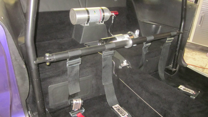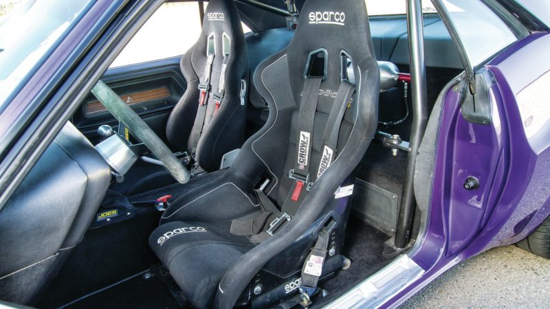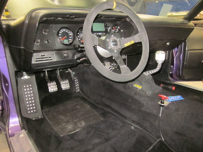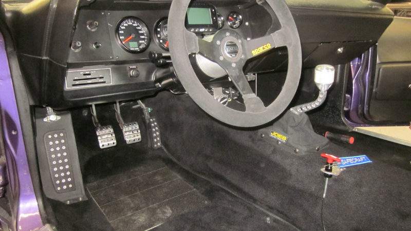 Wilwood Disc Brakes provide the stopping power and Michelin Pilot Super Sport tires (305/30ZR19 & 345/30ZR19) wrapped around Forgeline ZX3R wheels (19×11 & 19×12) provide plenty of grip. The hood, trunk and bumpers are supplied by ARR Fiberglass and Plum Crazy is responsible for the deep purple finish. Inside the cab a Sparco steering wheel and seats keep the driver comfortable and in control while Speed Hut Gauges with Aim Sports data acquisition keeping tabs on all the vitals.