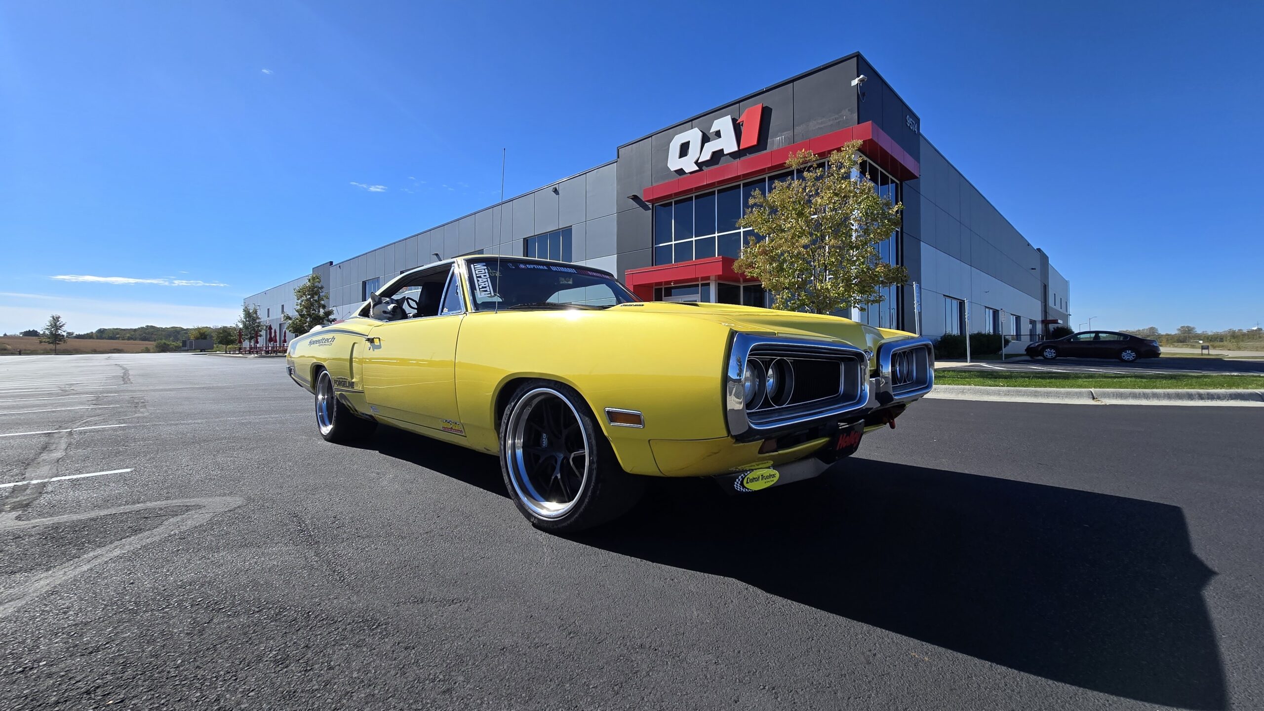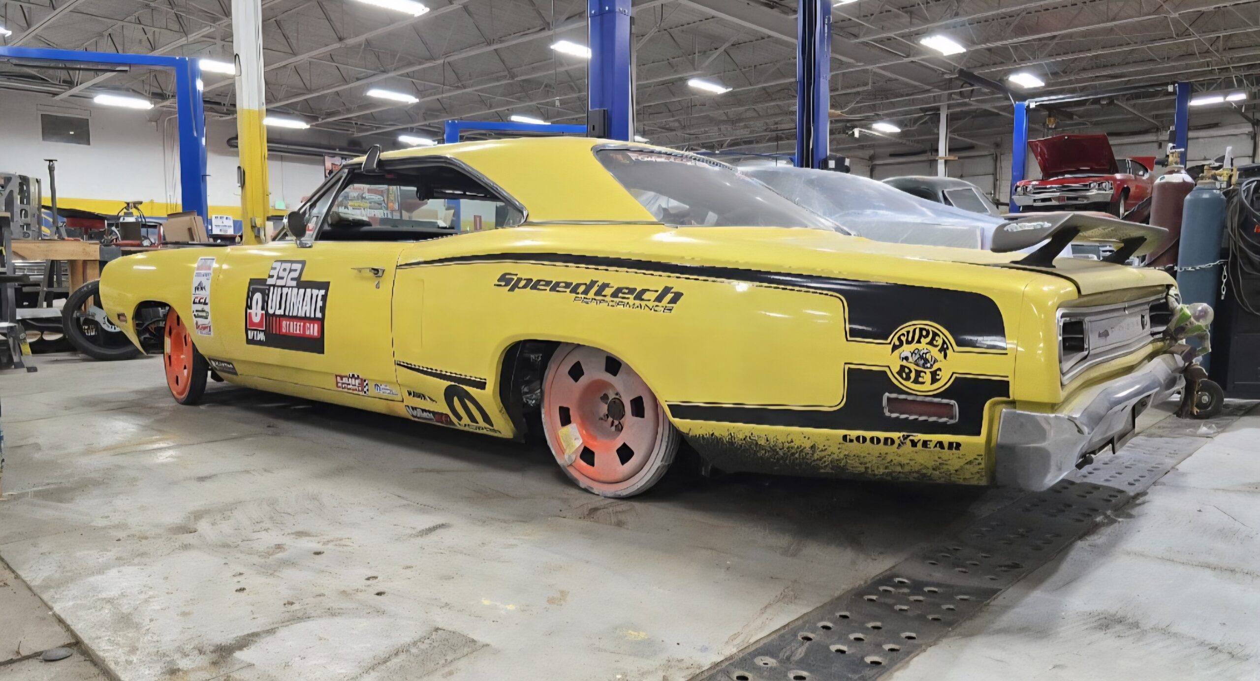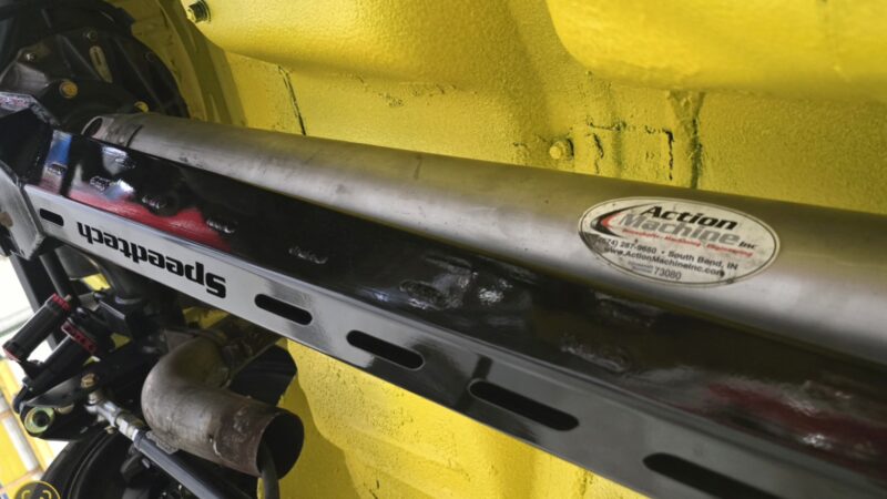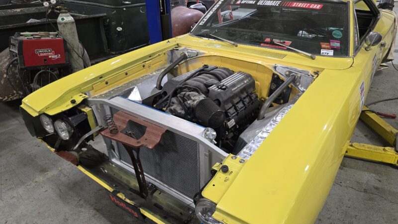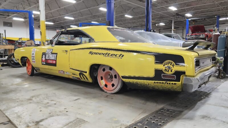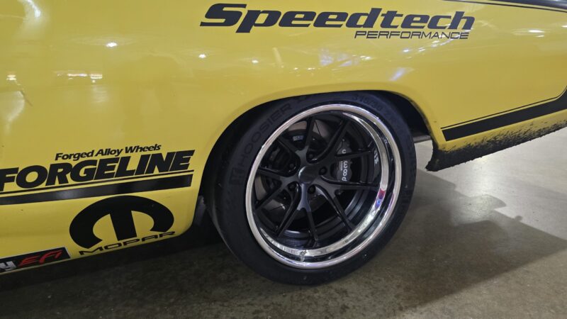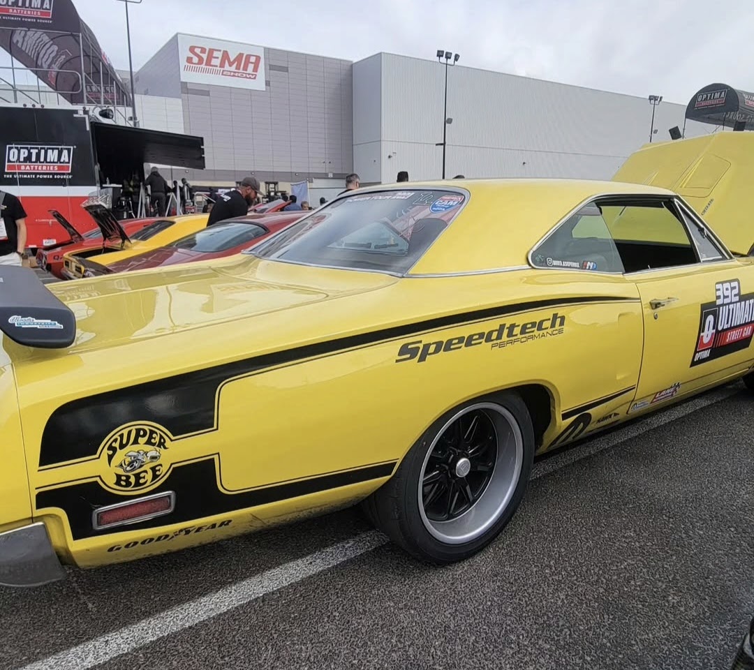 In 2025, the Super Bee entered its most extensive rebuild yet. Due to rust, the chassis was upgraded with a Speedtech Performance Extreme front subframe and rear torque arm, paired with QA1 MOD Series shocks coinciding with the public announcement of the Speedtech and QA1 partnership. Braking was upgraded to C7 Corvette based Wilwood six-piston brakes, and the rear end was replaced with a Dutchman 9-inch axle with Eaton Truetrac, connected by a 4-inch aluminum driveshaft from Action Machine. The car now rides on custom Forgeline wheels with 315/30/18 Hoosier Track Attack tires. custom Pypes exhaust, and features a one-off billet aluminum core support and radiator from Cold Case. Inside, modern seating and a Holley digital gauge package complete the interior.