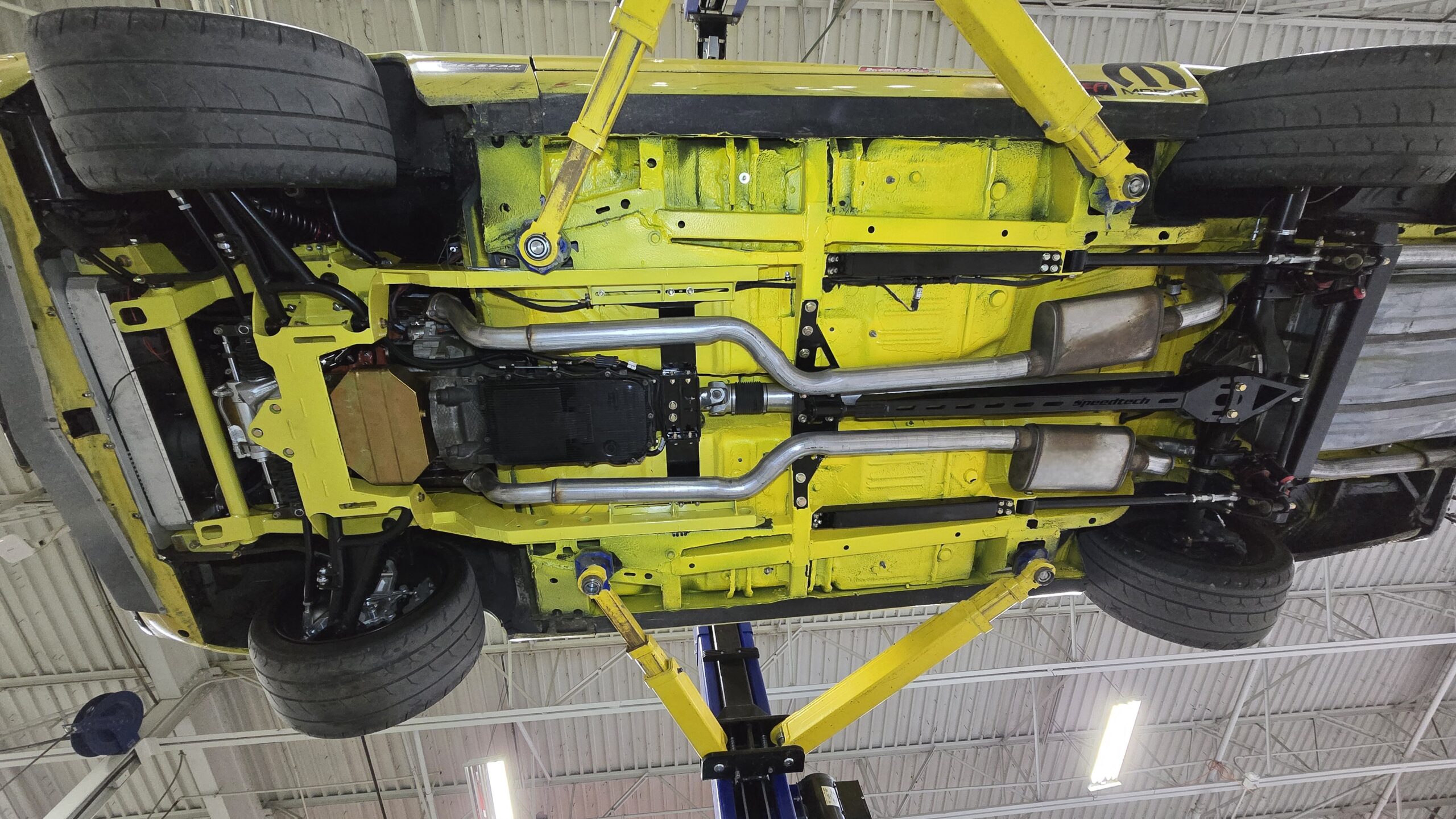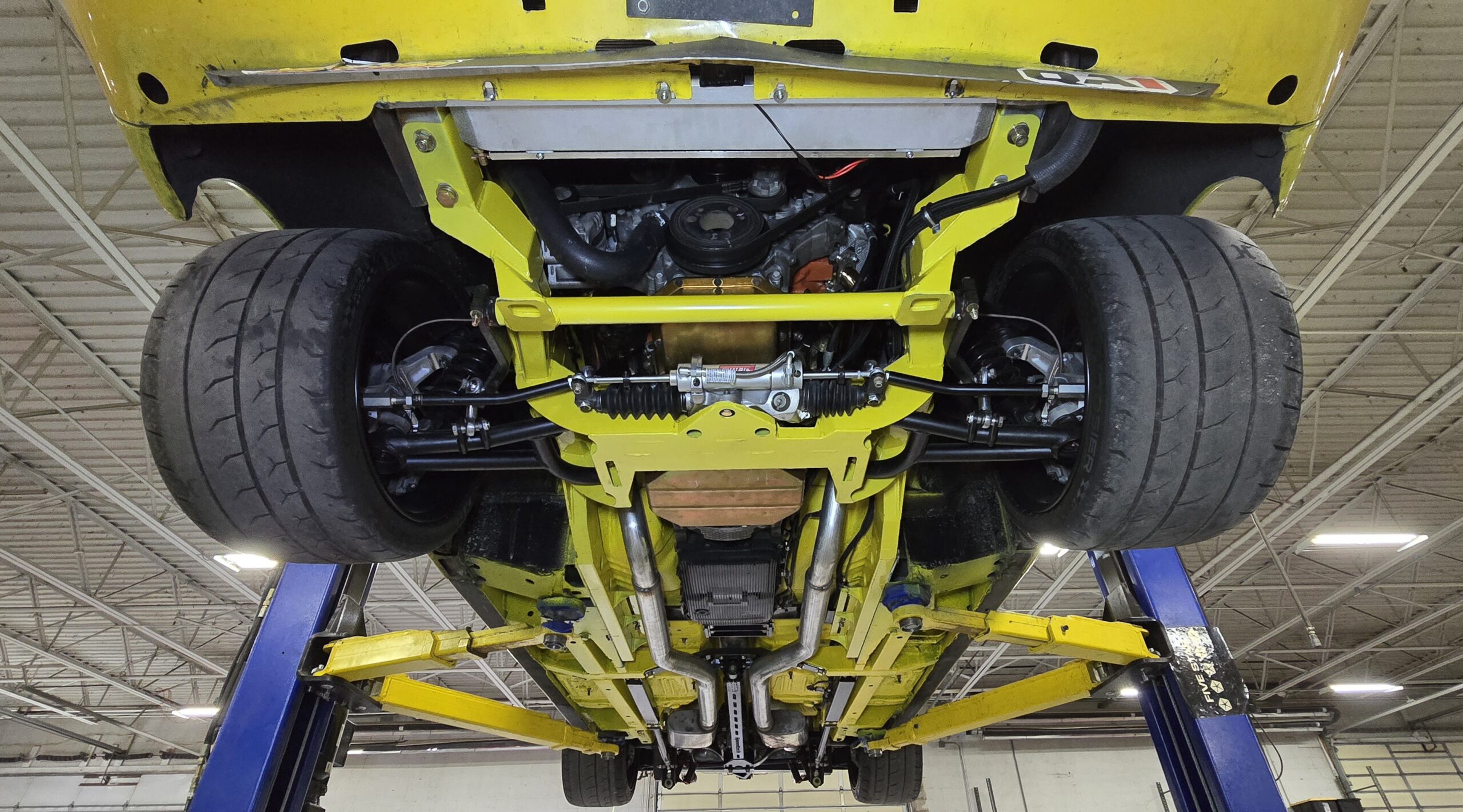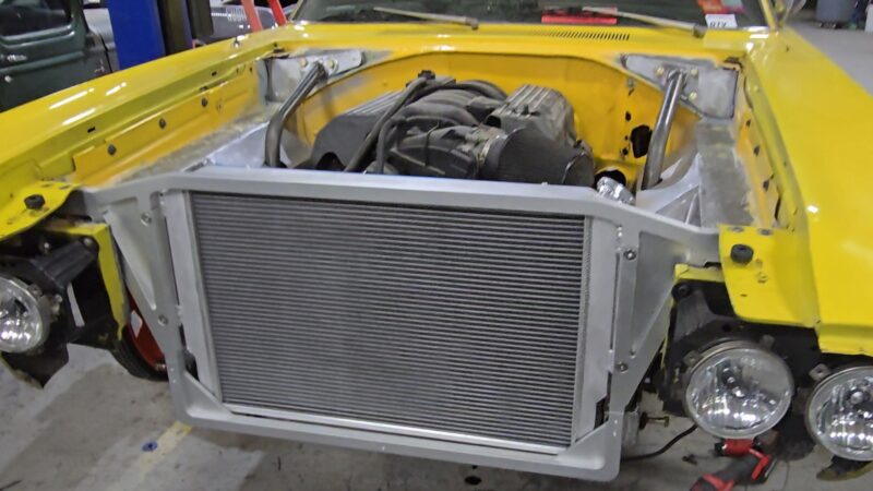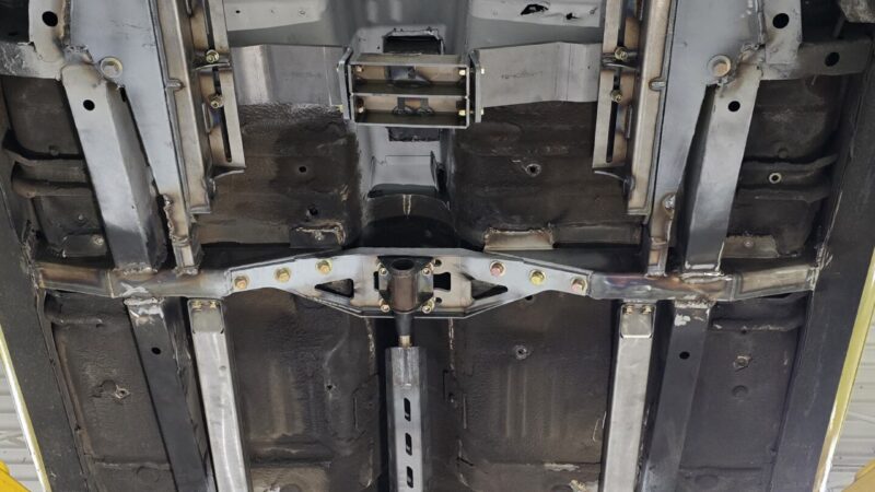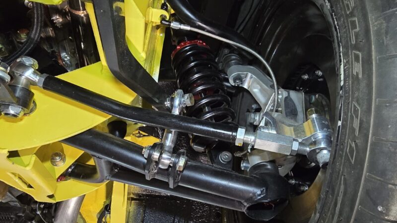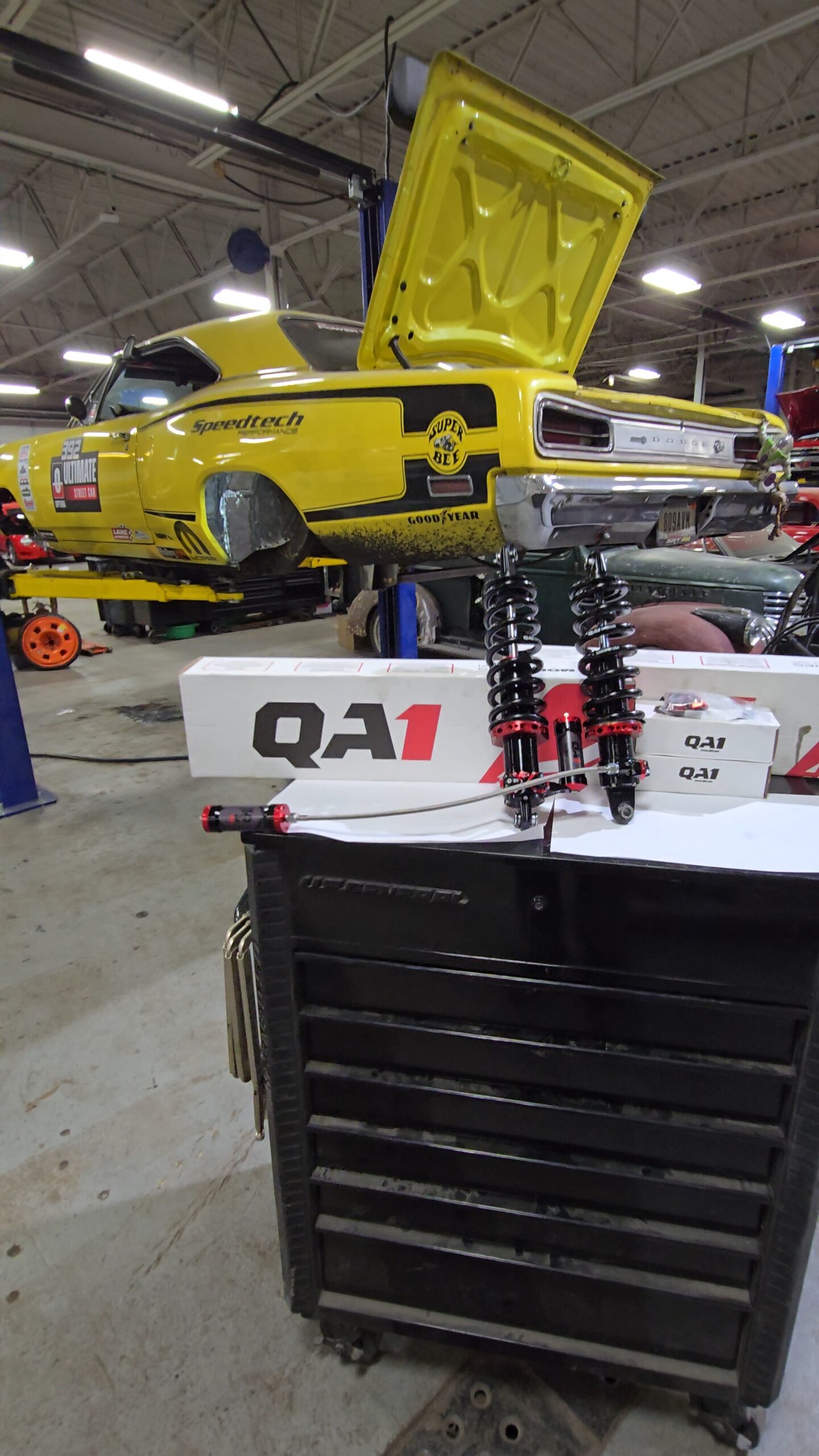 In 2025, the Super Bee entered its most extensive rebuild yet. Due to rust, the chassis was upgraded with a Speedtech Performance Extreme front subframe and rear torque arm, paired with QA1 MOD Series shocks coinciding with the public announcement of the Speedtech and QA1 partnership. Braking was upgraded to C7 Corvette based Wilwood six-piston brakes, and the rear end was replaced with a Dutchman 9-inch axle with Eaton Truetrac, connected by a 4-inch aluminum driveshaft from Action Machine. The car now rides on custom Forgeline wheels with 315/30/18 Hoosier Track Attack tires. custom Pypes exhaust, and features a one-off billet aluminum core support and radiator from Cold Case. Inside, modern seating and a Holley digital gauge package complete the interior.