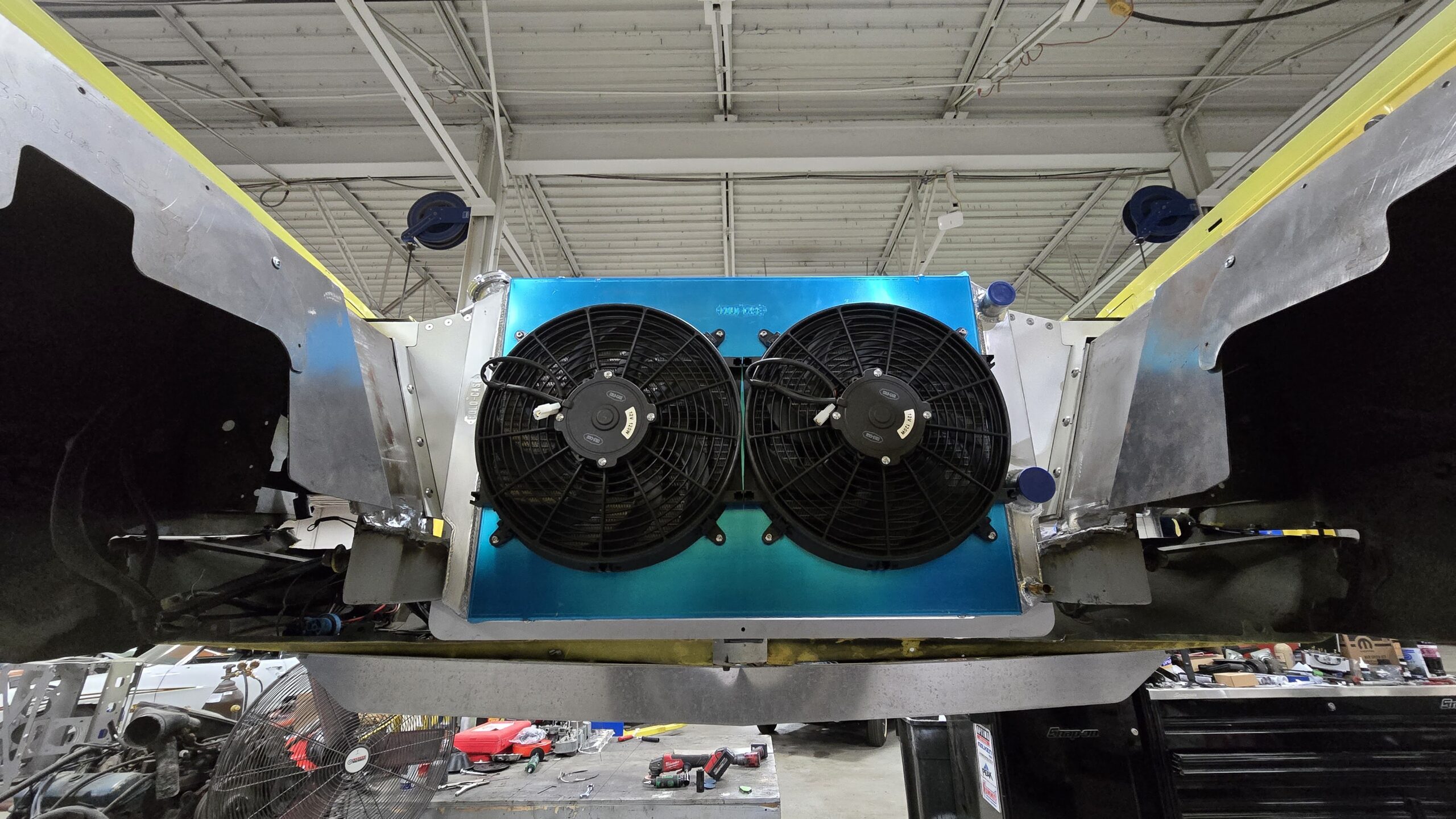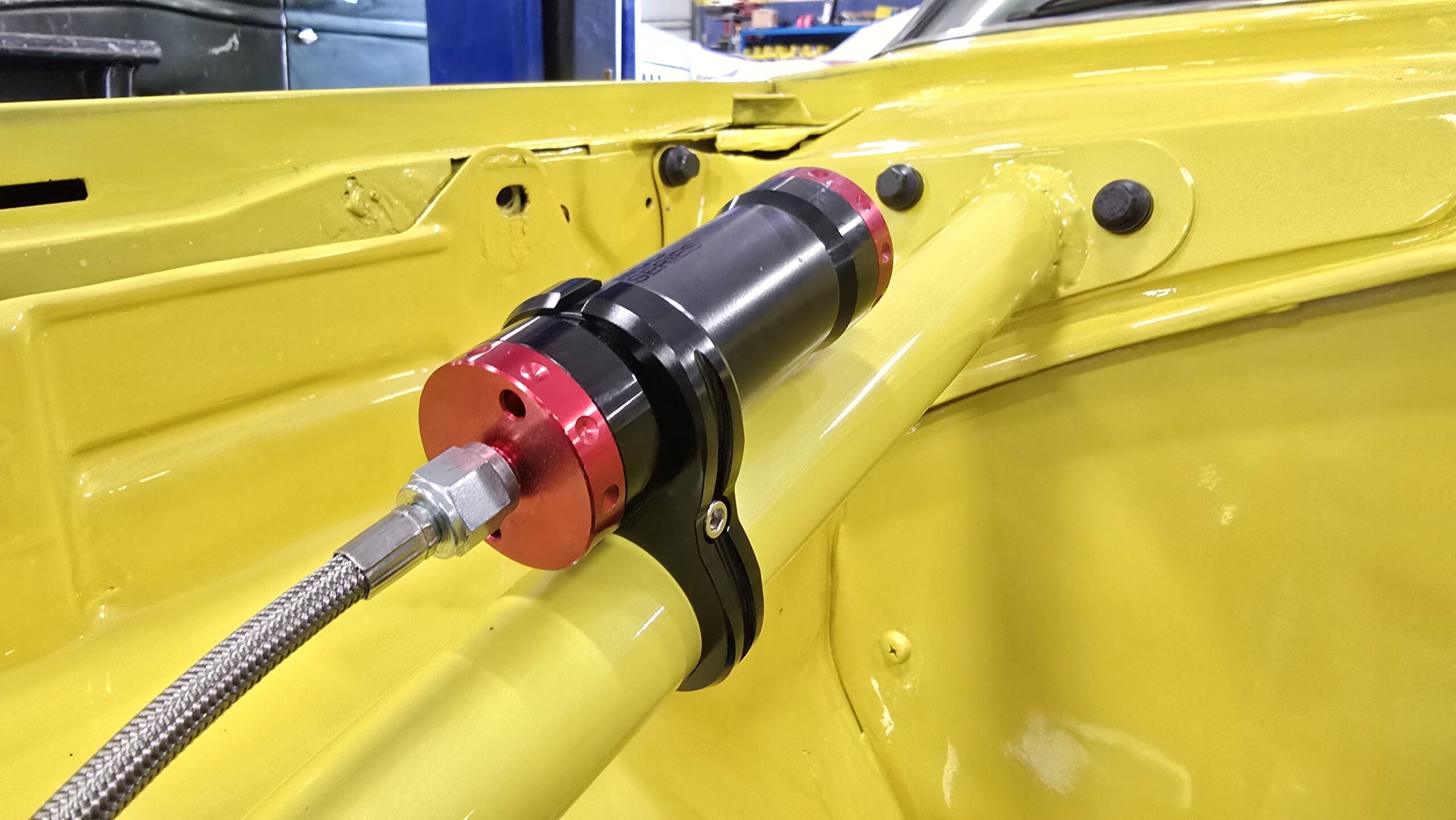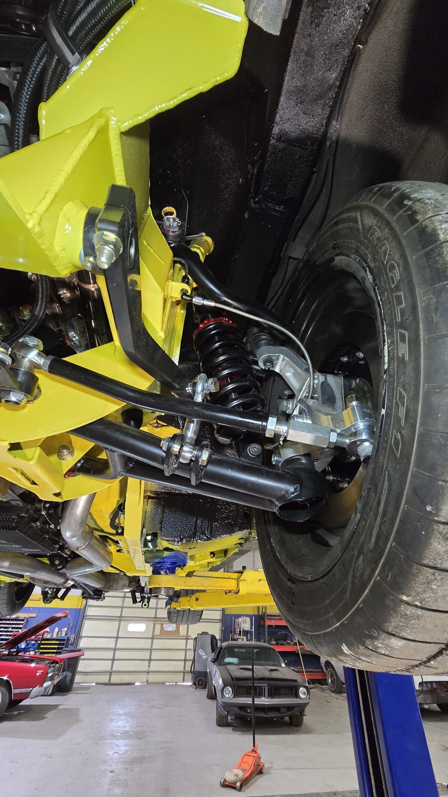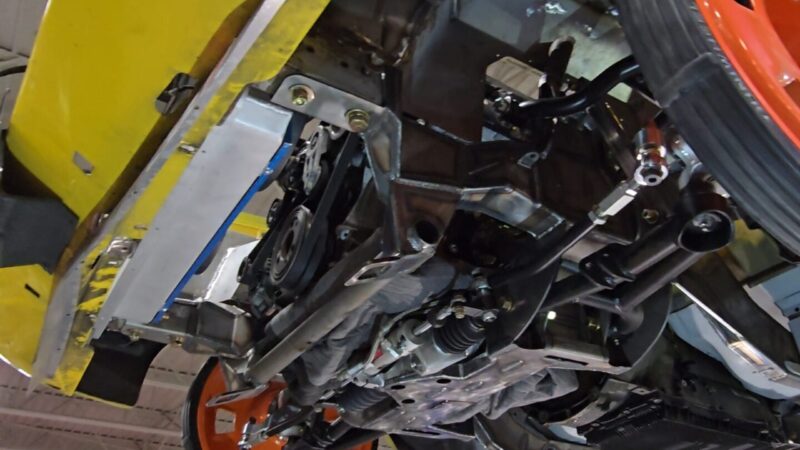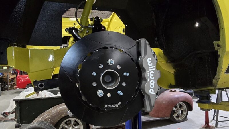 In 2025, the Super Bee entered its most extensive rebuild yet. Due to rust, the chassis was upgraded with a Speedtech Performance Extreme front subframe and rear torque arm, paired with QA1 MOD Series shocks coinciding with the public announcement of the Speedtech and QA1 partnership. Braking was upgraded to C7 Corvette based Wilwood six-piston brakes, and the rear end was replaced with a Dutchman 9-inch axle with Eaton Truetrac, connected by a 4-inch aluminum driveshaft from Action Machine. The car now rides on custom Forgeline wheels with 315/30/18 Hoosier Track Attack tires. custom Pypes exhaust, and features a one-off billet aluminum core support and radiator from Cold Case. Inside, modern seating and a Holley digital gauge package complete the interior.