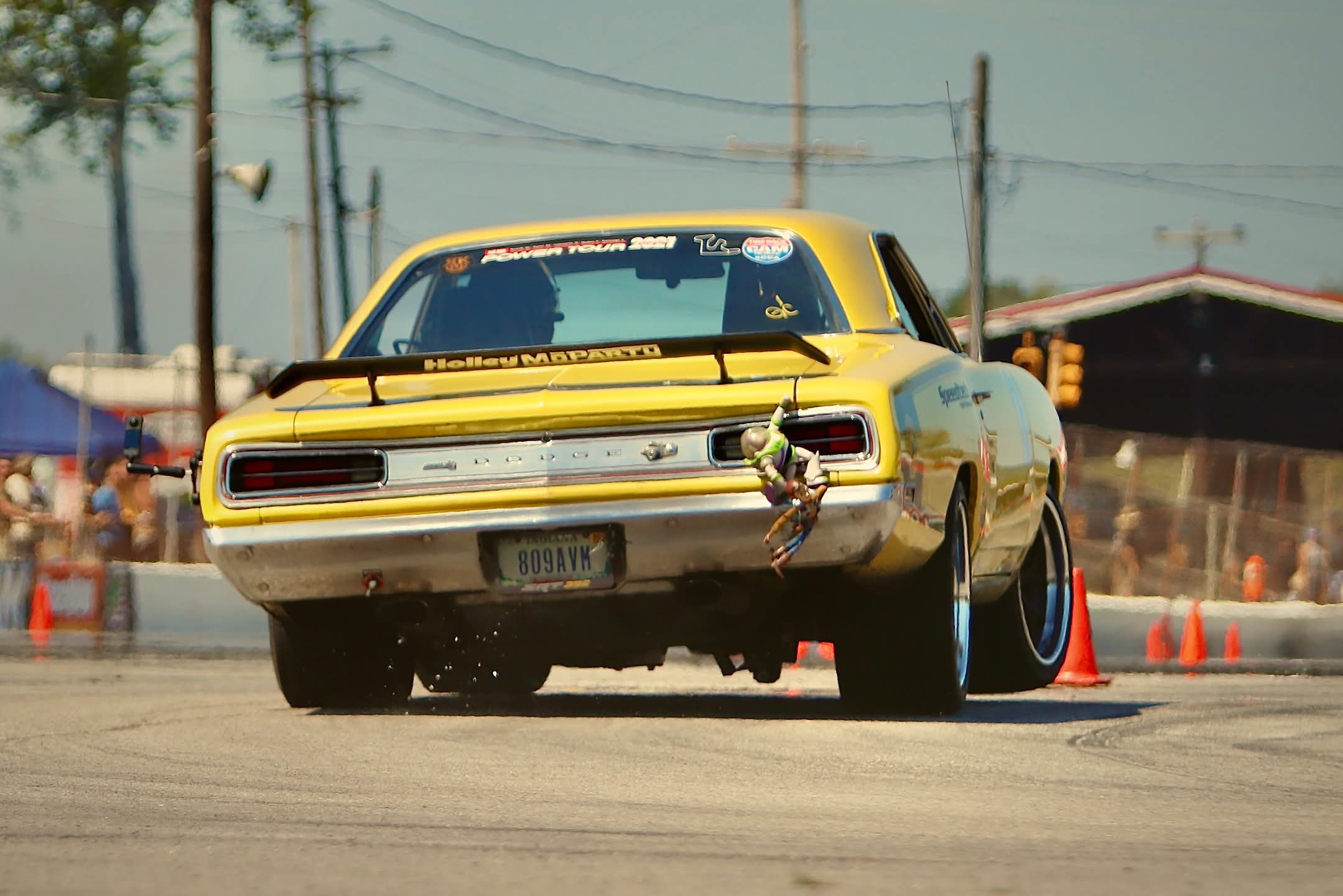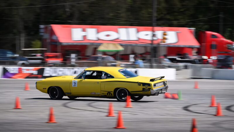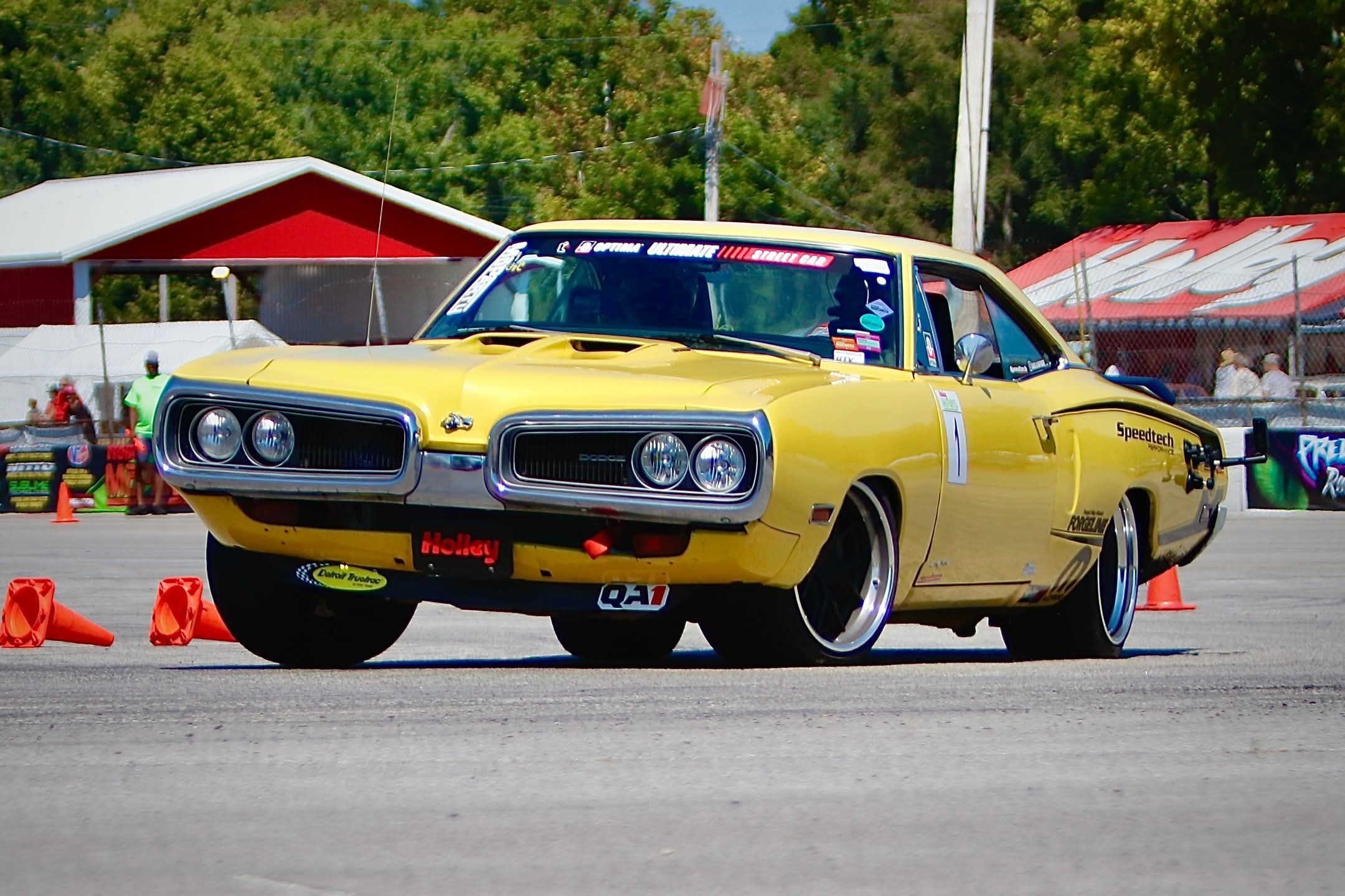 The car first evolved into a street cruiser before briefly stepping into drag racing duty at Osceola Dragway. During this phase, it received its Pearl Yellow paint, and rolled on Cragar wheels with Hoosier drag slicks, and was powered by a tired 440 backed by a 727 transmission, upgraded with Holley EFI.