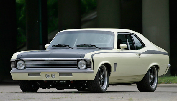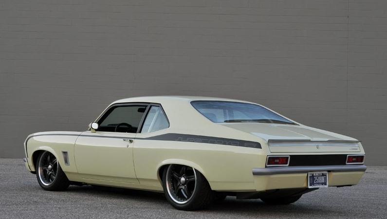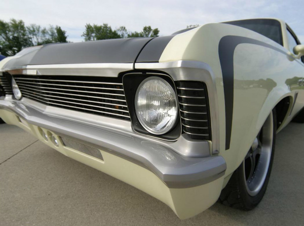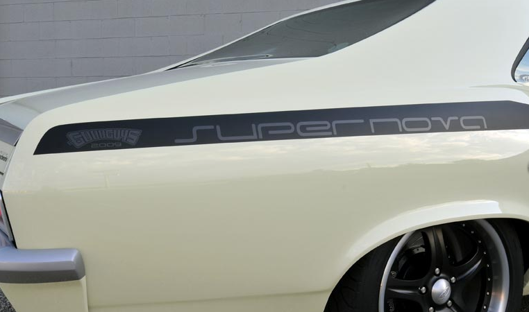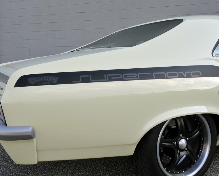 Body & Paint: Paint Scheme designed by Precision Coachworks. Paint: DuPont Hot Hues “Butter Nut Yellow” with flat black graphics. Shaved and narrowed bumpers, flushed glass.