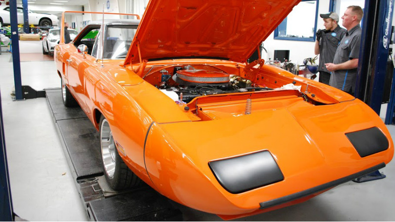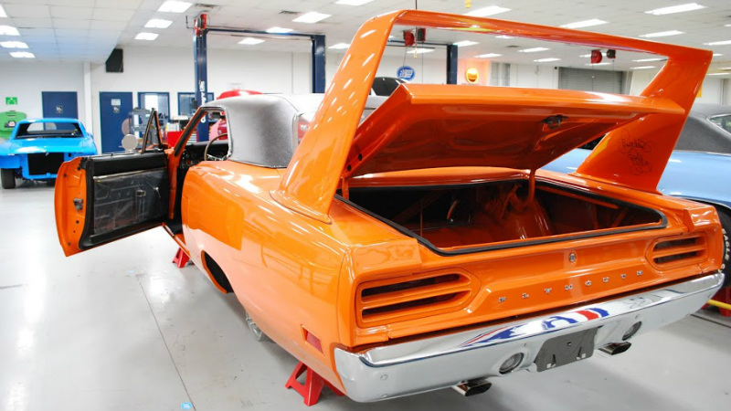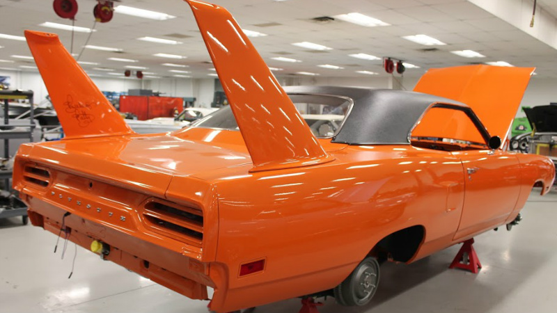 This is a full rotisserie restoration at Petty’s Garage with a Superbird conversion from a Plymouth Roadrunner.