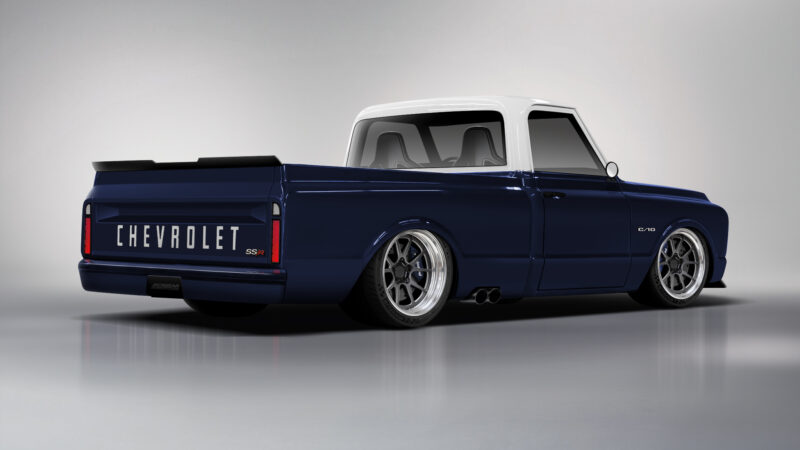 Blending the raw soul of 1970s NASCAR with the geometry and finesse of a modern GT car, the C10 SS/R reimagines what a classic pickup can be. Its stance is unmistakable; low, raked, and unapologetically athletic. Every surface and contour was sketched with intent. Every line speaks a design language that’s both grounded in heritage and hungry for the future.
