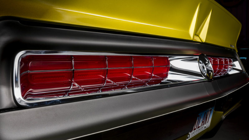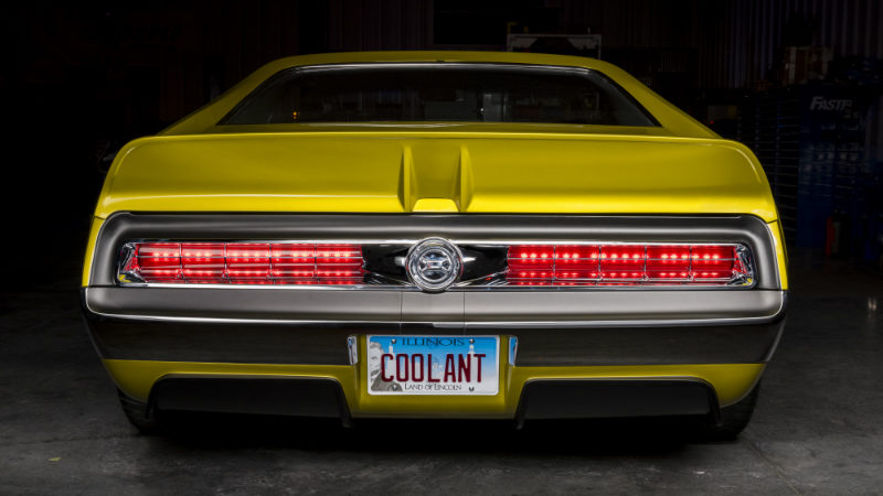 “Defiant!” is powered by a Wegner Motorsports 6.2-liter Hemi Mopar Hellcat engine fitted with a Whipple 4.5-liter Supercharger that produces a mind-boggling 1,036 horsepower. A Bowler automatic transmission backs the high-powered engine and a sturdy QA1 Carbon Fiber driveshaft transfers power to the wheels. Royal Purple engine and transmission oil assures the high-powered motor will be kept running smoothly, while a new Dodge Hellcat radiator and fan assembly ensures perfect running temperatures when filled with Prestone Antifreeze. Other engine highlights include a Holley Dominator fuel management system and wiring harness from Painless Wiring. The Javelin’s growl is audible via custom stainless steel Flowmaster headers and exhaust.