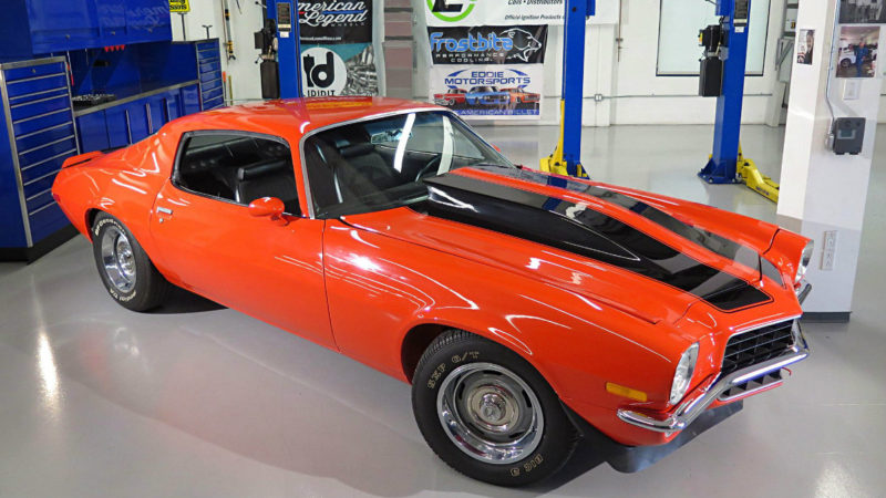 1. Behold our starting point: a Hugger Orange 1972 Camaro. The paint was decent but we bought it as an unfinished project car so we spent some time getting the Camaro into a semi-restored and driveable condition before the actual build. The ill-fitting 4-inch cowl hood was at the top of our list in terms of things that had to go.