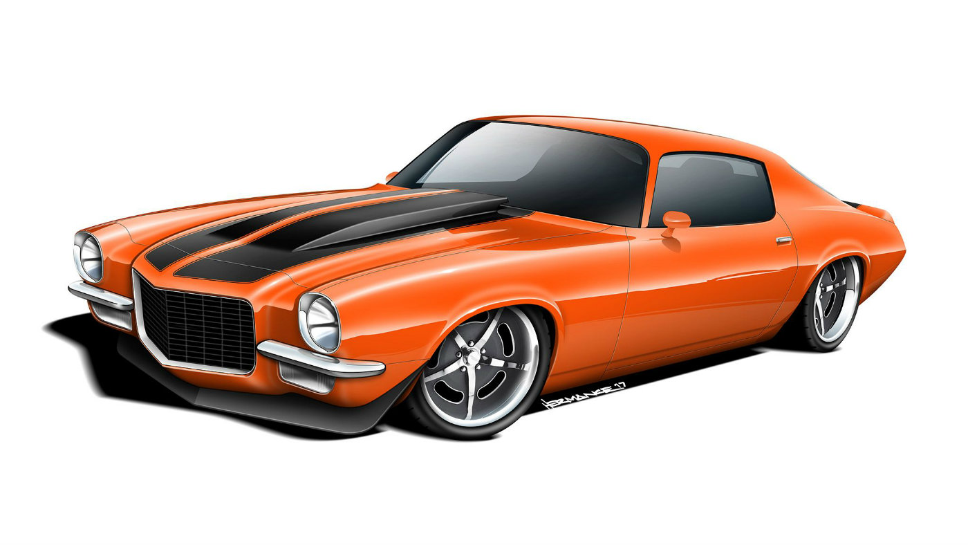 The car this time around is a 1972 Camaro. It came to us without an engine or trans and was somebody’s stalled-out project. Our guess was the original builder was going for a custom deal given the smoothed firewall, color-matched inner fenders, and body-colored underside. In the plus category, the Camaro was super clean with a freshly powdercoated subframe and not a spot of grease anywhere. In the minus category, all the missing parts and unknown bodywork, which included a very warped and overly tall 4-inch cowl hood.