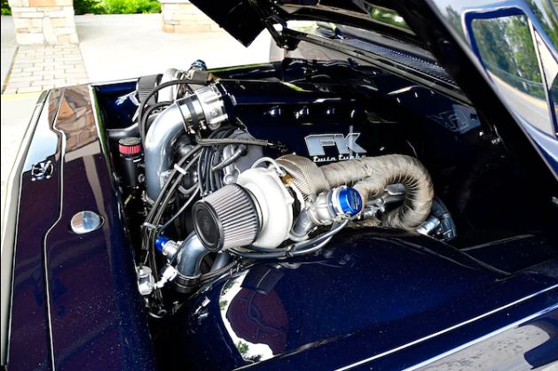 Since the planned engine would have enough torque to give most chassis a barber-pole twist, the original frame was replaced by a Roadster Shop Fast Track chassis complete with a four-link in the rear, tubular A-arms up front, Corvette spindles, Penske shocks, and a 4-inch drop built in. Applying modern clamping forces are Baer six-piston disc brakes all around with 14-inch rotors up front and 13-inch versions in the rear. The chassis became a roller thanks to 19×9 Forgeline rims up front and tall ’n’ wide 20×12 versions in the rear. Michelin rubber gets the power to the ground.