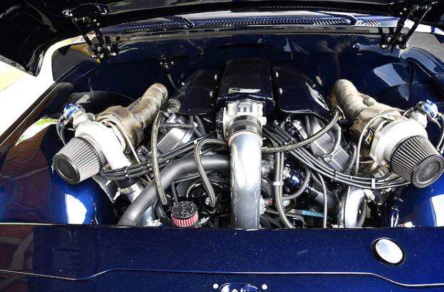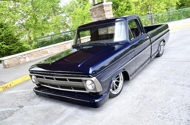 Everyone’s familiar with the F-100 logo but the mysterious F1K piques your curiosity about what might be under the hood. Lift it to see a polished sledgehammer of an engine with twin turbos large and in charge. From a visual standpoint, it’s hard not to be impressed with the sheer audacity of the build. Creating a unified package, however, is more than bragging about dyno numbers. Since John feels each build is supposed to somehow top those of the past, this project starts with a twist, since it originated not with the vehicle but the motor. The last three vehicles that he built featured a small-block supercharged motor, an injected John Kaase big-block, and a three-valve supercharged Mustang GT. Now it was time for something new and the Ford Coyote was the dessert of choice. After reading that Hellion Power Systems produced 969 hp at the rear wheels of a stock 5.0 Mustang using their twin-turbo setup, he contacted them about his goal of 1,000 hp. They assured him they could deliver that and more, so the next priority was locating an engine compartment big enough to contain the monster mill. John felt a big old F-100 would surely accommodate the new motor, but as it turned out, it was still a tight squeeze.
