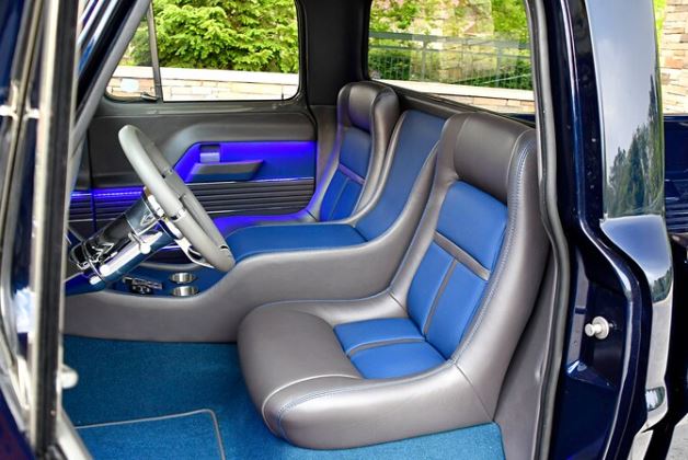 The build took almost two years to complete and is still waiting for a few last-minute tweaks like a final cutting and buffing on the paint, as well as sneaking up on the tune to establish that reliable 1,000 rwhp. The F1K is one of those trucks where you really want to get behind the wheel and pursue hooligan adventures, even though a date with Judge Judy might be the outcome. The truck was painted in Axalta BMW Tanzanite Blue, a shade that conveys the slight air of aggression necessary that fits perfectly with the hair-on-fire driving experience! This truck is angry with mind-bending levels of acceleration. While the uninitiated won’t be ready for the instant response, everyone needs a 1,000hp party piece in their lives!